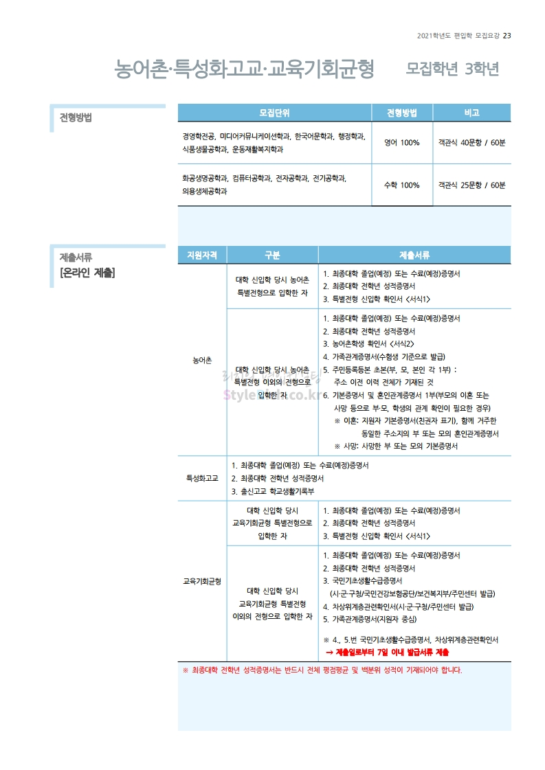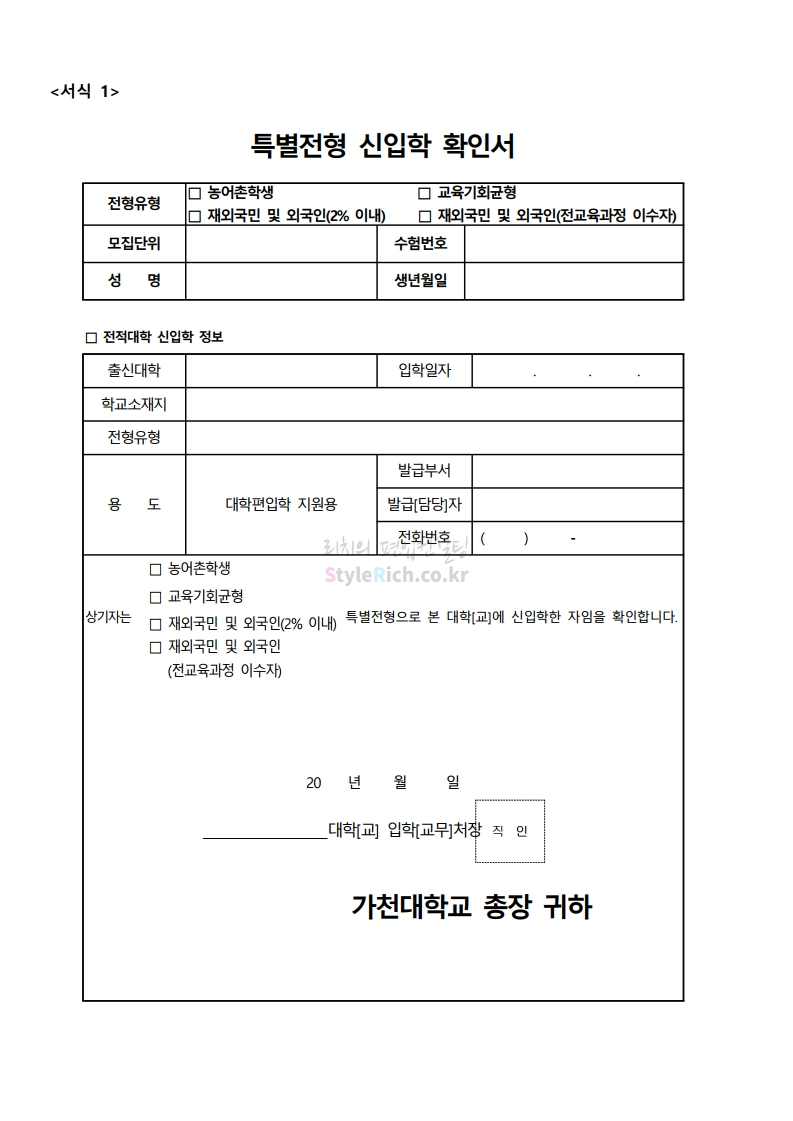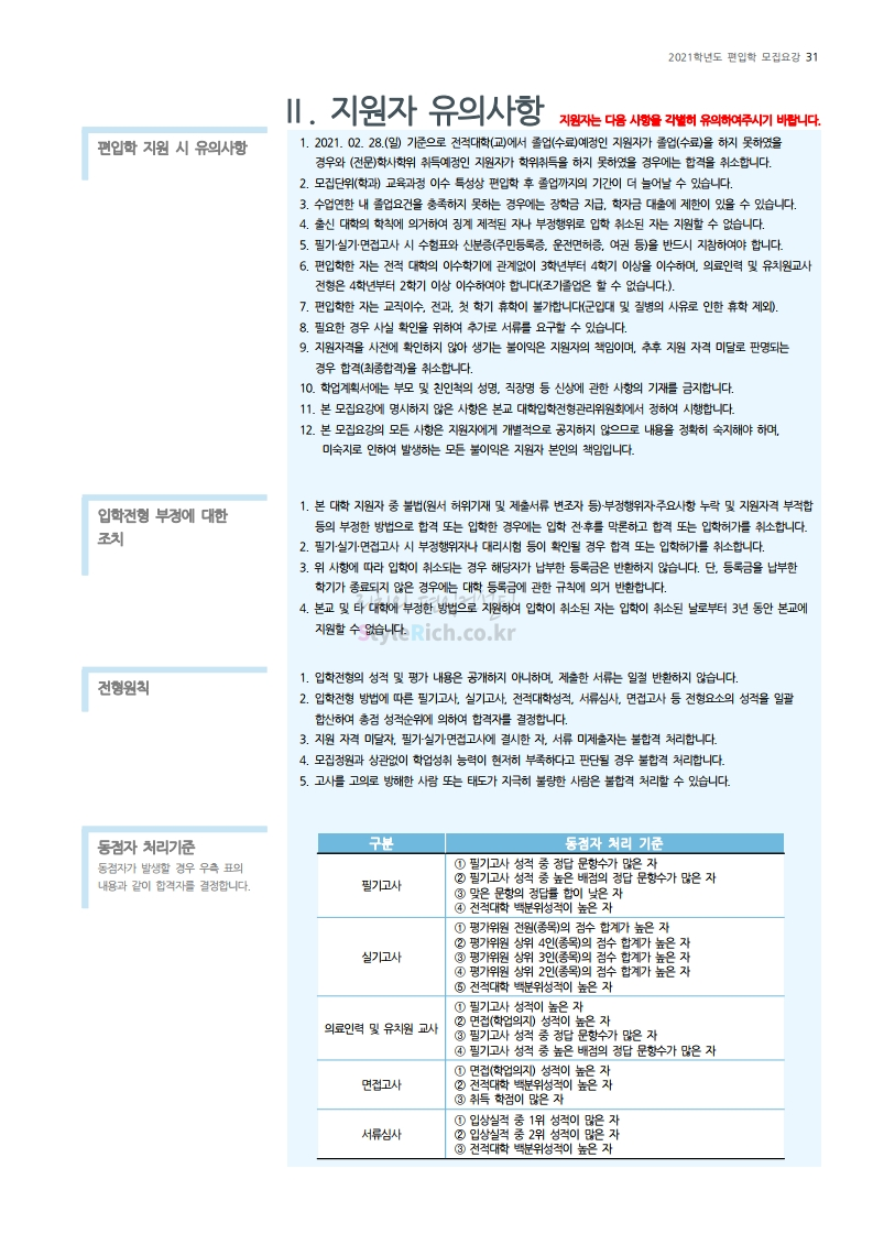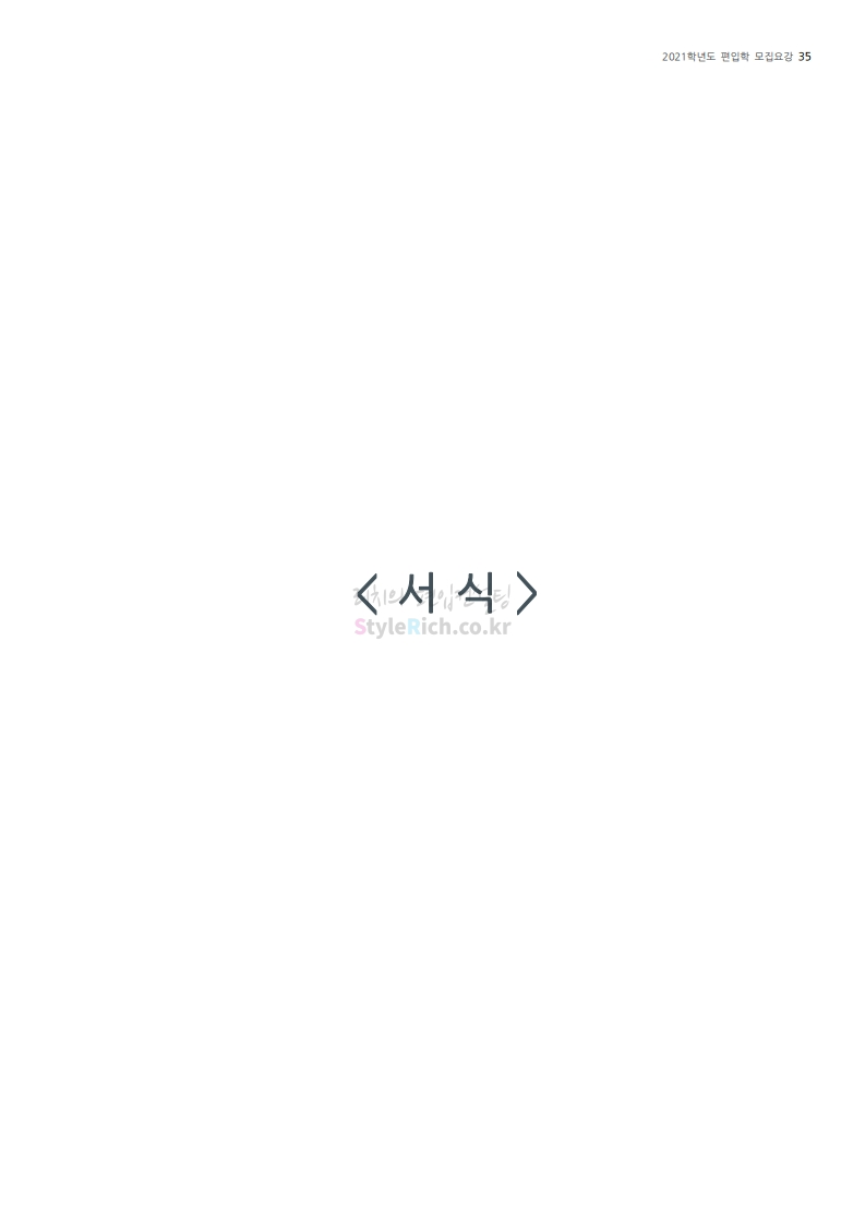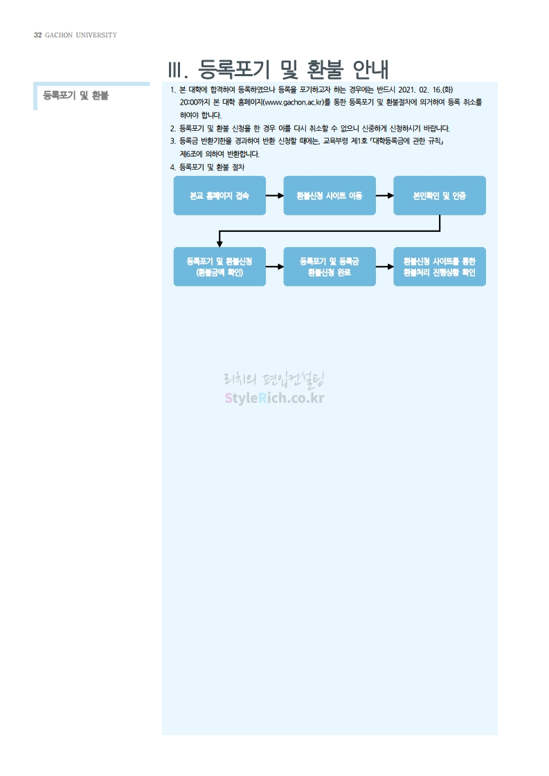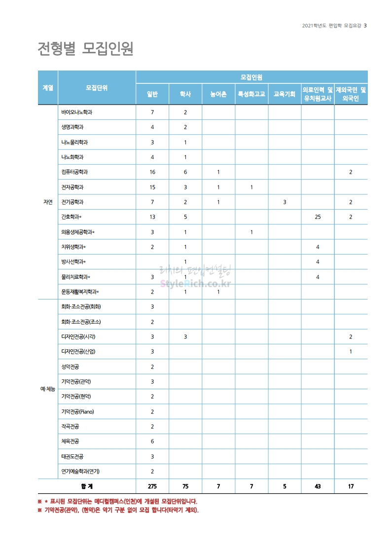 가천대 편입 2021학년도 모집요강 간편하게 보자! 2020.11.27 01:14 편입 모집요강/2021학년도 모집요강 2021학년도 가천대 편입 모집요강(2020.11.26 기준)을 간편하게 확인하세요. PC나 모바일에서 이미지를 클릭(터치) 후 이미지의 좌우측을 클릭(터치)하면 모집요강의 순서를 앞뒤로 넘길 수 있습니다. 좌측 클릭(터치)는 이전 페이지, 우측 클릭(터치)는 다음 페이지입니다. *최종 모집요강 발표 이후에도 내용의 일부가 변경될 수 있으니 지원 전 반드시 가천대 입학처의 모집요강을 확인 바랍니다. 2021학년도 가천대 편입 모집요강 다운받기 2021학년도+가천대학교+편입학+모집요강.pdf 0.58MB <출처: 가천대> KR탐색 건너뛰기9+ 0:29 / 7:42가천대학교 통학방법을 알아보자! 공유하기 게시글 관리 리치의 편입컨설팅 저작자표시 비영리 변경금지 (새창열림) '편입 모집요강 > 2021학년도 모집요강' 카테고리의 다른 글 한국항공대 편입 2021학년도 모집요강 간편하게 보자! (0) 2020.11.29 국민대 편입 2021학년도 모집요강 간편하게 보자! (0) 2020.11.29 서울대 편입 2021학년도 모집요강 간편하게 보자! (0) 2020.11.26 2021학년도 건국대 편입 전형변경이 갖는 의미는? (0) 2020.10.18 2021학년도 이화여대 편입 전형변경이 갖는 의미는? (0) 2020.10.03 댓글 공유하기 다른 글 댓글 이 글 공유하기 구독하기 구독하기 카카오톡 카카오톡 라인 라인 트위터 트위터 Facebook Facebook 카카오스토리 카카오스토리 밴드 밴드 네이버 블로그 네이버 블로그 Pocket Pocket Evernote Evernote 다른 글 한국항공대 편입 2021학년도 모집요강 간편하게 보자! 한국항공대 편입 2021학년도 모집요강 간편하게 보자! 2020.11.29 국민대 편입 2021학년도 모집요강 간편하게 보자! 국민대 편입 2021학년도 모집요강 간편하게 보자! 2020.11.29 서울대 편입 2021학년도 모집요강 간편하게 보자! 서울대 편입 2021학년도 모집요강 간편하게 보자! 2020.11.26 2021학년도 건국대 편입 전형변경이 갖는 의미는? 2021학년도 건국대 편입 전형변경이 갖는 의미는? 2020.10.18 다른 글 더 둘러보기