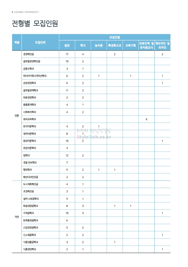 가천대 편입 2021학년도 모집요강 간편하게 보자! 2020.11.27 01:14 편입 모집요강/2021학년도 모집요강 2021학년도 가천대 편입 모집요강(2020.11.26 기준)을 간편하게 확인하세요. PC나 모바일에서 이미지를 클릭(터치) 후 이미지의 좌우측을 클릭(터치)하면 모집요강의 순서를 앞뒤로 넘길 수 있습니다. 좌측 클릭(터치)는 이전 페이지, 우측 클릭(터치)는 다음 페이지입니다. *최종 모집요강 발표 이후에도 내용의 일부가 변경될 수 있으니 지원 전 반드시 가천대 입학처의 모집요강을 확인 바랍니다. 2021학년도 가천대 편입 모집요강 다운받기 2021학년도+가천대학교+편입학+모집요강.pdf 0.58MB <출처: 가천대> KR탐색 건너뛰기9+ 0:29 / 7:42가천대학교 통학방법을 알아보자! 공유하기 게시글 관리 리치의 편입컨설팅 저작자표시 비영리 변경금지 (새창열림) '편입 모집요강 > 2021학년도 모집요강' 카테고리의 다른 글 한국항공대 편입 2021학년도 모집요강 간편하게 보자! (0) 2020.11.29 국민대 편입 2021학년도 모집요강 간편하게 보자! (0) 2020.11.29 서울대 편입 2021학년도 모집요강 간편하게 보자! (0) 2020.11.26 2021학년도 건국대 편입 전형변경이 갖는 의미는? (0) 2020.10.18 2021학년도 이화여대 편입 전형변경이 갖는 의미는? (0) 2020.10.03 댓글 공유하기 다른 글 댓글 이 글 공유하기 구독하기 구독하기 카카오톡 카카오톡 라인 라인 트위터 트위터 Facebook Facebook 카카오스토리 카카오스토리 밴드 밴드 네이버 블로그 네이버 블로그 Pocket Pocket Evernote Evernote 다른 글 한국항공대 편입 2021학년도 모집요강 간편하게 보자! 한국항공대 편입 2021학년도 모집요강 간편하게 보자! 2020.11.29 국민대 편입 2021학년도 모집요강 간편하게 보자! 국민대 편입 2021학년도 모집요강 간편하게 보자! 2020.11.29 서울대 편입 2021학년도 모집요강 간편하게 보자! 서울대 편입 2021학년도 모집요강 간편하게 보자! 2020.11.26 2021학년도 건국대 편입 전형변경이 갖는 의미는? 2021학년도 건국대 편입 전형변경이 갖는 의미는? 2020.10.18 다른 글 더 둘러보기