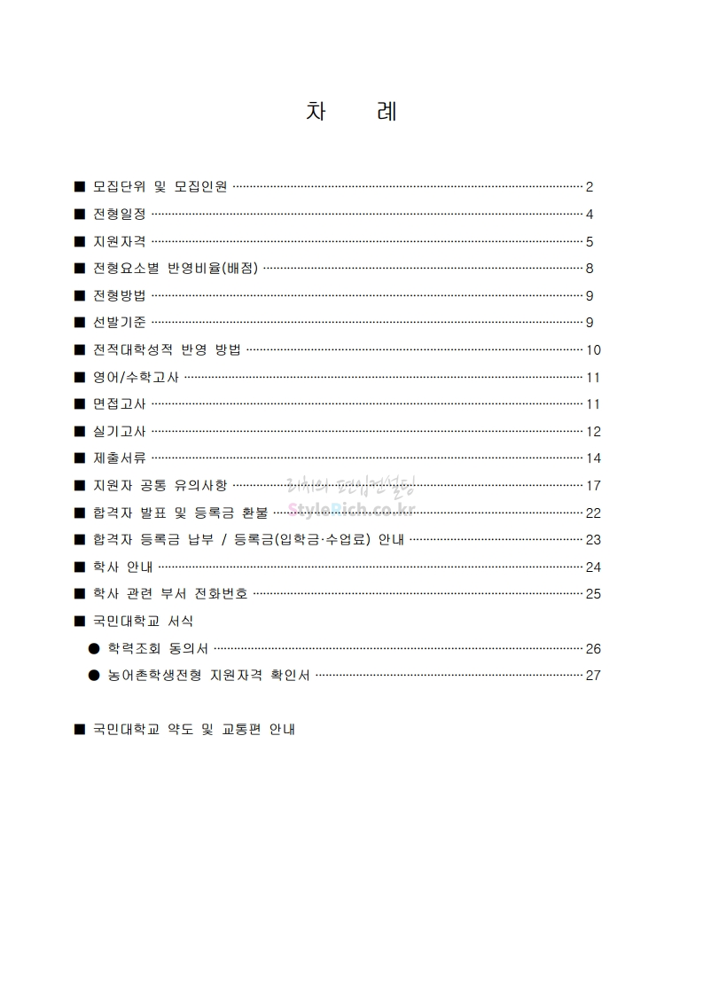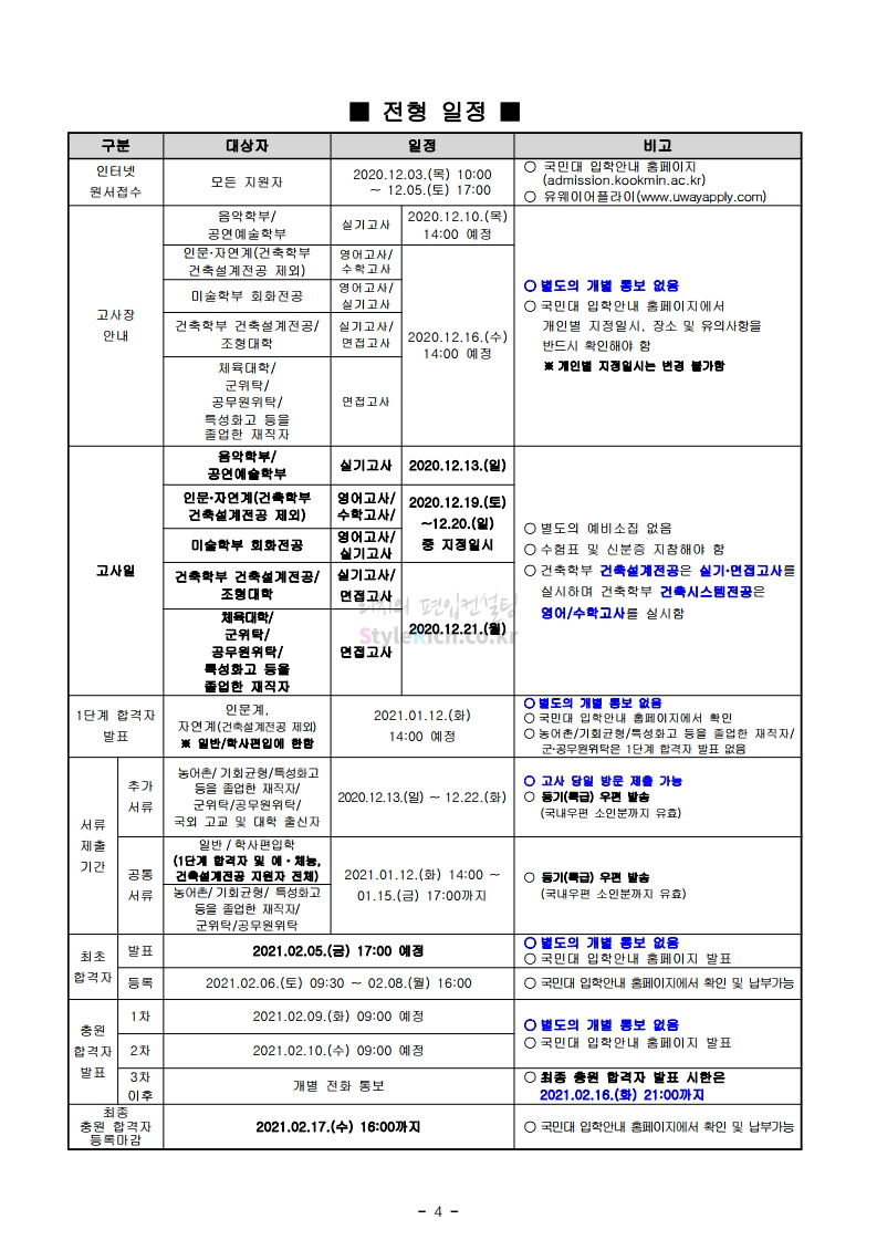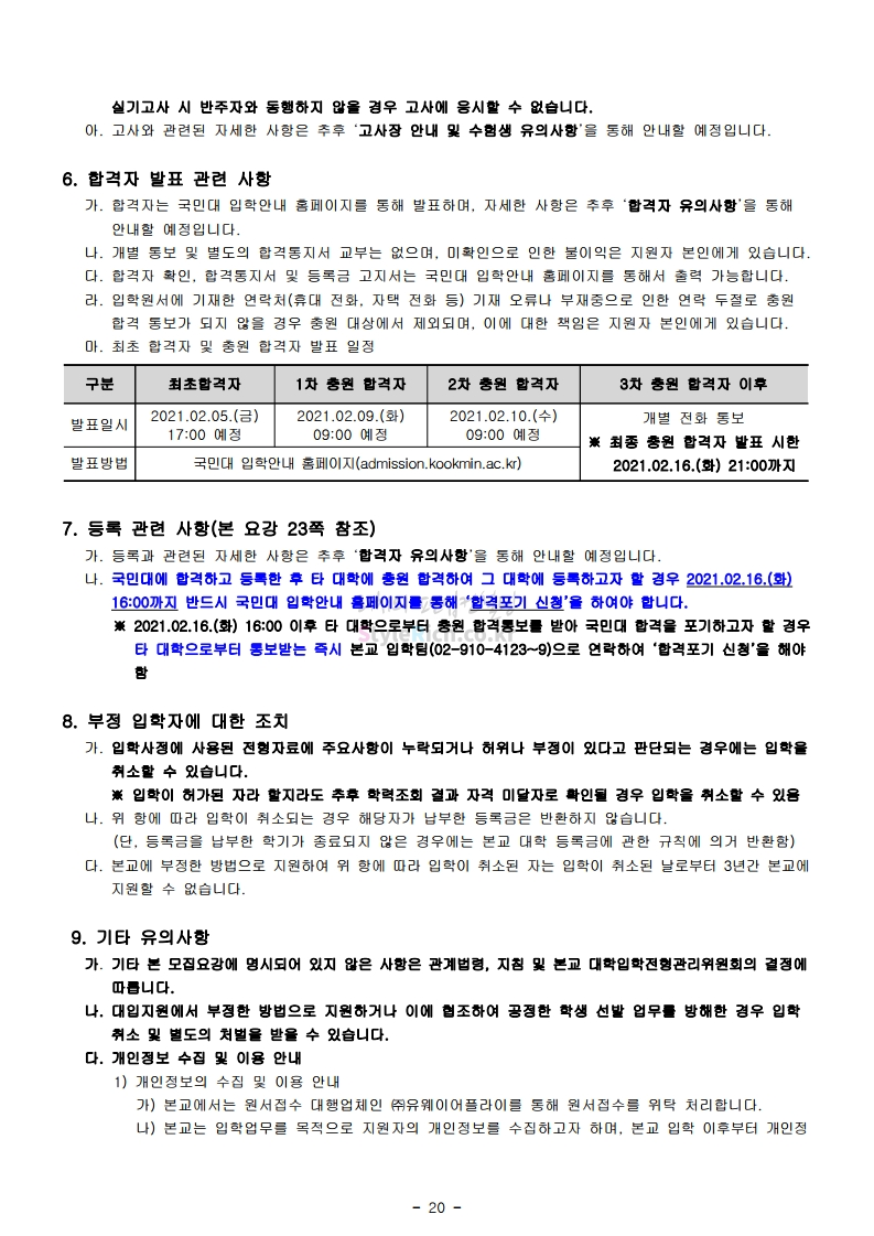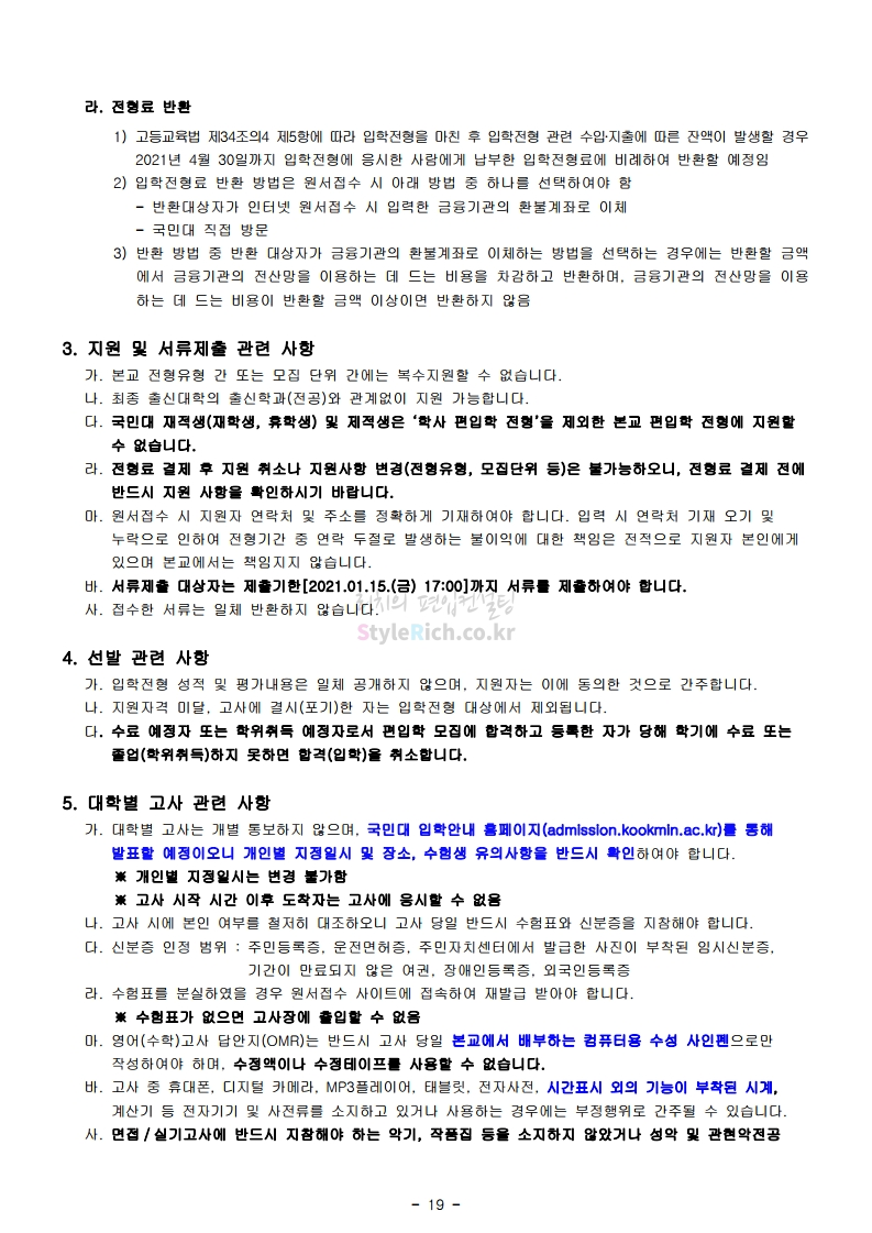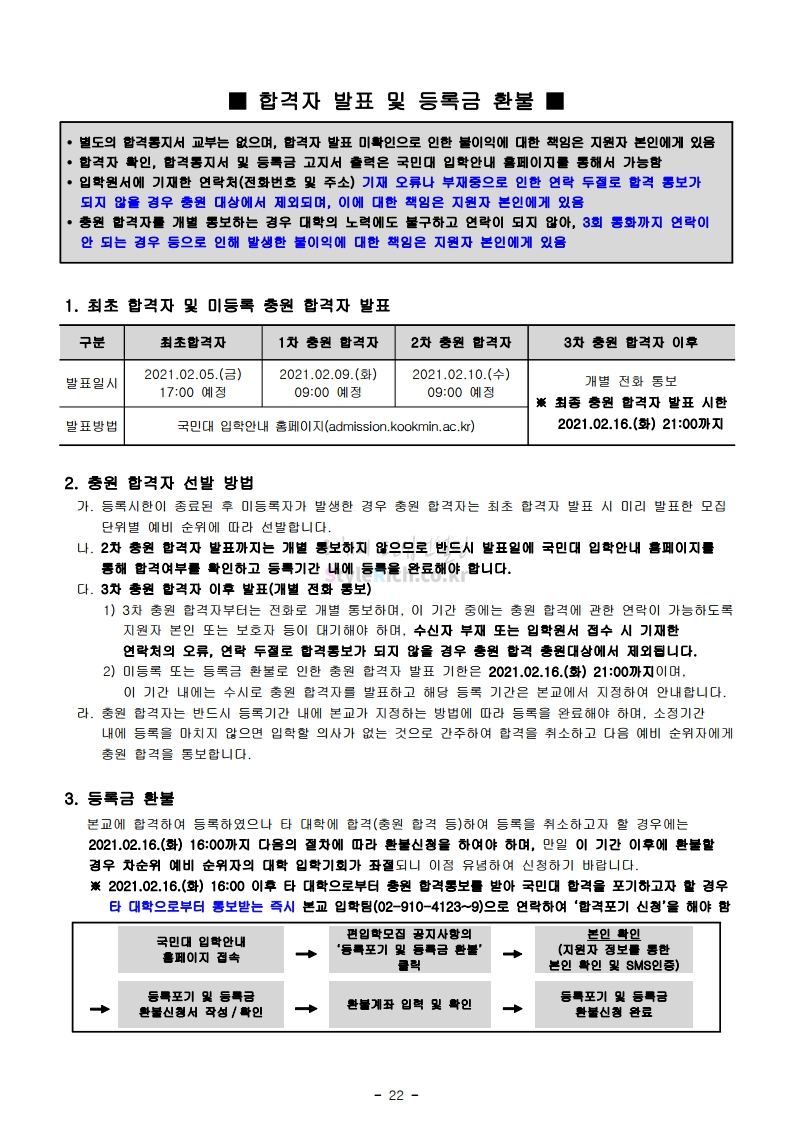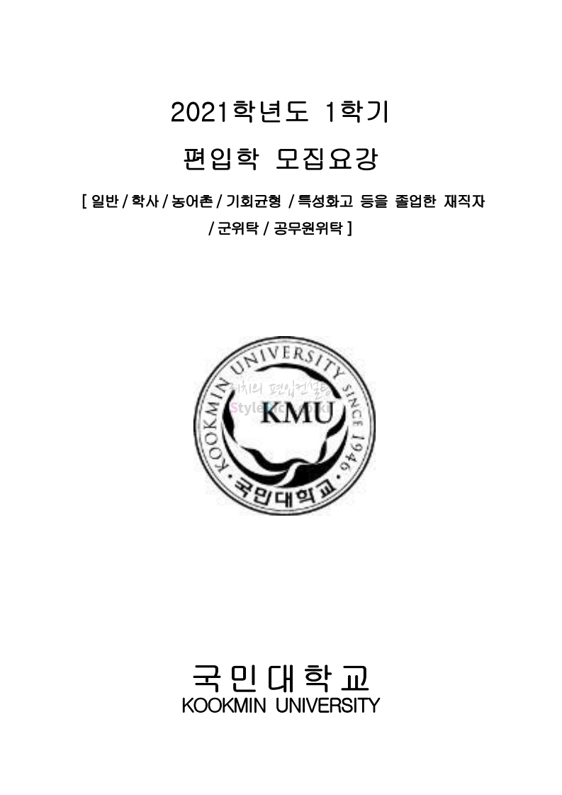 국민대 편입 2021학년도 모집요강 간편하게 보자! 2020.11.29 15:15 편입 모집요강/2021학년도 모집요강 2021학년도 국민대 편입 모집요강(2020.11.27 기준)을 간편하게 확인하세요. PC나 모바일에서 이미지를 클릭(터치) 후 이미지의 좌우측을 클릭(터치)하면 모집요강의 순서를 앞뒤로 넘길 수 있습니다. 좌측 클릭(터치)는 이전 페이지, 우측 클릭(터치)는 다음 페이지 입니다. * 최종 모집요강 발표 이후에도 내용의 일부가 변경될 수 있으니 지원 전 반드시 국민대 입학처의 모집요강을 확인 바랍니다. 2021학년도 국민대 편입 모집요강 다운받기 2021학년도_1학기_편입학_모집요강.pdf 0.43MB <출처: 국민대> 11월2일, 국민대 "차세대 통합정보시스템"이 찾아 온다 공유하기 게시글 관리 리치의 편입컨설팅 저작자표시 비영리 변경금지 (새창열림) '편입 모집요강 > 2021학년도 모집요강' 카테고리의 다른 글 단국대(천안) 편입 2021학년도 모집요강 간편하게 보자! (0) 2020.12.02 한국항공대 편입 2021학년도 모집요강 간편하게 보자! (0) 2020.11.29 가천대 편입 2021학년도 모집요강 간편하게 보자! (0) 2020.11.27 서울대 편입 2021학년도 모집요강 간편하게 보자! (0) 2020.11.26 2021학년도 건국대 편입 전형변경이 갖는 의미는? (0) 2020.10.18 댓글 공유하기 다른 글 댓글 이 글 공유하기 구독하기 구독하기 카카오톡 카카오톡 라인 라인 트위터 트위터 Facebook Facebook 카카오스토리 카카오스토리 밴드 밴드 네이버 블로그 네이버 블로그 Pocket Pocket Evernote Evernote 다른 글 단국대(천안) 편입 2021학년도 모집요강 간편하게 보자! 단국대(천안) 편입 2021학년도 모집요강 간편하게 보자! 2020.12.02 한국항공대 편입 2021학년도 모집요강 간편하게 보자! 한국항공대 편입 2021학년도 모집요강 간편하게 보자! 2020.11.29 가천대 편입 2021학년도 모집요강 간편하게 보자! 가천대 편입 2021학년도 모집요강 간편하게 보자! 2020.11.27 서울대 편입 2021학년도 모집요강 간편하게 보자! 서울대 편입 2021학년도 모집요강 간편하게 보자! 2020.11.26 다른 글 더 둘러보기