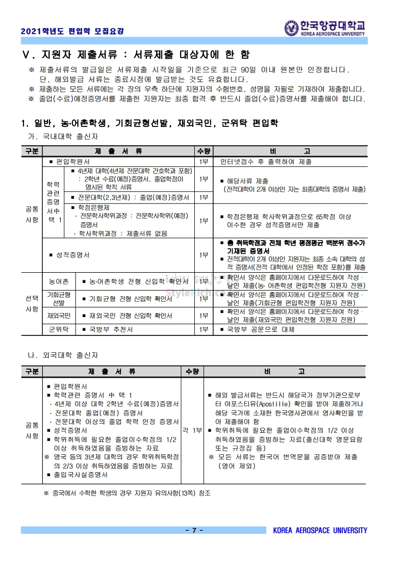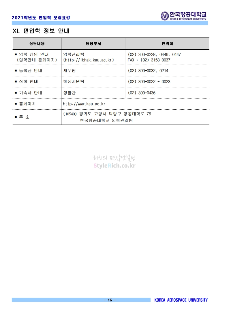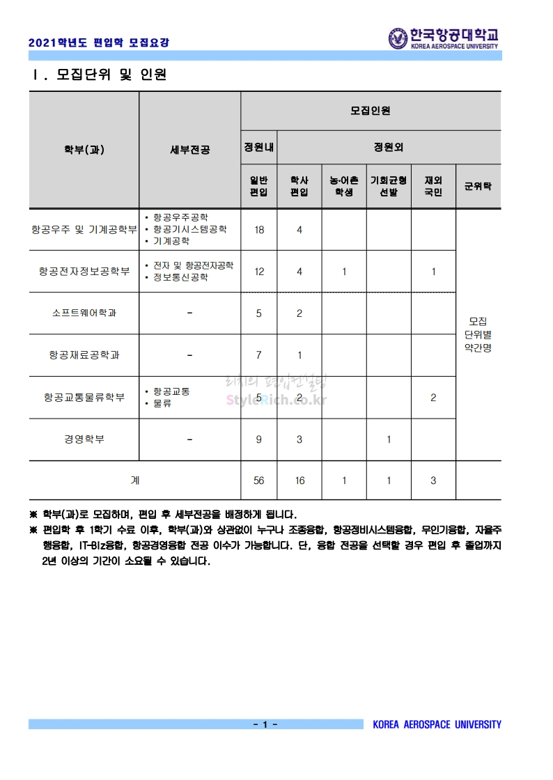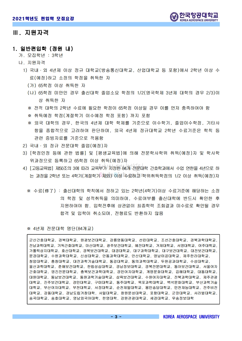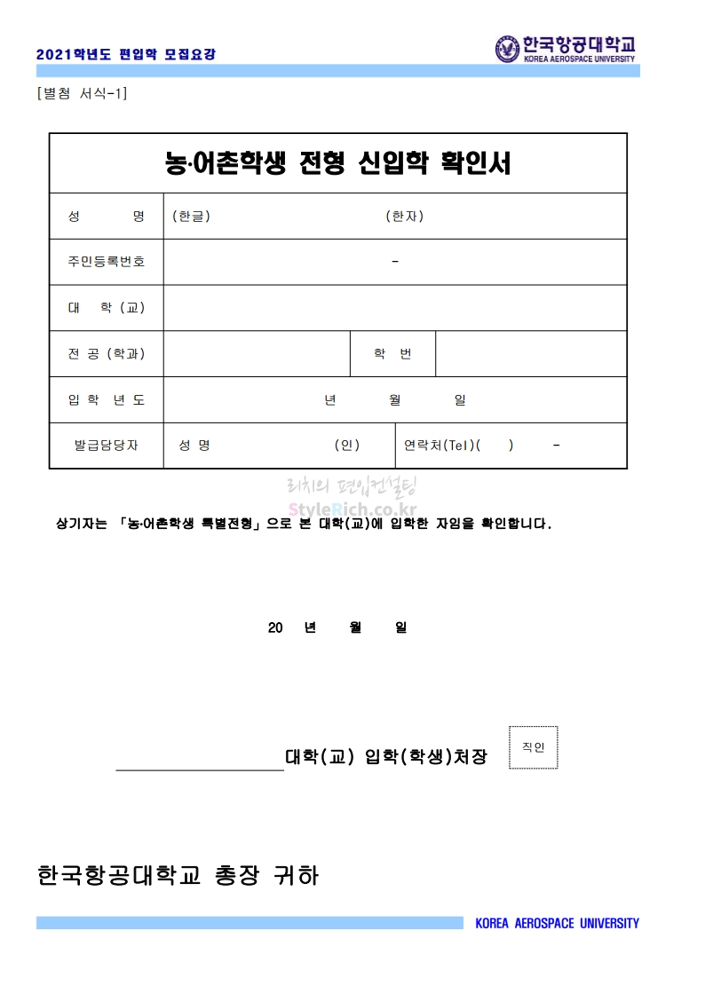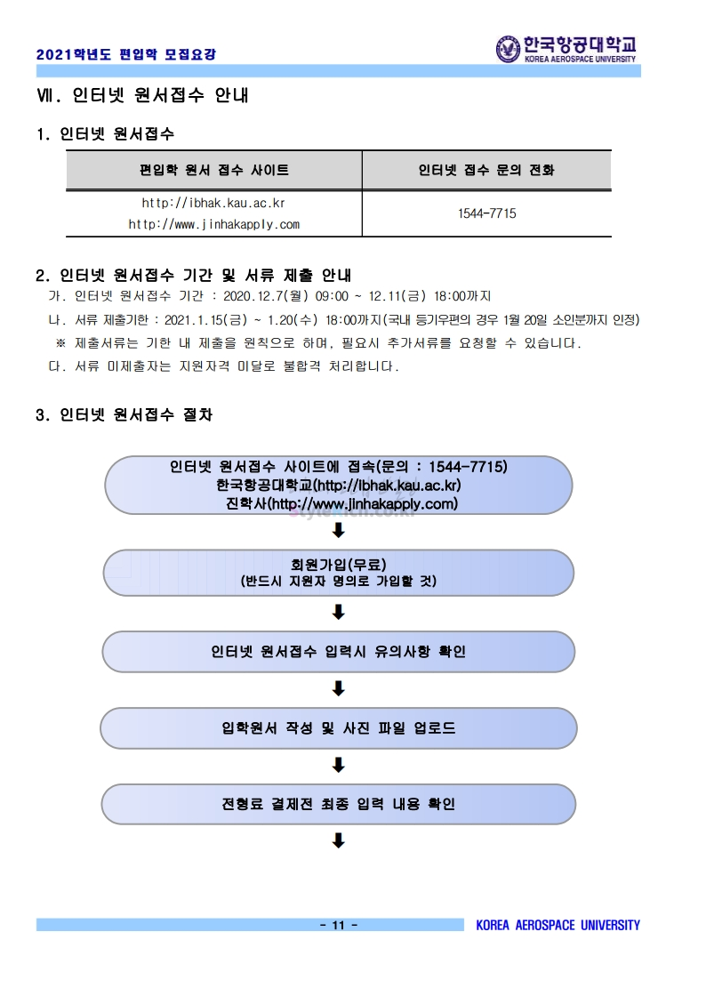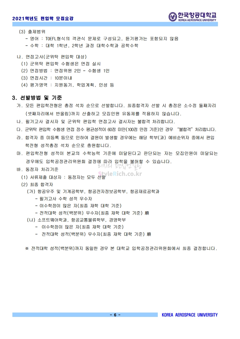 2021학년도 한국항공대 편입 모집요강 다운받기