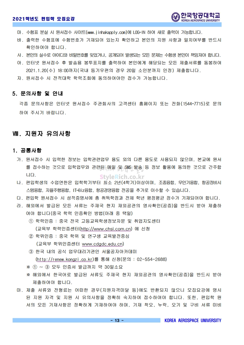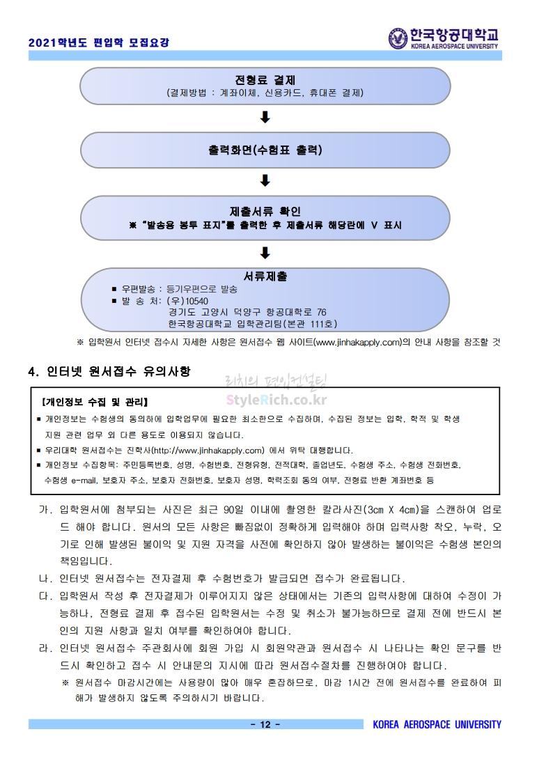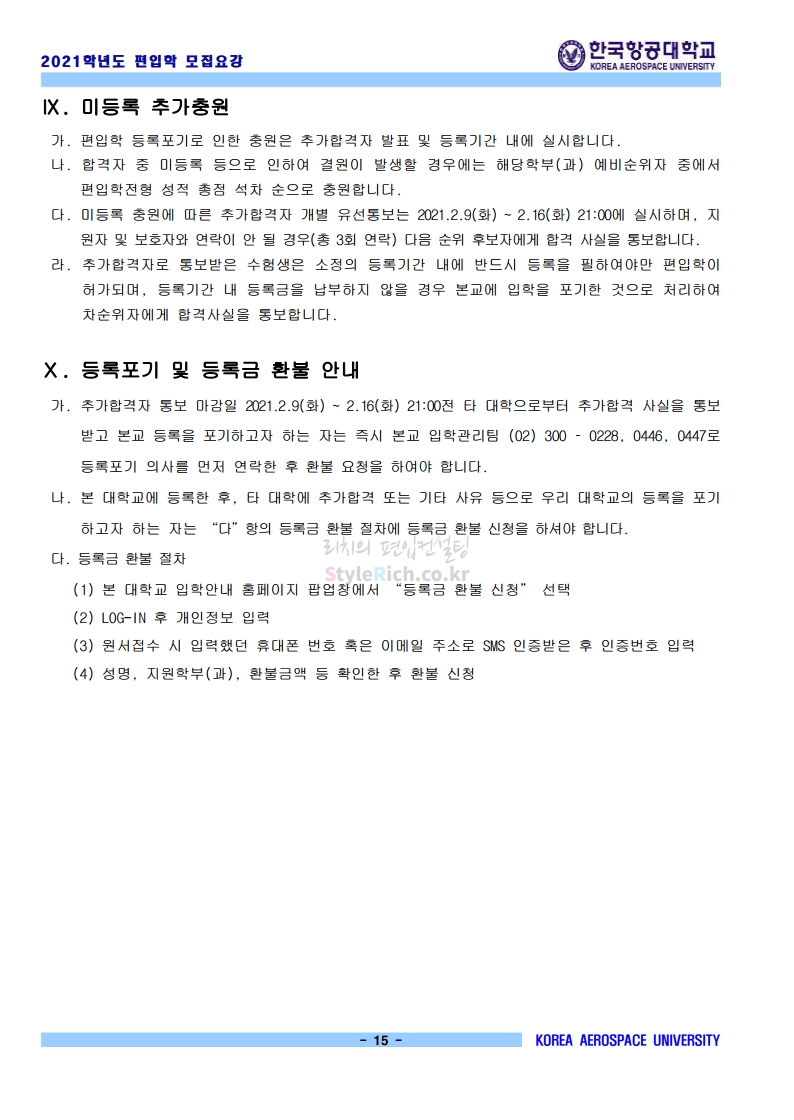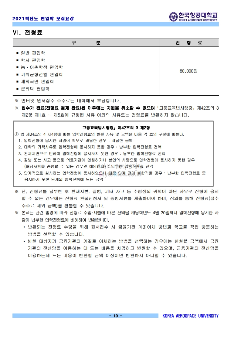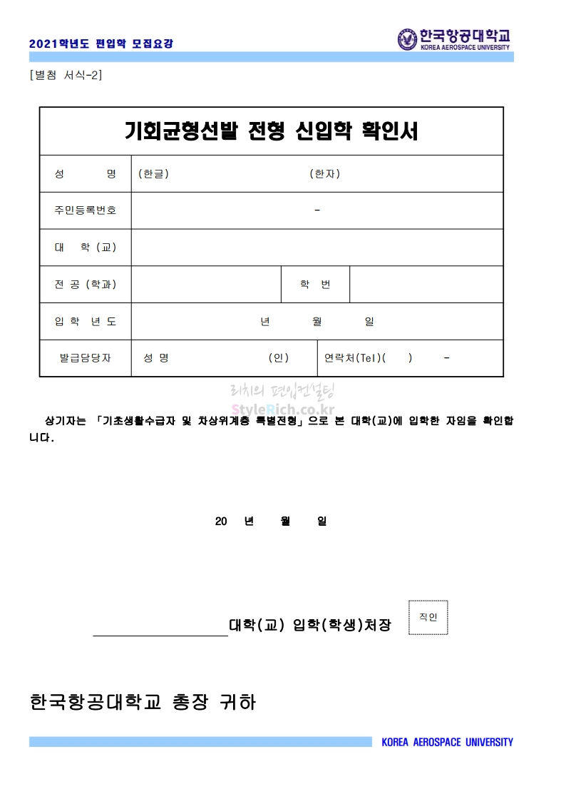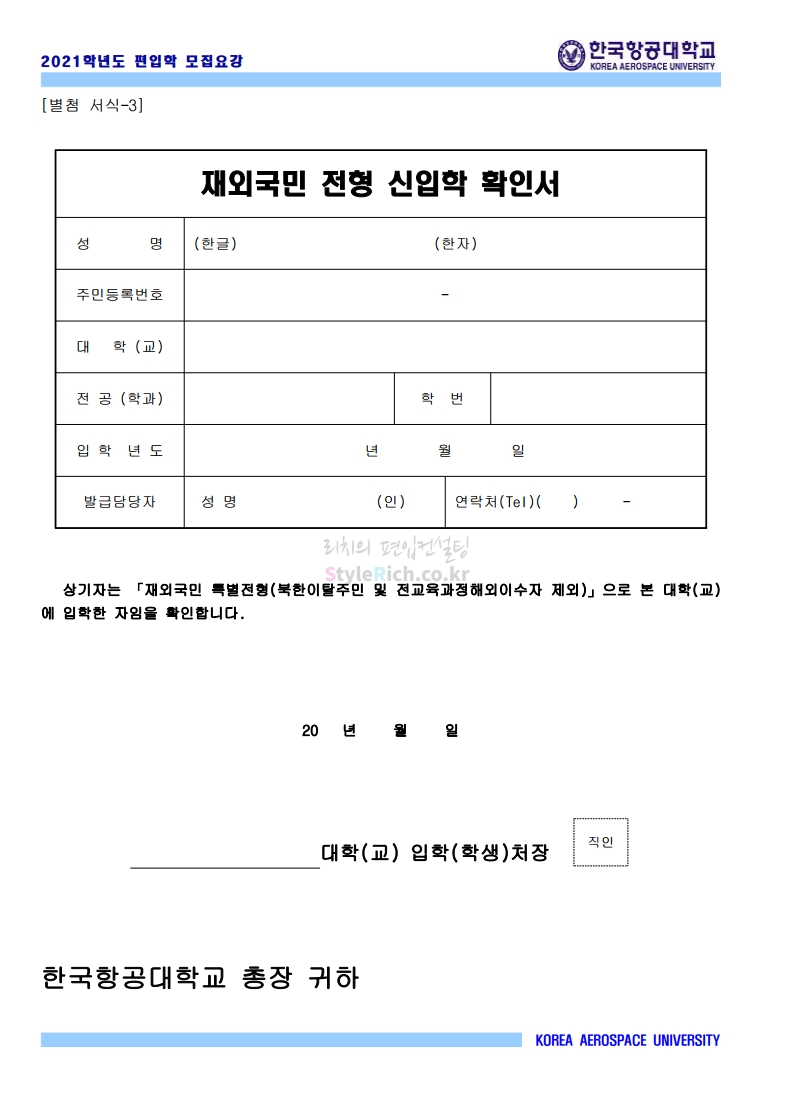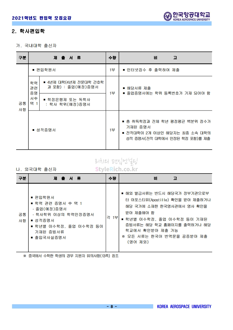 2021학년도 한국항공대 편입 모집요강 다운받기