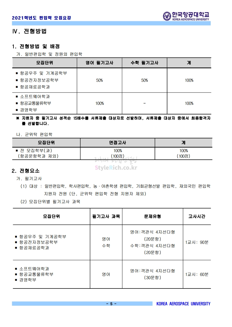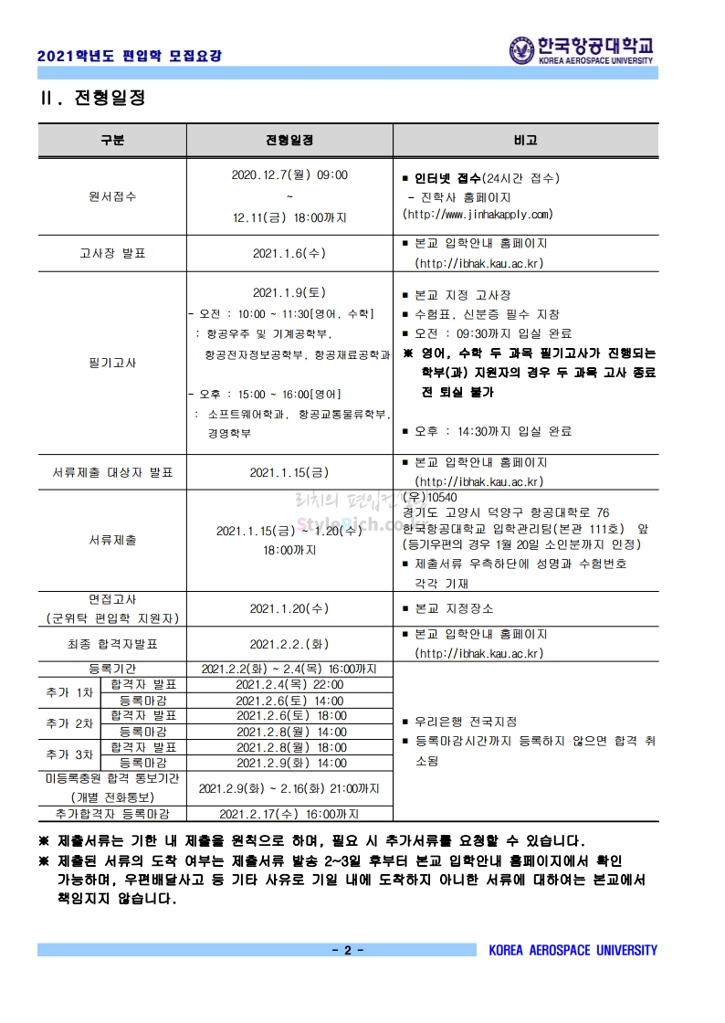 * 최종 모집요강 발표 이후에도 내용의 일부가 변경될 수 있으니 지원 전 반드시 한국항공대 입학처의 모집요강을 확인 바랍니다.