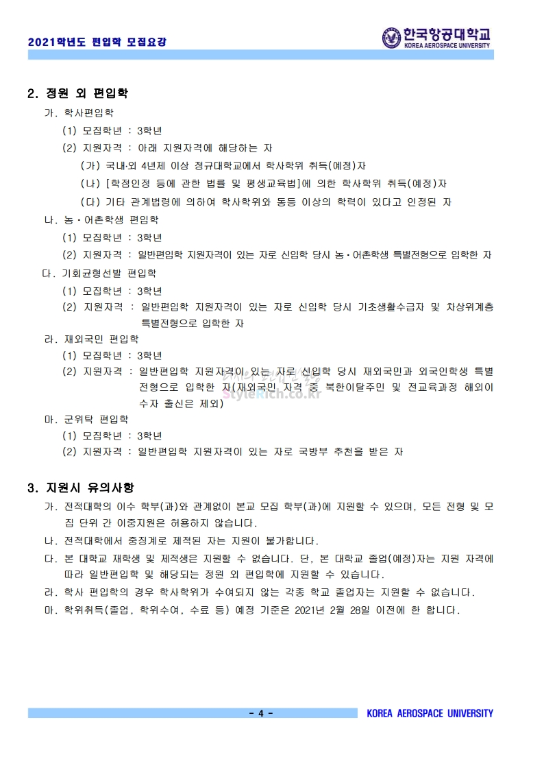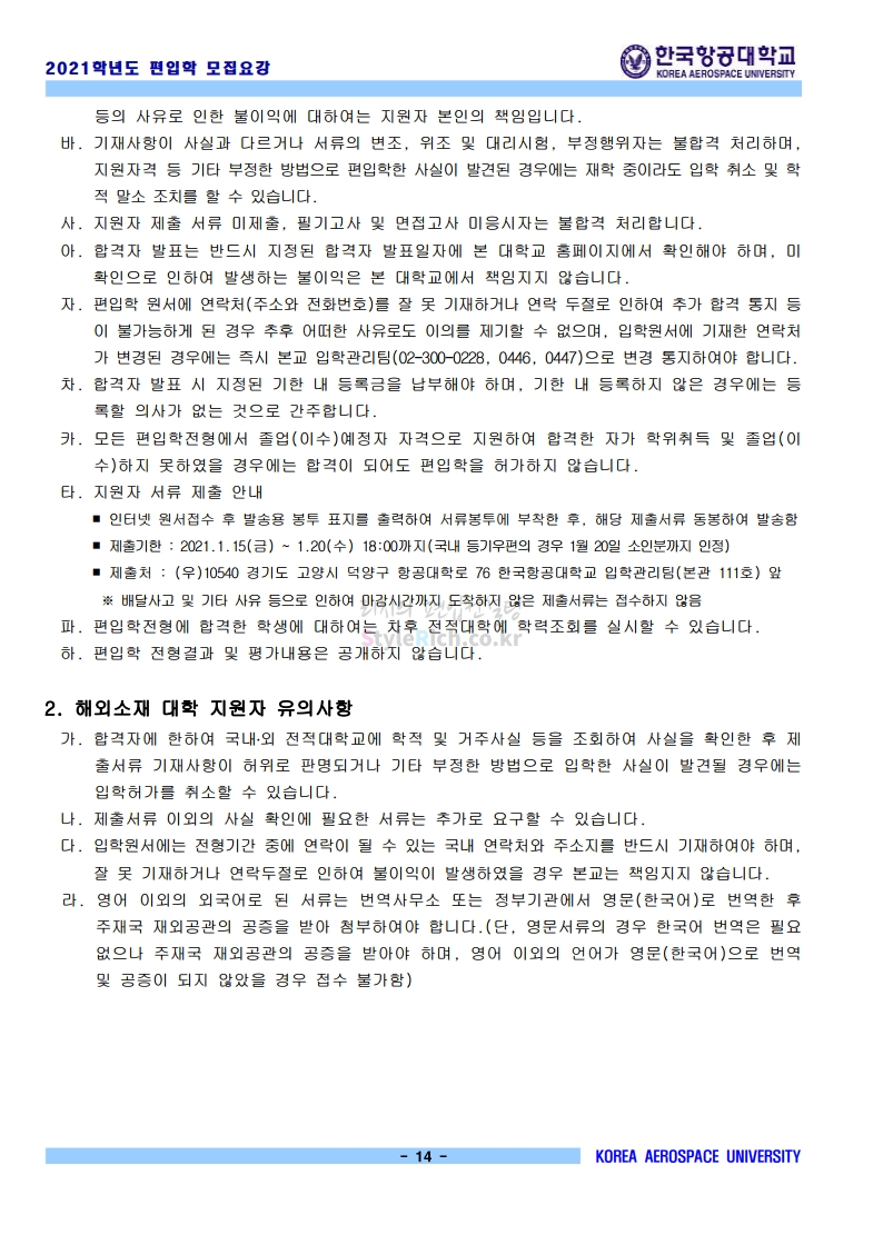2021학년도 한국항공대 편입 모집요강(2020.11.27 기준)을 간편하게 확인하세요.
