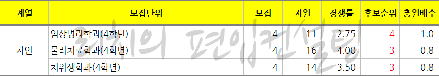 특징적인 사항은 일반편입에서 야간학과는 예비가 돌지 않았다는 것입니다.
