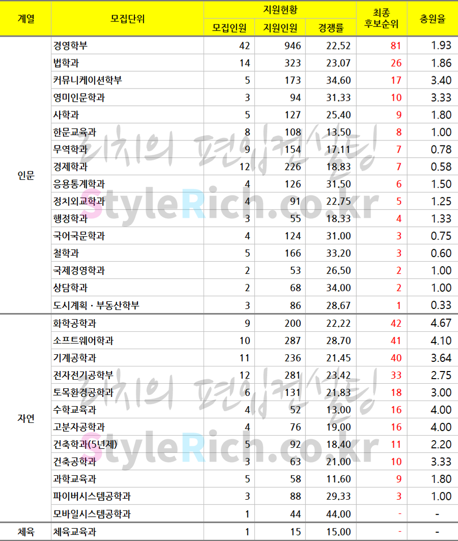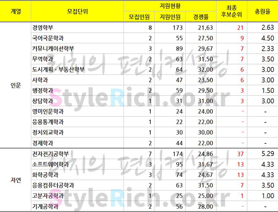 인문 추가합격 TOP3 학과: 경영학부, 법학과, 커뮤니케이션학부