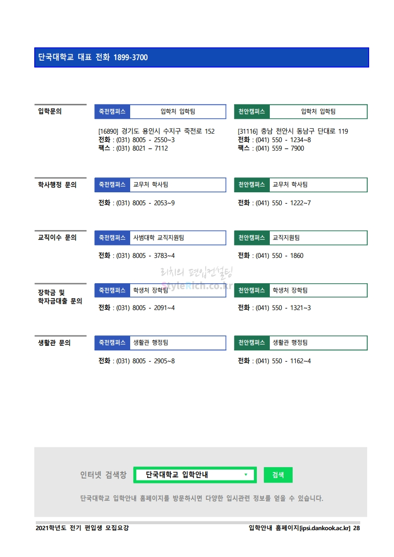 2021학년도 단국대(천안) 모집요강 다운받기