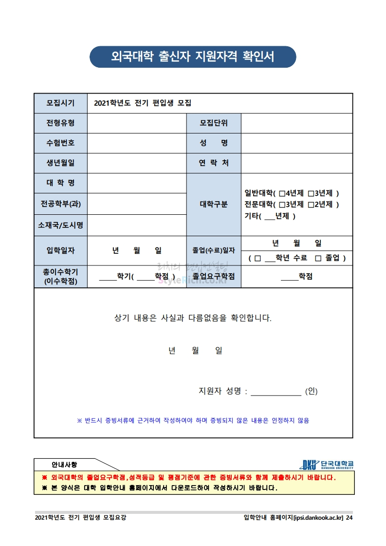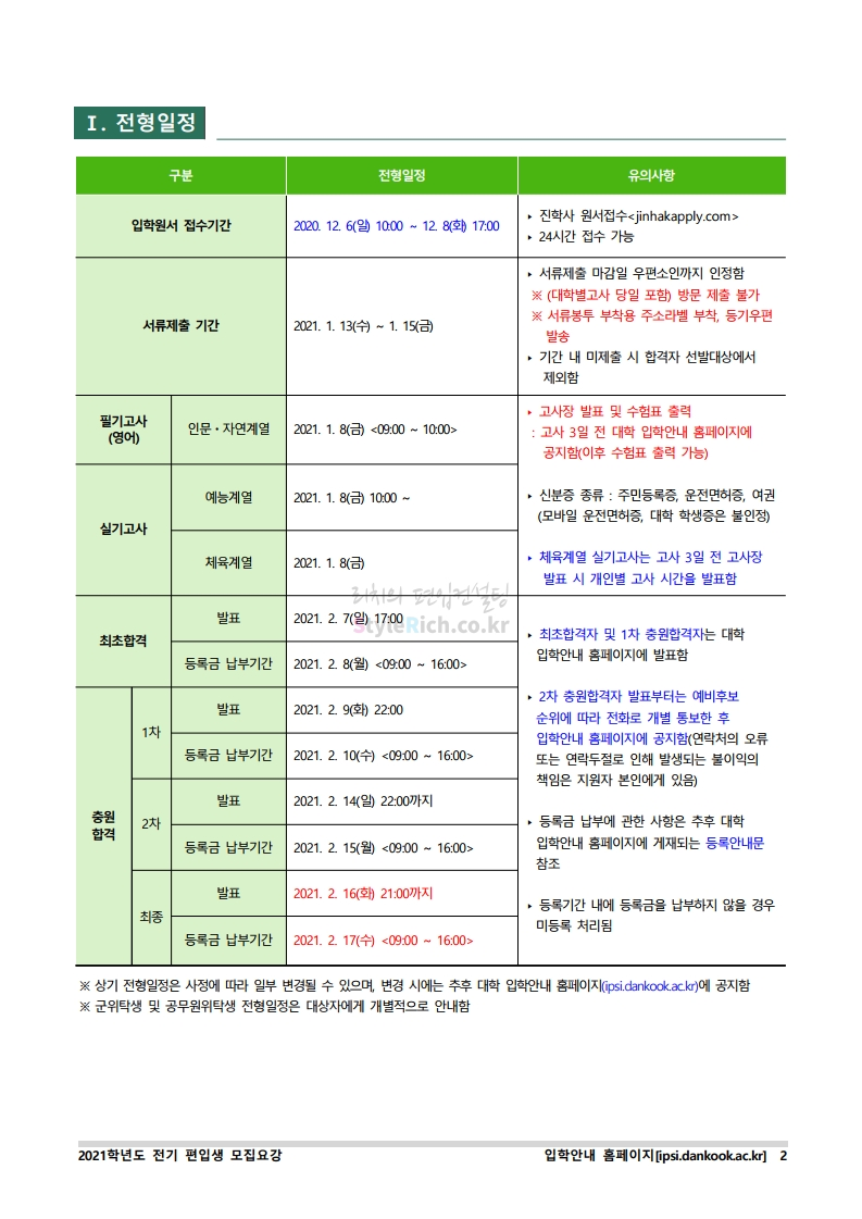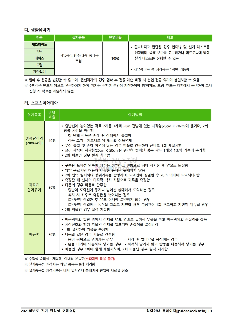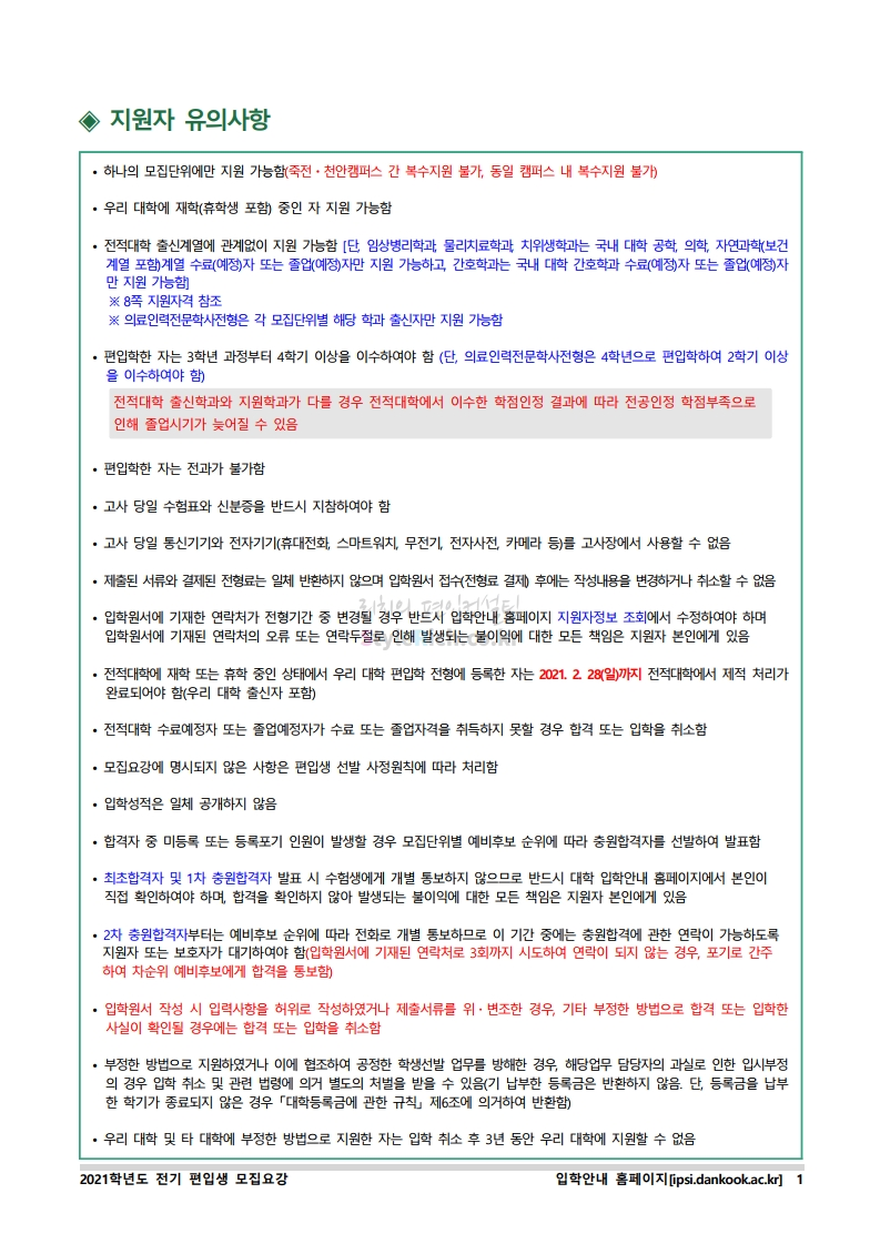 * 최종 모집요강 발표 이후에도 내용의 일부가 변경될 수 있으니 지원 전 반드시 단국대(천안) 입학처의 모집요강을 확인바랍니다.