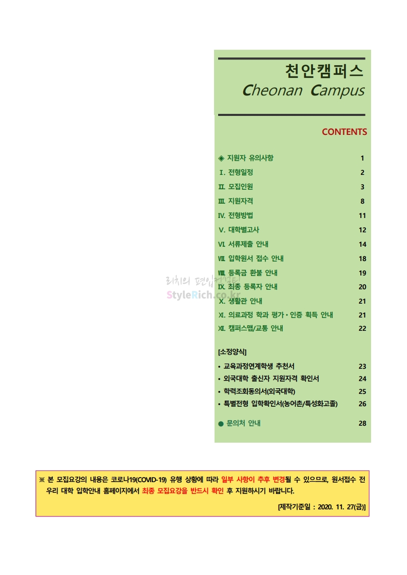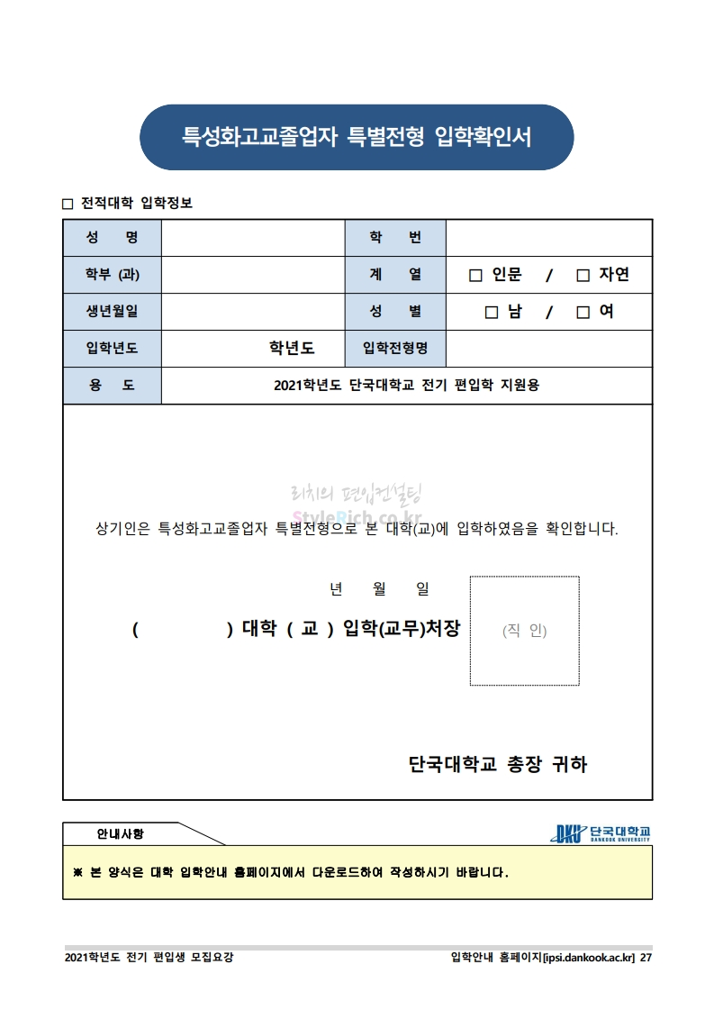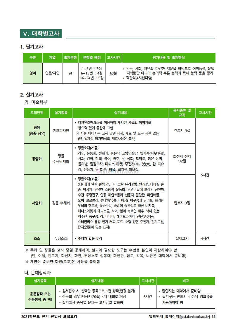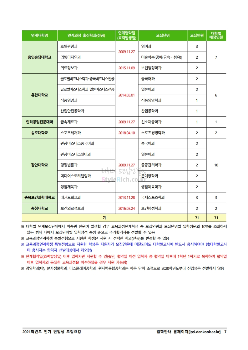 * 최종 모집요강 발표 이후에도 내용의 일부가 변경될 수 있으니 지원 전 반드시 단국대(천안) 입학처의 모집요강을 확인바랍니다.