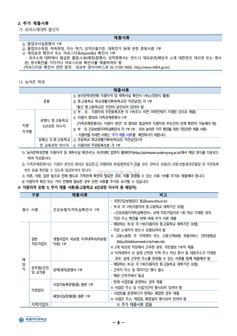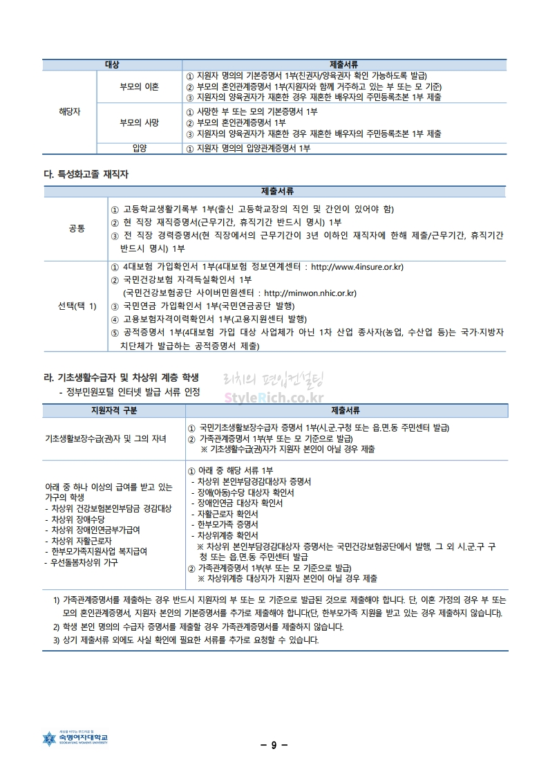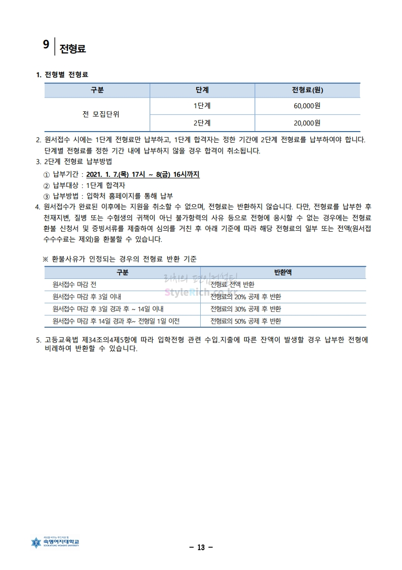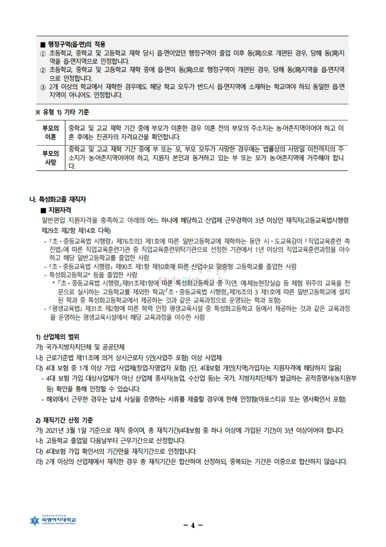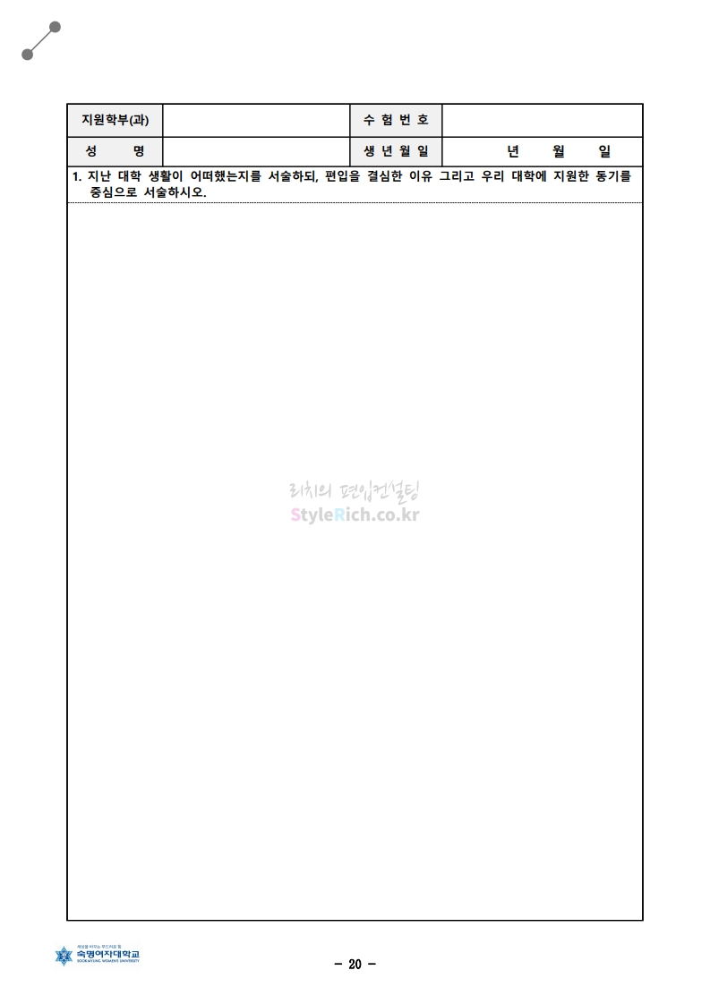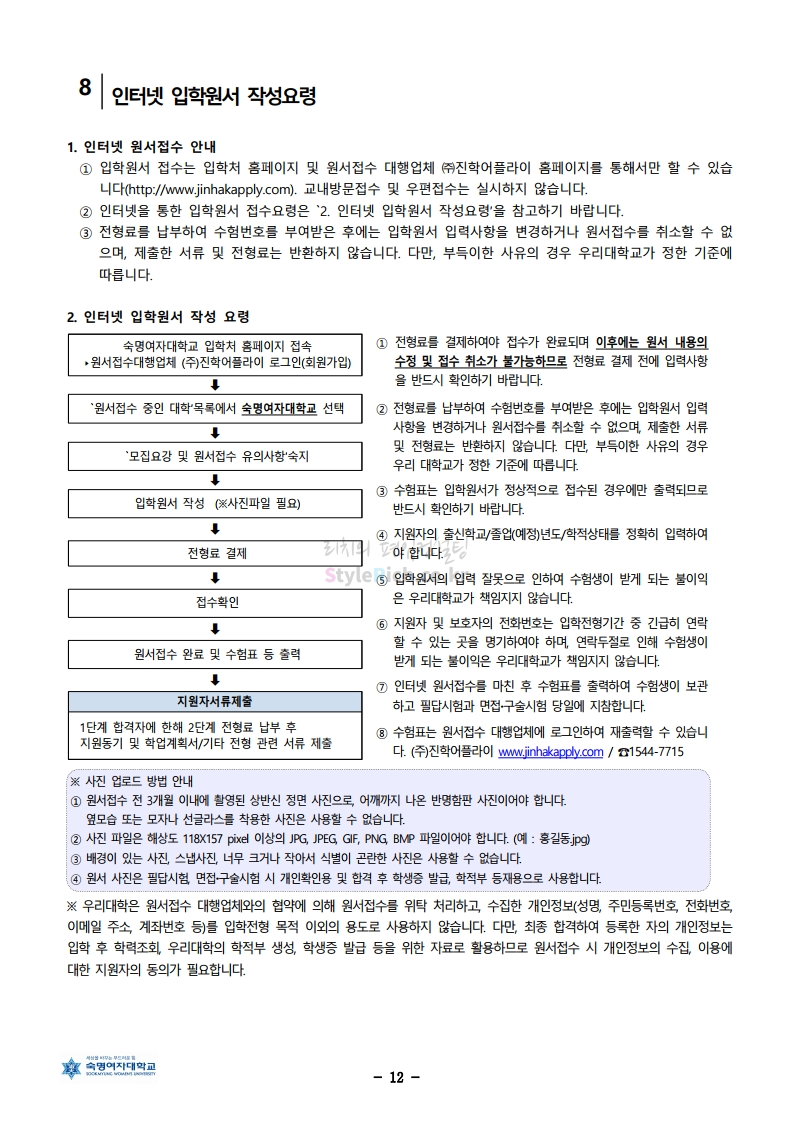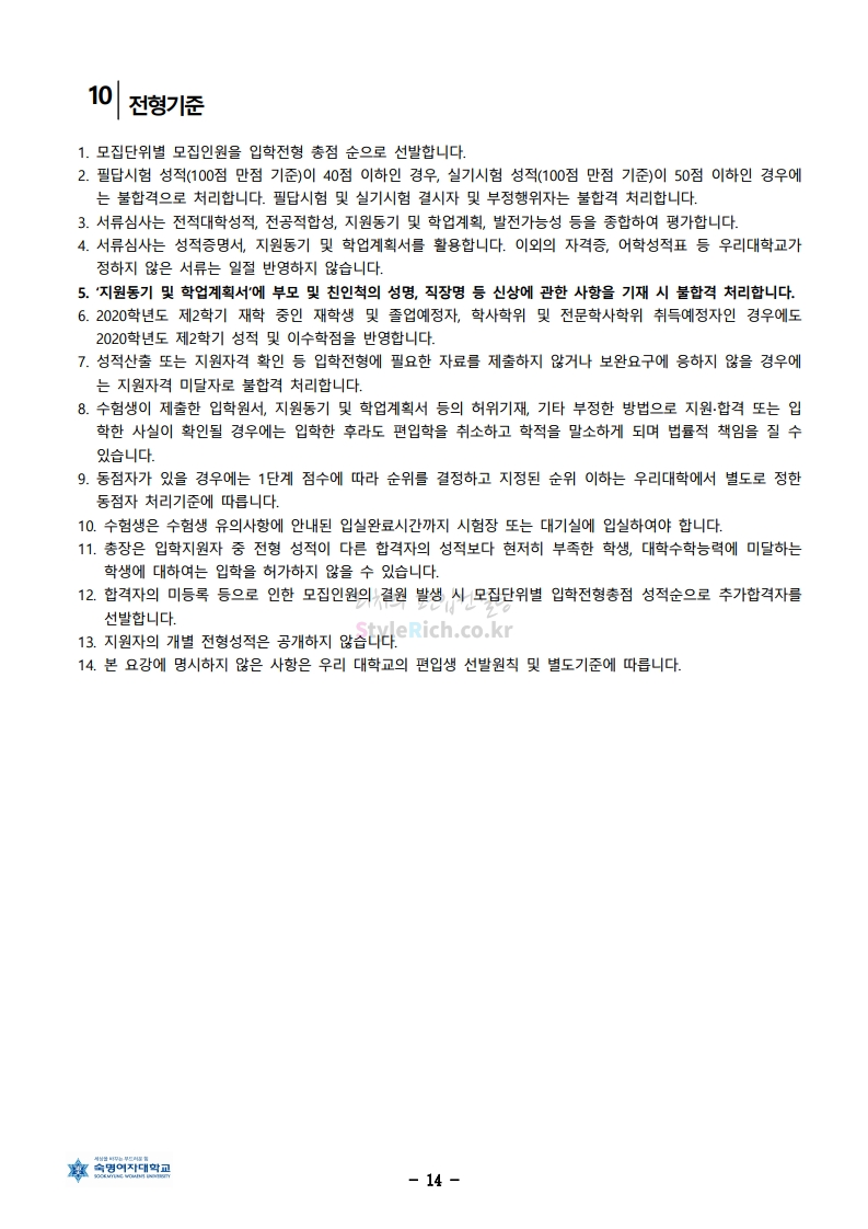 숙명여대 편입 2021학년도 모집요강 간편하게 보자! 2020.12.03 00:56 편입 모집요강/2021학년도 모집요강 2021학년도 숙명여대 편입 모집요강(2020.12.01 기준)을 간편하게 확인하세요. PC나 모바일에서 이미지를 클릭(터치) 후 이미지의 좌우측을 클릭(터치)하면 모집요강의 순서를 앞뒤로 넘길 수 있습니다. 좌측 클릭(터치)는 이전 페이지, 우측 클릭(터치)는 다음 페이지입니다. * 최종 모집요강 발표 이후에도 내용의 일부가 변경될 수 있으니 지원 전 반드시 숙명여대 입학처의 모집요강을 확인바랍니다. 2021학년도 숙명여대 편입 모집요강 다운받기 2021학년도_편입생모집요강.hwp 3.63MB <출처: 숙명여대> [캠퍼스투어 1편] 상상부기가 울고있다🥺 무슨일이야⁉ 공유하기 게시글 관리 리치의 편입컨설팅 저작자표시 비영리 변경금지 (새창열림) '편입 모집요강 > 2021학년도 모집요강' 카테고리의 다른 글 연세대 편입 2021학년도 모집요강 간편하게 보자! (0) 2020.12.05 연세대(미래) 편입 2021학년도 모집요강 간편하게 보자! (0) 2020.12.04 경희대 편입 2021학년도 모집요강 간편하게 보자! (0) 2020.12.03 건국대 편입 2021학년도 모집요강 간편하게 보자! (0) 2020.12.02 단국대(죽전) 편입 2021학년도 모집요강 간편하게 보자! (0) 2020.12.02 댓글 공유하기 다른 글 댓글 이 글 공유하기 구독하기 구독하기 카카오톡 카카오톡 라인 라인 트위터 트위터 Facebook Facebook 카카오스토리 카카오스토리 밴드 밴드 네이버 블로그 네이버 블로그 Pocket Pocket Evernote Evernote 다른 글 연세대 편입 2021학년도 모집요강 간편하게 보자! 연세대 편입 2021학년도 모집요강 간편하게 보자! 2020.12.05 연세대(미래) 편입 2021학년도 모집요강 간편하게 보자! 연세대(미래) 편입 2021학년도 모집요강 간편하게 보자! 2020.12.04 경희대 편입 2021학년도 모집요강 간편하게 보자! 경희대 편입 2021학년도 모집요강 간편하게 보자! 2020.12.03 건국대 편입 2021학년도 모집요강 간편하게 보자! 건국대 편입 2021학년도 모집요강 간편하게 보자! 2020.12.02 다른 글 더 둘러보기