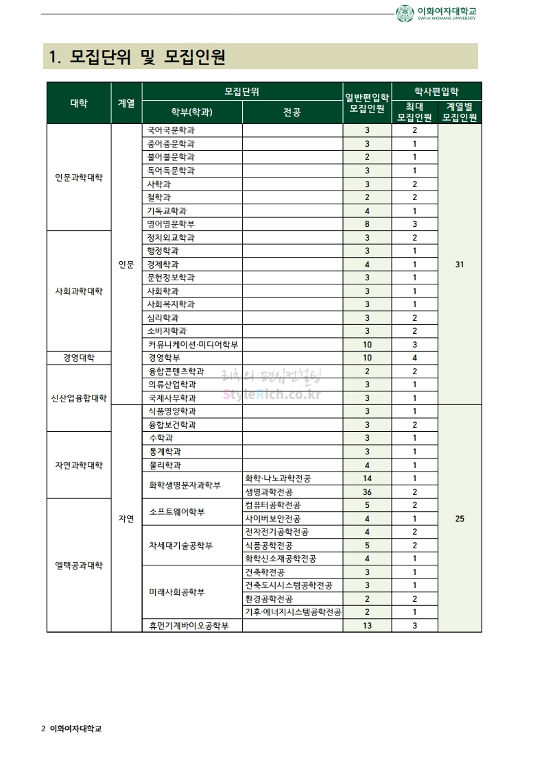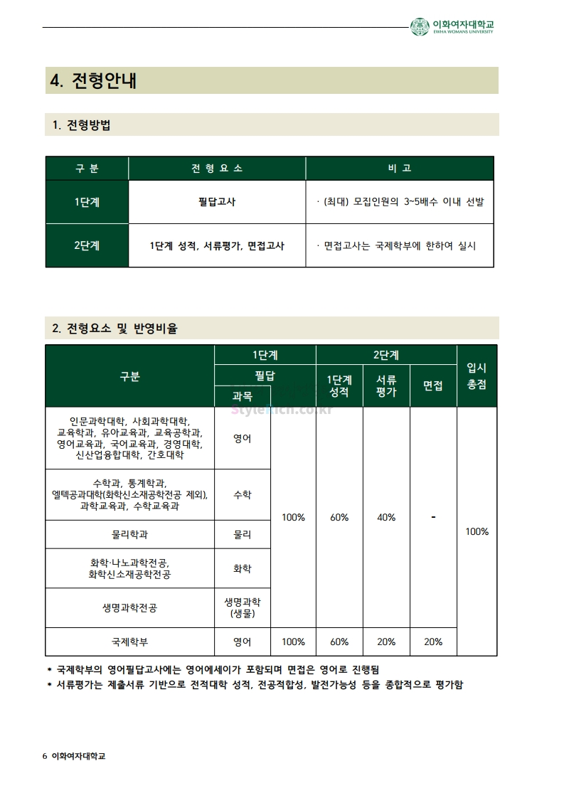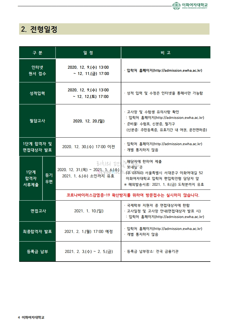 *최종 모집요강 발표 이후에도 내용의 일부가 변경될 수 있으니 지원 전 반드시 이화여대 입학처의 모집요강을 확인바랍니다.