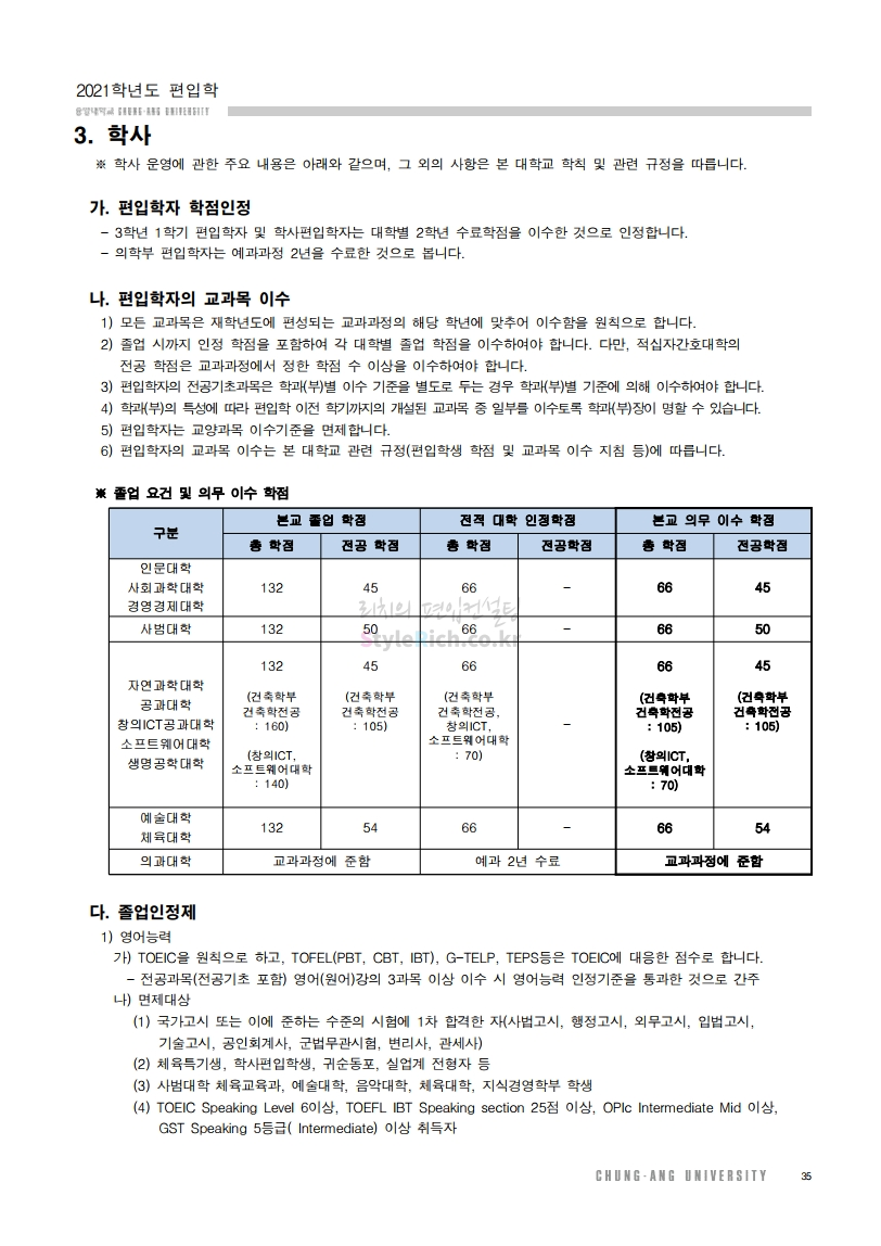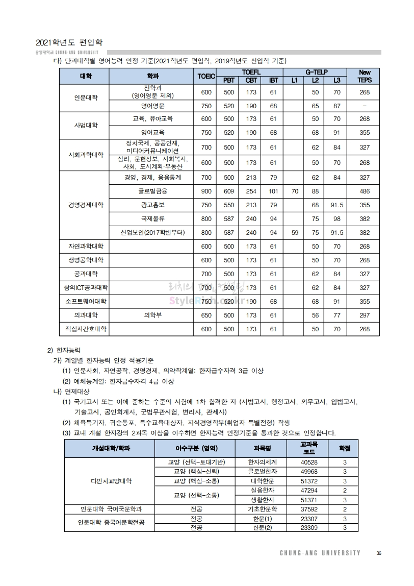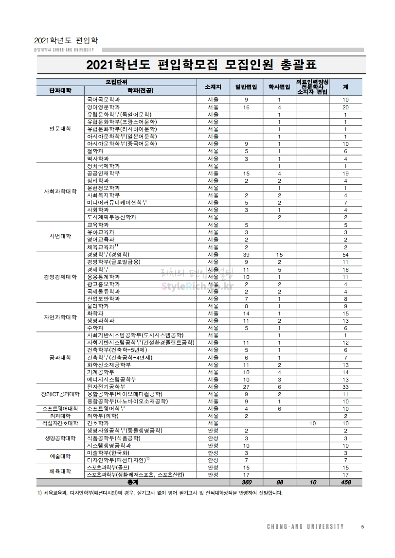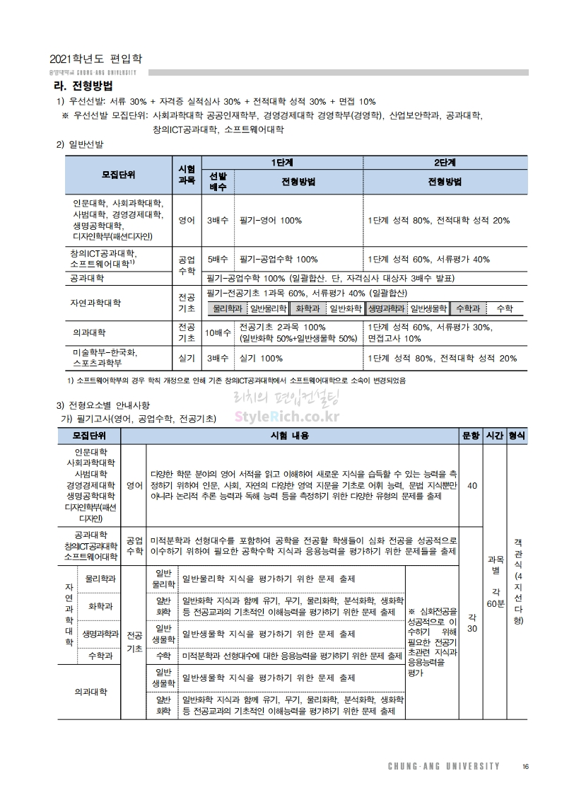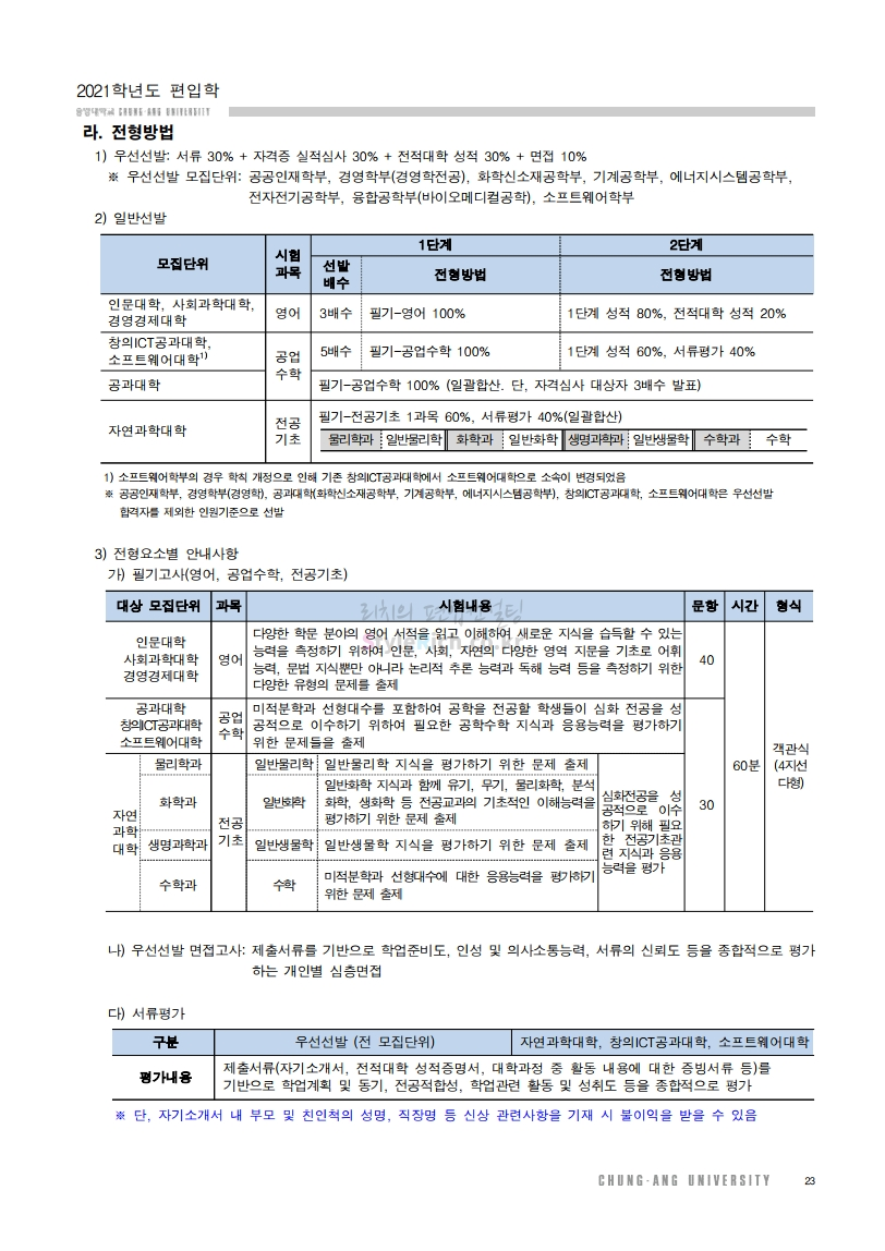 중앙대 편입 2021학년도 모집요강 간편하게 보자!