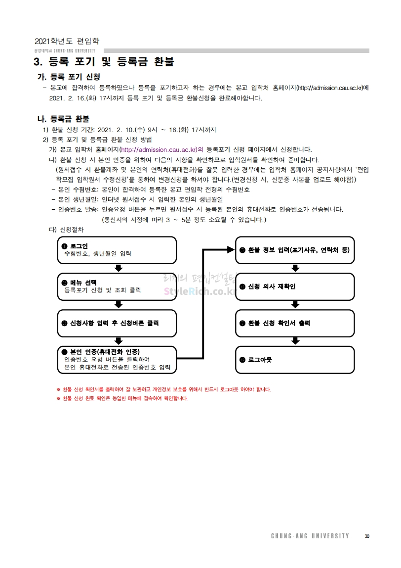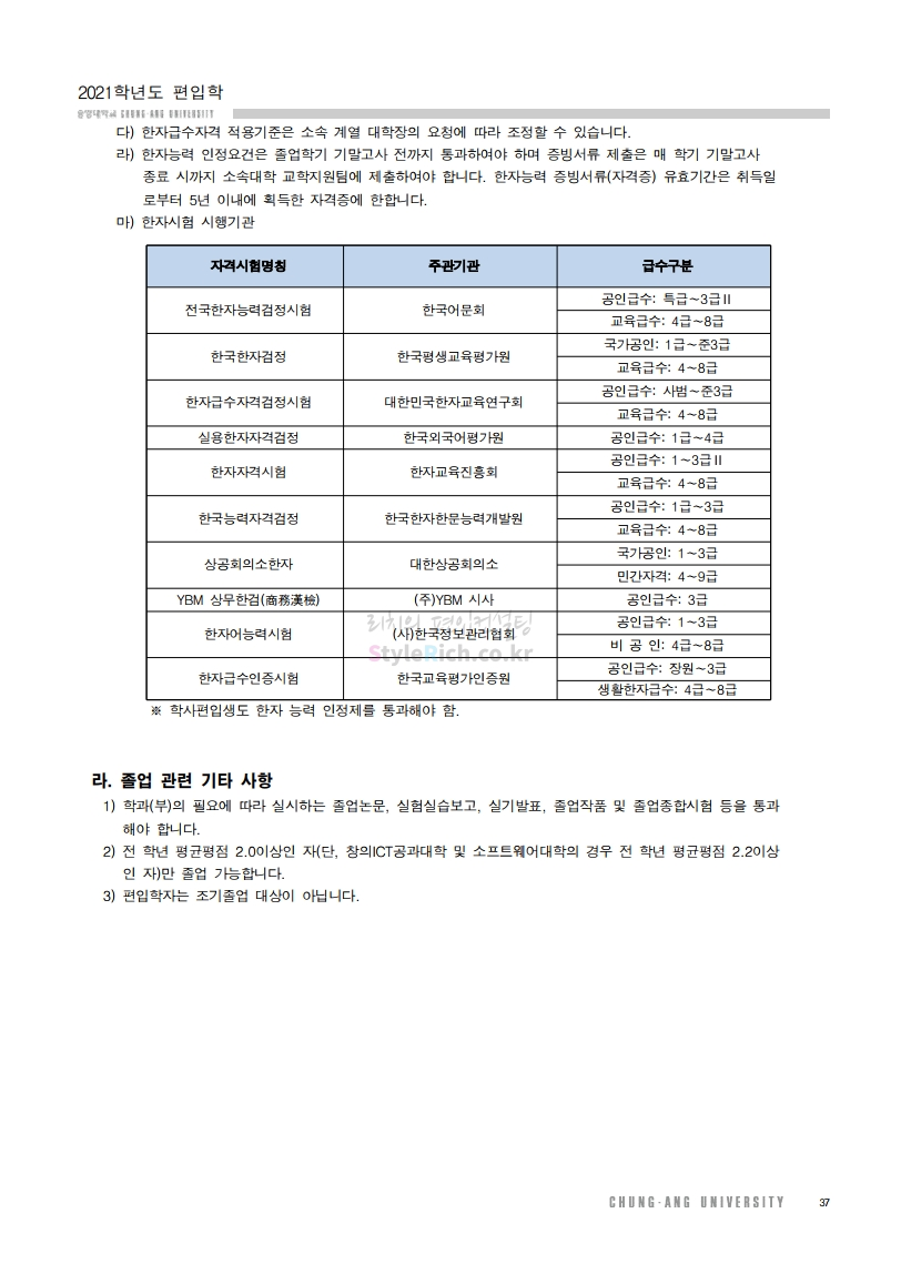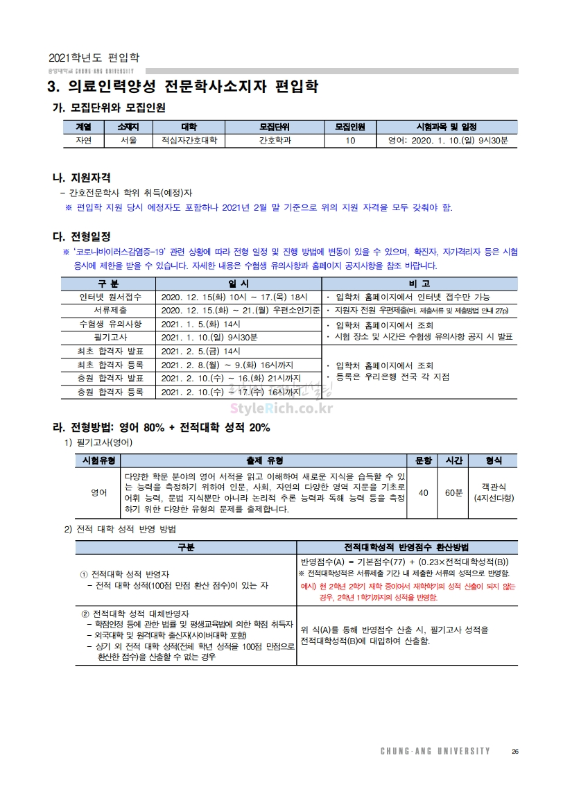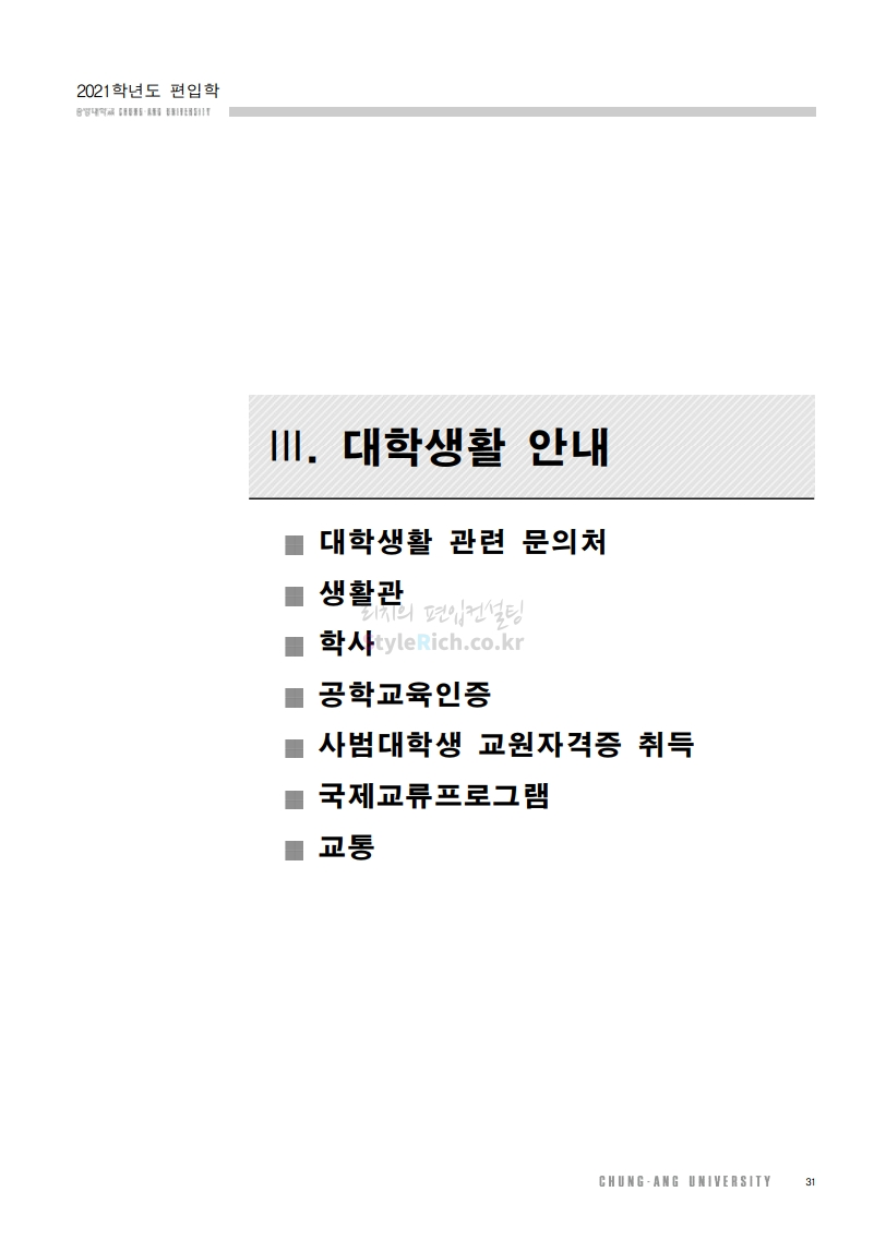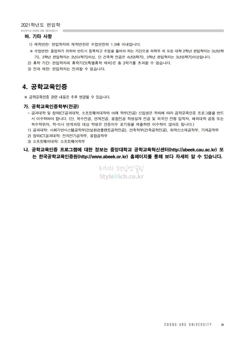 중앙대 편입 2021학년도 모집요강 간편하게 보자!