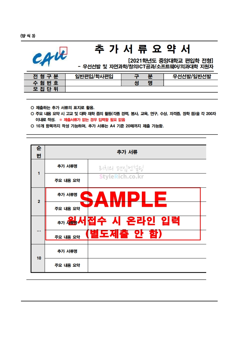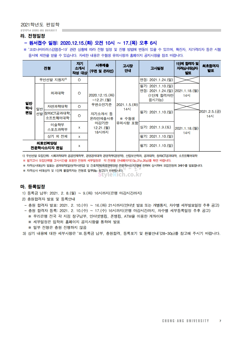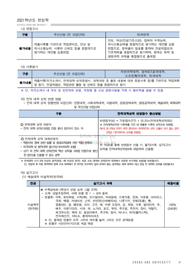 * 최종 모집요강 발표 이후에도 내용의 일부가 변경될 수 있으니 지원 전 반드시 중앙대 입학처의 모집요강을 확인바랍니다.