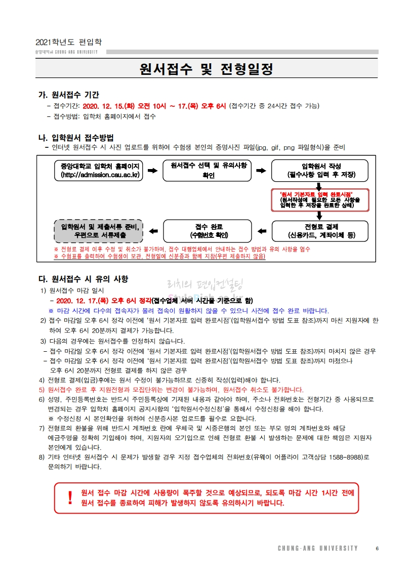 인터넷 원서접수: 2020.12.15(화) ~ 17(목) 18시