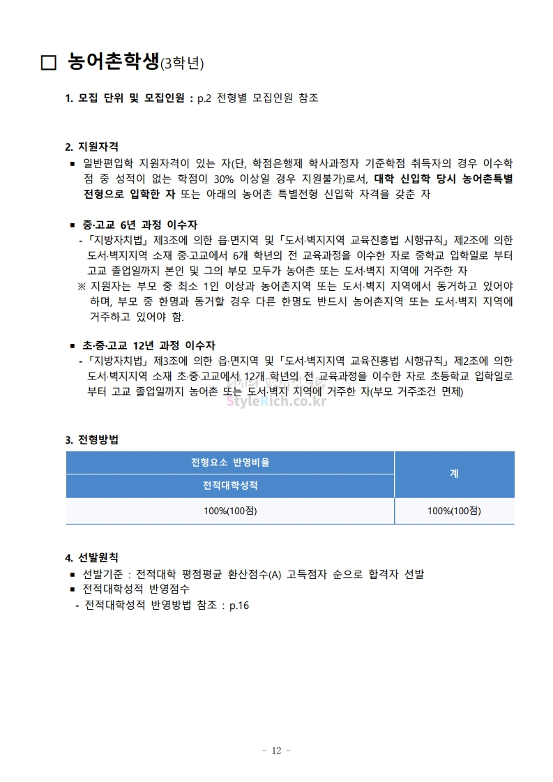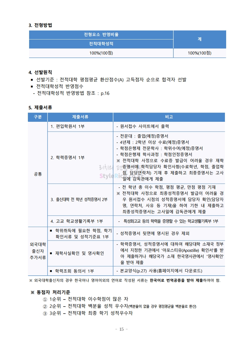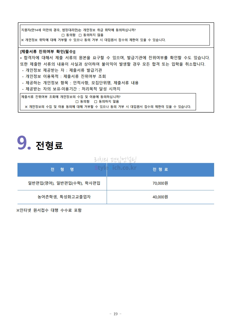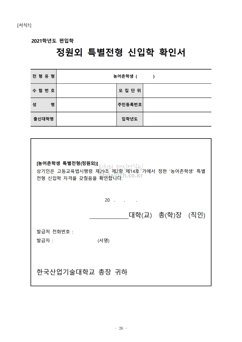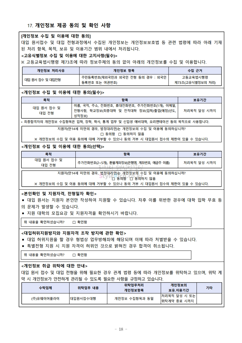 한국산업기술대 편입 2021학년도 모집요강 간편하게 보자! 2020.12.06 12:45 편입 모집요강/2021학년도 모집요강 2021학년도 한국산업기술대 편입 모집요강(2020.12.03 기준)을 간편하게 확인하세요. PC나 모바일에서 이미지를 클릭(터치) 후 이미지의 좌우측을 클릭(터치)하면 모집요강의 순서를 앞뒤로 넘길 수 있습니다. 좌측 클릭(터치)는 이전 페이지, 우측 클릭(터치)는 다음 페이지입니다. * 최종 모집요강 발표 이후에도 내용의 일부가 변경될 수 있으니 지원 전 반드시 한국산업기술대 입학처의 모집요강을 확인 바랍니다. <출처: 한국산업기술대> [한국산업기술대학교] K-MOOC 온라인 공개강좌 소개 👉마케팅조사론👈 공유하기 게시글 관리 리치의 편입컨설팅 저작자표시 비영리 변경금지 (새창열림) '편입 모집요강 > 2021학년도 모집요강' 카테고리의 다른 글 가톨릭대 편입 2021학년도 모집요강 간편하게 보자! (0) 2020.12.06 한국외대 편입 2021학년도 모집요강 간편하게 보자! (0) 2020.12.06 중앙대 편입 2021학년도 모집요강 간편하게 보자! (0) 2020.12.06 인하대 편입 2021학년도 모집요강 간편하게 보자! (0) 2020.12.05 이화여대 편입 2021학년도 모집요강 간편하게 보자! (0) 2020.12.05 댓글 공유하기 다른 글 댓글 이 글 공유하기 구독하기 구독하기 카카오톡 카카오톡 라인 라인 트위터 트위터 Facebook Facebook 카카오스토리 카카오스토리 밴드 밴드 네이버 블로그 네이버 블로그 Pocket Pocket Evernote Evernote 다른 글 가톨릭대 편입 2021학년도 모집요강 간편하게 보자! 가톨릭대 편입 2021학년도 모집요강 간편하게 보자! 2020.12.06 한국외대 편입 2021학년도 모집요강 간편하게 보자! 한국외대 편입 2021학년도 모집요강 간편하게 보자! 2020.12.06 중앙대 편입 2021학년도 모집요강 간편하게 보자! 중앙대 편입 2021학년도 모집요강 간편하게 보자! 2020.12.06 인하대 편입 2021학년도 모집요강 간편하게 보자! 인하대 편입 2021학년도 모집요강 간편하게 보자! 2020.12.05 다른 글 더 둘러보기