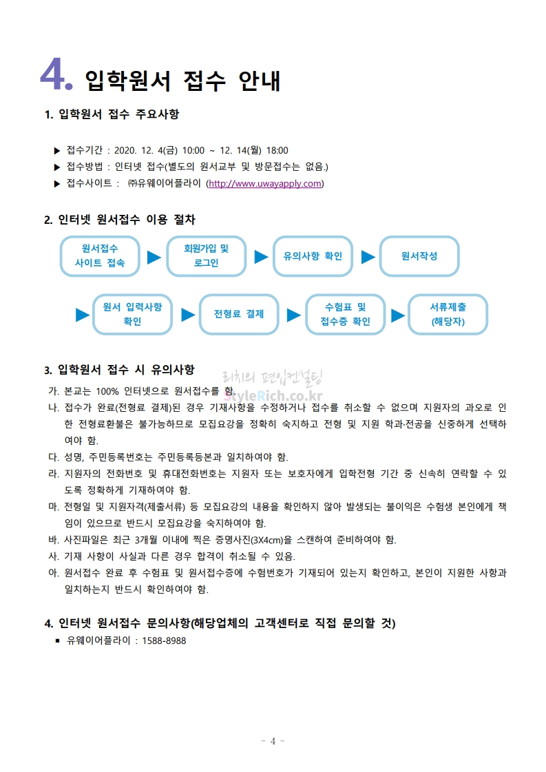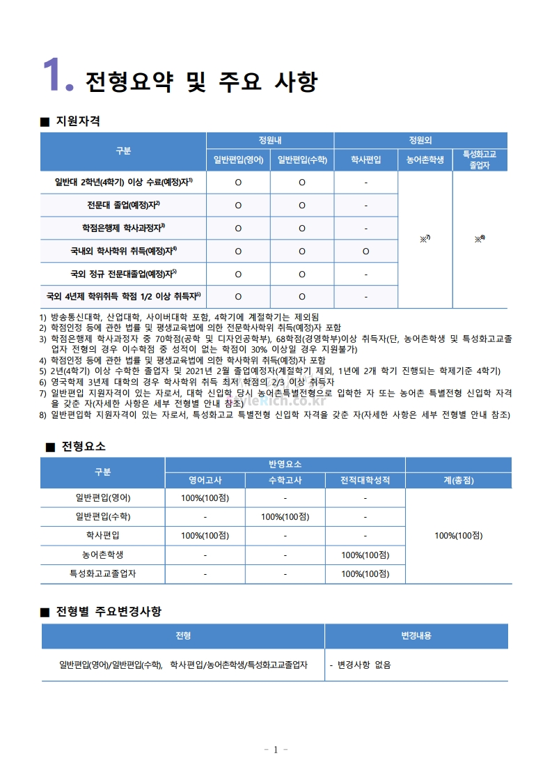 한국산업기술대 편입 2021학년도 모집요강 간편하게 보자! 2020.12.06 12:45 편입 모집요강/2021학년도 모집요강 2021학년도 한국산업기술대 편입 모집요강(2020.12.03 기준)을 간편하게 확인하세요. PC나 모바일에서 이미지를 클릭(터치) 후 이미지의 좌우측을 클릭(터치)하면 모집요강의 순서를 앞뒤로 넘길 수 있습니다. 좌측 클릭(터치)는 이전 페이지, 우측 클릭(터치)는 다음 페이지입니다. * 최종 모집요강 발표 이후에도 내용의 일부가 변경될 수 있으니 지원 전 반드시 한국산업기술대 입학처의 모집요강을 확인 바랍니다. <출처: 한국산업기술대> [한국산업기술대학교] K-MOOC 온라인 공개강좌 소개 👉마케팅조사론👈 공유하기 게시글 관리 리치의 편입컨설팅 저작자표시 비영리 변경금지 (새창열림) '편입 모집요강 > 2021학년도 모집요강' 카테고리의 다른 글 가톨릭대 편입 2021학년도 모집요강 간편하게 보자! (0) 2020.12.06 한국외대 편입 2021학년도 모집요강 간편하게 보자! (0) 2020.12.06 중앙대 편입 2021학년도 모집요강 간편하게 보자! (0) 2020.12.06 인하대 편입 2021학년도 모집요강 간편하게 보자! (0) 2020.12.05 이화여대 편입 2021학년도 모집요강 간편하게 보자! (0) 2020.12.05 댓글 공유하기 다른 글 댓글 이 글 공유하기 구독하기 구독하기 카카오톡 카카오톡 라인 라인 트위터 트위터 Facebook Facebook 카카오스토리 카카오스토리 밴드 밴드 네이버 블로그 네이버 블로그 Pocket Pocket Evernote Evernote 다른 글 가톨릭대 편입 2021학년도 모집요강 간편하게 보자! 가톨릭대 편입 2021학년도 모집요강 간편하게 보자! 2020.12.06 한국외대 편입 2021학년도 모집요강 간편하게 보자! 한국외대 편입 2021학년도 모집요강 간편하게 보자! 2020.12.06 중앙대 편입 2021학년도 모집요강 간편하게 보자! 중앙대 편입 2021학년도 모집요강 간편하게 보자! 2020.12.06 인하대 편입 2021학년도 모집요강 간편하게 보자! 인하대 편입 2021학년도 모집요강 간편하게 보자! 2020.12.05 다른 글 더 둘러보기