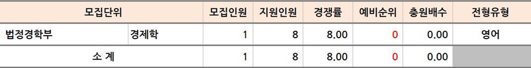 신학과는 모집인원 미달, 음악과(바이올린)은 모집인원만큼만 지원하였습니다.
