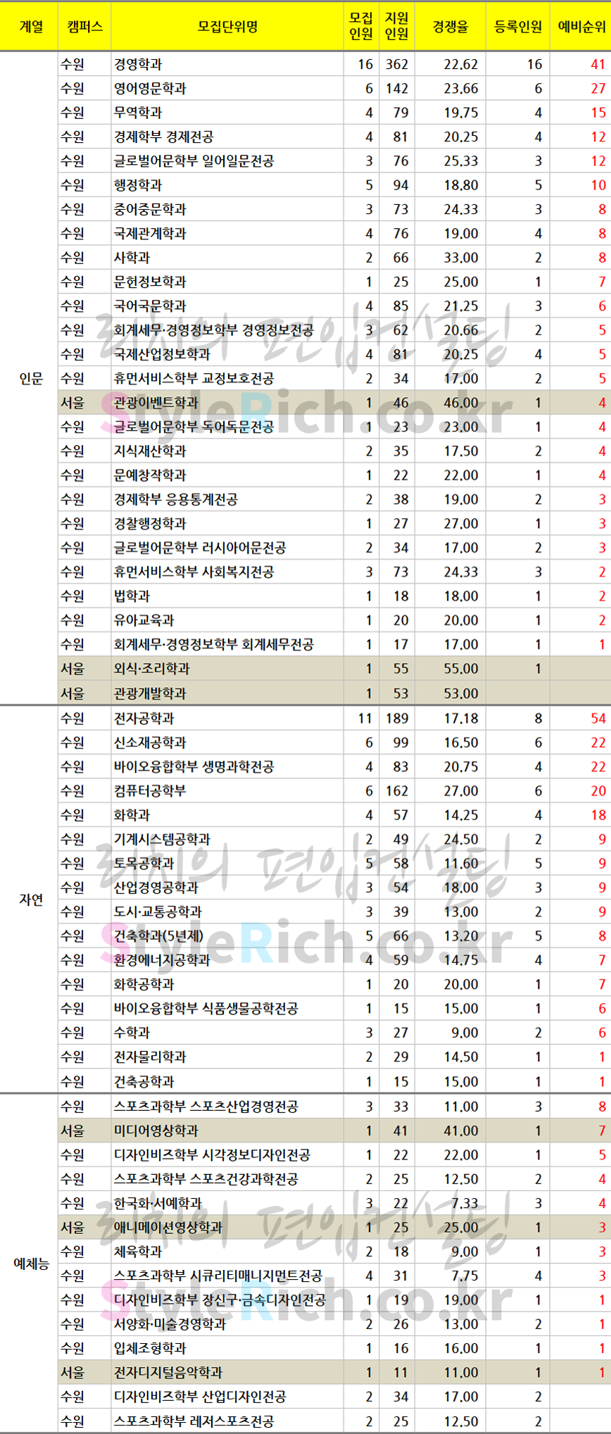 예체능 추가합격 TOP3 학과: 스포츠과학부 스포츠산업경영전공, 미디어영상학과, 디자인비즈학부 시각정보디자인전공