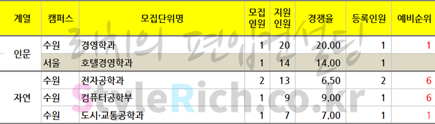 인문 추가합격 TOP3 학과: 경영학과, 무역학과, 관광경영학과