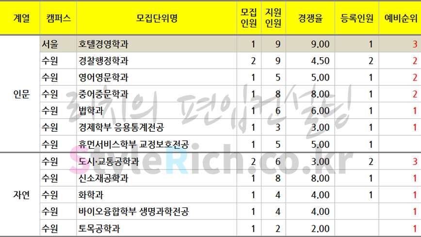 2020학년도 경기대 학사편입 추가합격 예비순위(예비번호)