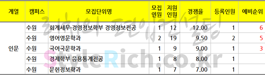 인문 추가합격 TOP3 학과: 경영학과, 영어영문학과, 무역학과