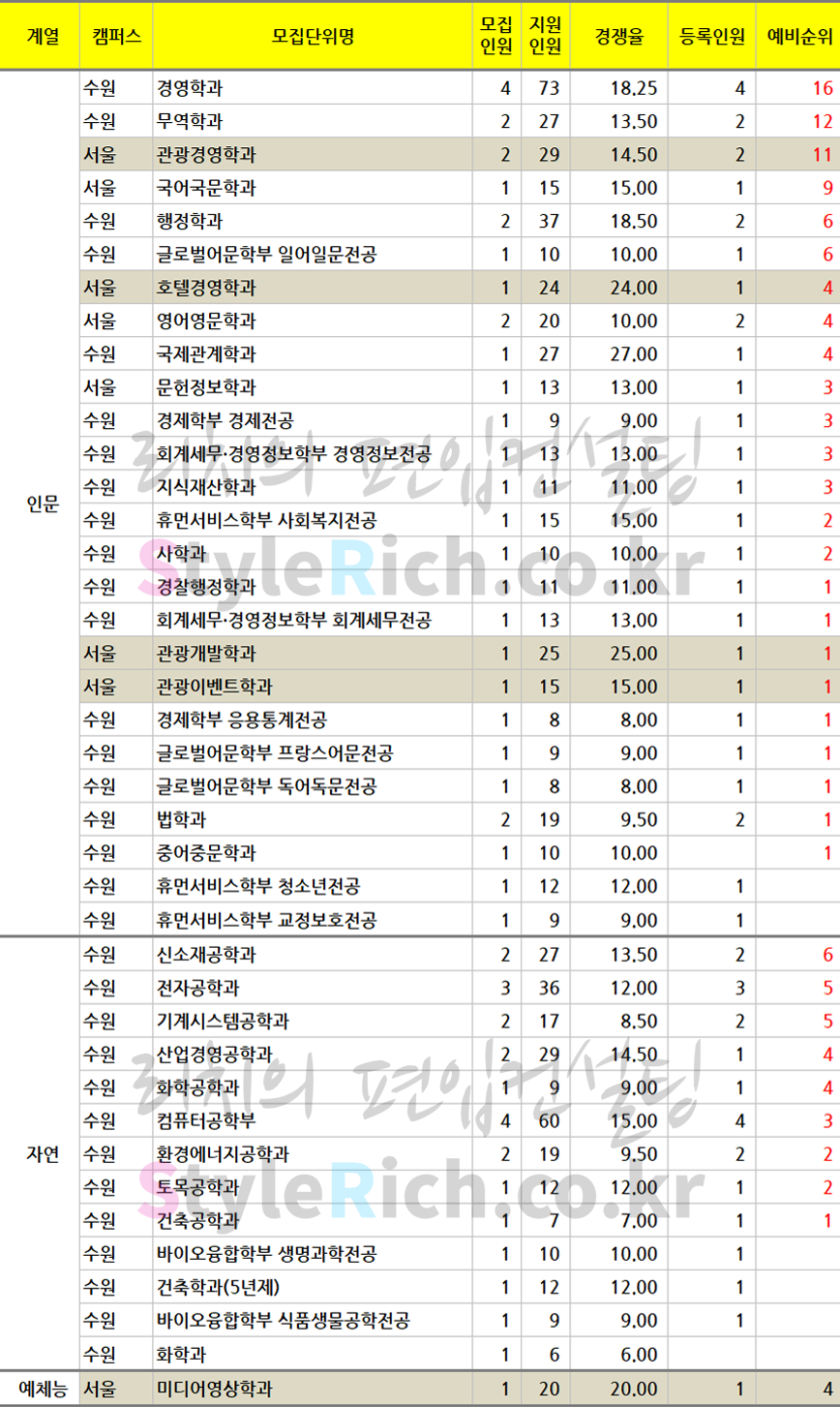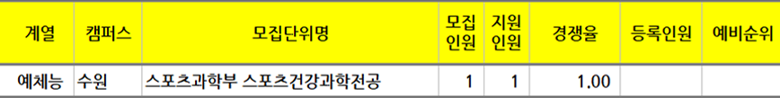 예체능 추가합격 TOP3 학과: 스포츠과학부 스포츠산업경영전공, 미디어영상학과, 디자인비즈학부 시각정보디자인전공