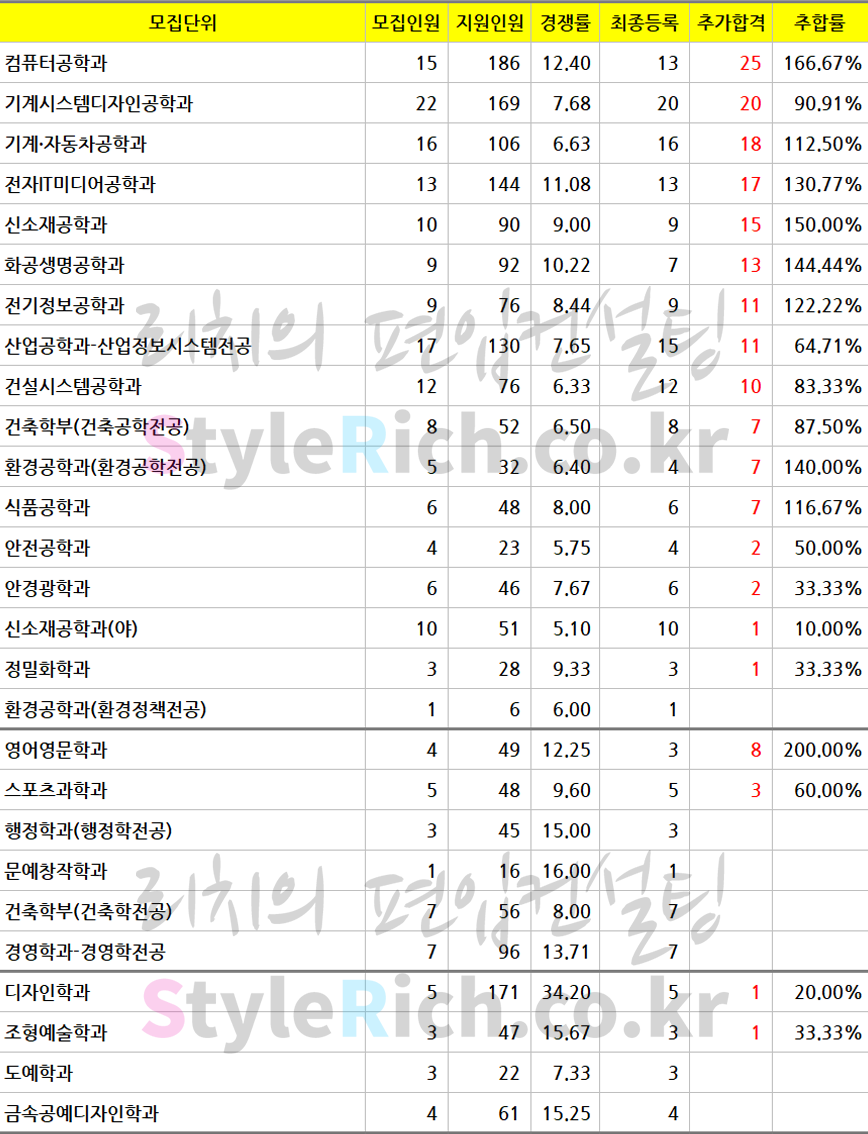 2020학년도 서울과학기술대 평생학습자편입 추가합격 현황