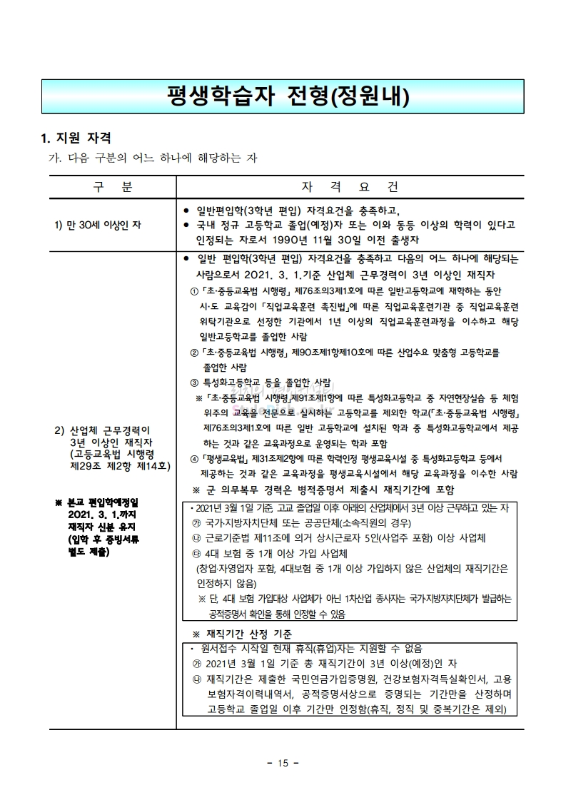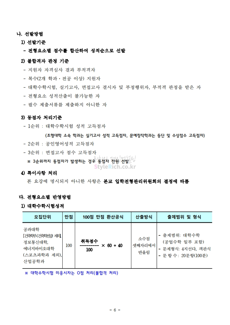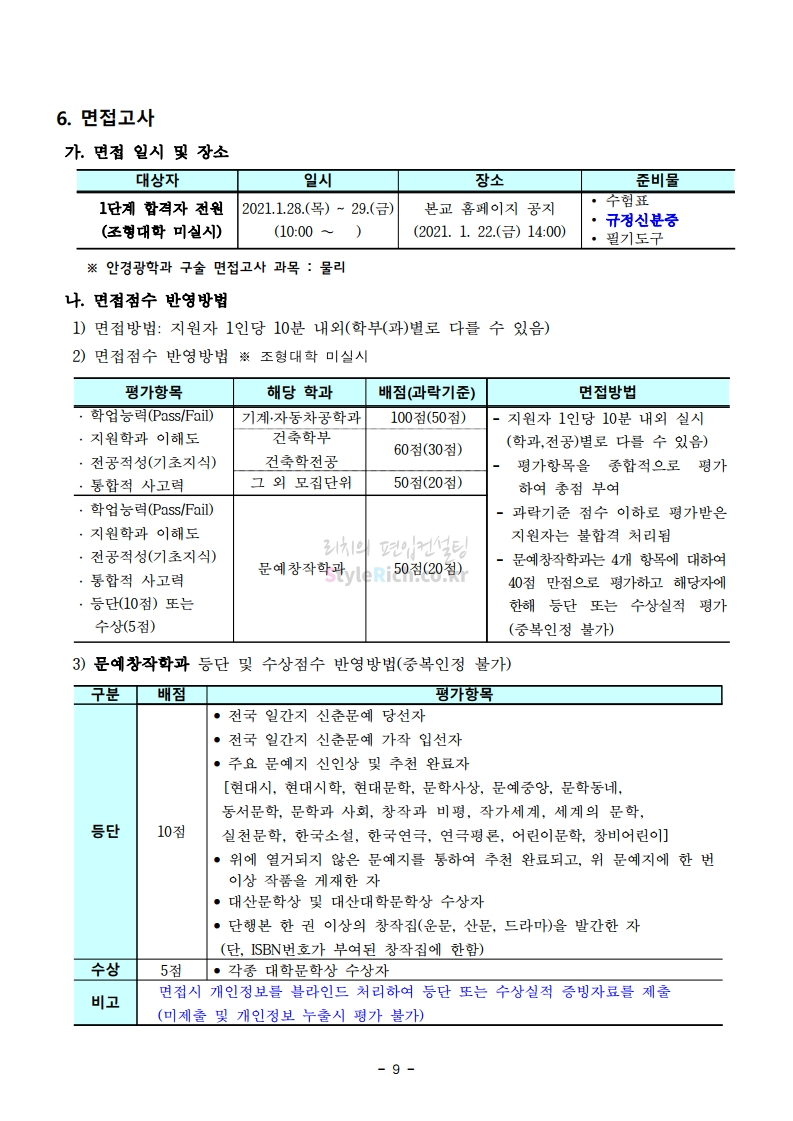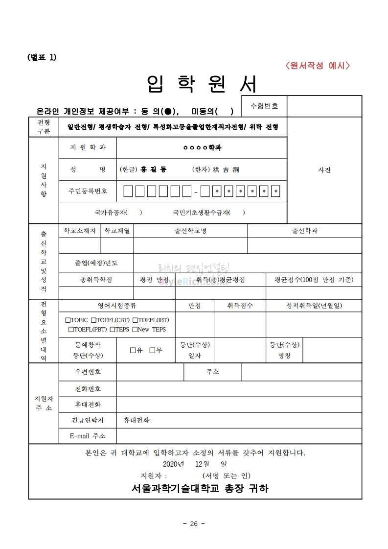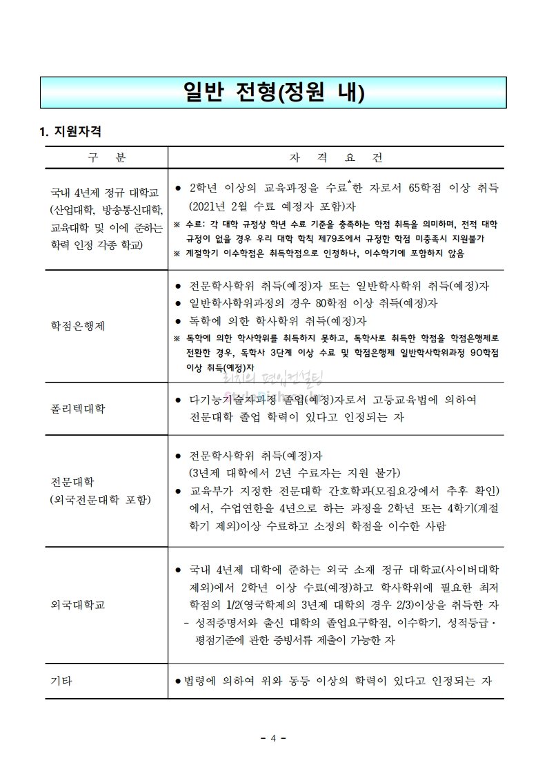 서울과학기술대 편입 2021학년도 모집요강 간편하게 보자! 2020.12.08 00:47 편입 모집요강/2021학년도 모집요강 2021학년도 서울과학기술대 편입 모집요강(2020.12.04 기준)을 간편하게 확인하세요. PC나 모바일에서 이미지를 클릭(터치) 후 이미지의 좌우측을 클릭(터치)하면 모집요강의 순서를 앞뒤로 넘길 수 있습니다. 좌측 클릭(터치)는 이전 페이지, 우측 클릭(터치)는 다음 페이지입니다. * 최종 모집요강 발표 이후에도 내용의 일부가 변경될 수 있으니 지원 전 반드시 서울과학기술대 입학처의 모집요강을 확인바랍니다. 2021학년도 서울과학기술대 편입 모집요강 다운받기 (붙임)2021학년도 편입학 모집요강.pdf 0.69MB <출처: 서울과학기술대> 서울과학기술대학교 캠퍼스대탐험 공유하기 게시글 관리 리치의 편입컨설팅 저작자표시 비영리 변경금지 (새창열림) '편입 모집요강 > 2021학년도 모집요강' 카테고리의 다른 글 수원대 편입 2021학년도 모집요강 간편하게 보자! (0) 2020.12.08 서울시립대 편입 2021학년도 모집요강 간편하게 보자! (0) 2020.12.08 경기대 편입 2021학년도 모집요강 간편하게 보자! (0) 2020.12.06 가톨릭대 편입 2021학년도 모집요강 간편하게 보자! (0) 2020.12.06 한국외대 편입 2021학년도 모집요강 간편하게 보자! (0) 2020.12.06 댓글 공유하기 다른 글 댓글 이 글 공유하기 구독하기 구독하기 카카오톡 카카오톡 라인 라인 트위터 트위터 Facebook Facebook 카카오스토리 카카오스토리 밴드 밴드 네이버 블로그 네이버 블로그 Pocket Pocket Evernote Evernote 다른 글 수원대 편입 2021학년도 모집요강 간편하게 보자! 수원대 편입 2021학년도 모집요강 간편하게 보자! 2020.12.08 서울시립대 편입 2021학년도 모집요강 간편하게 보자! 서울시립대 편입 2021학년도 모집요강 간편하게 보자! 2020.12.08 경기대 편입 2021학년도 모집요강 간편하게 보자! 경기대 편입 2021학년도 모집요강 간편하게 보자! 2020.12.06 가톨릭대 편입 2021학년도 모집요강 간편하게 보자! 가톨릭대 편입 2021학년도 모집요강 간편하게 보자! 2020.12.06 다른 글 더 둘러보기