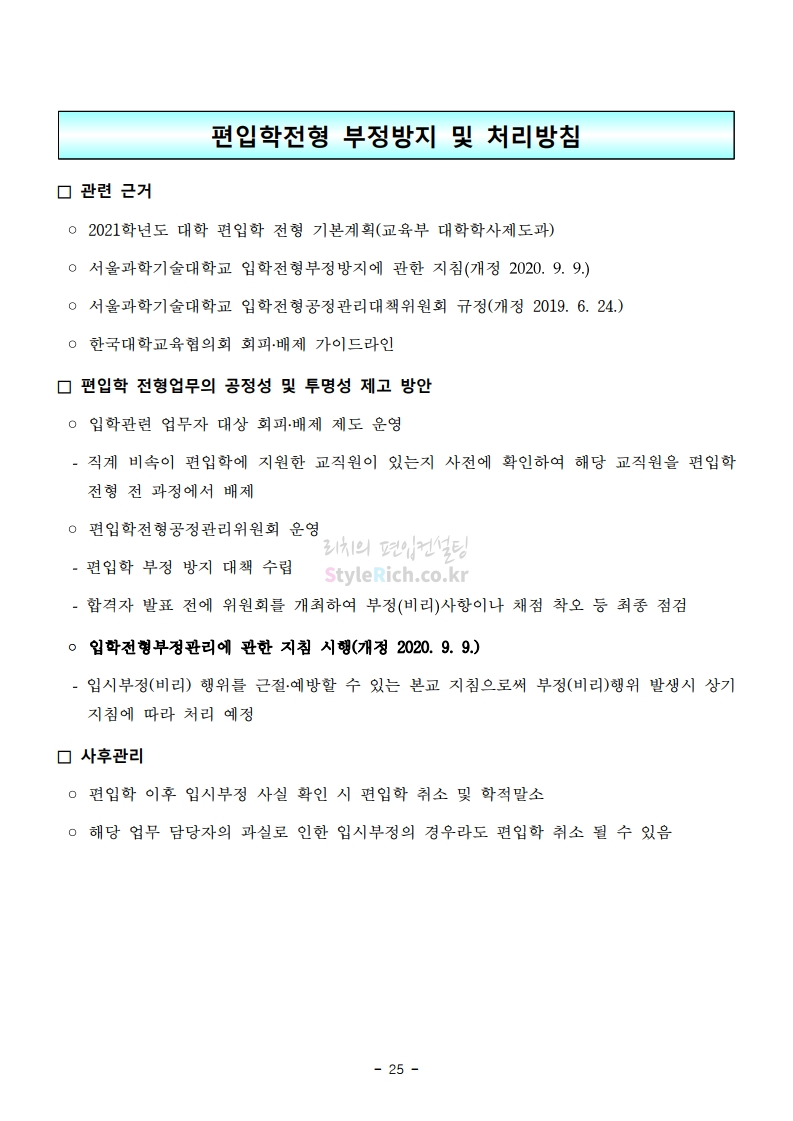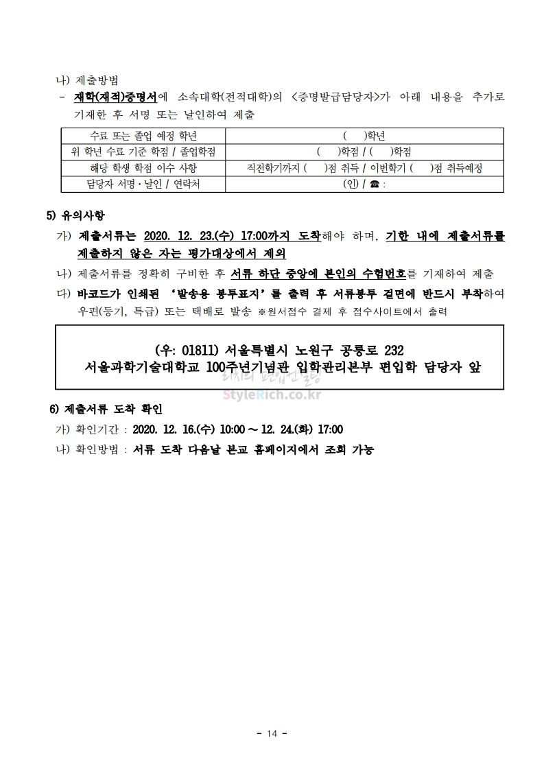 2021학년도 서울과학기술대 편입 모집요강 다운받기
