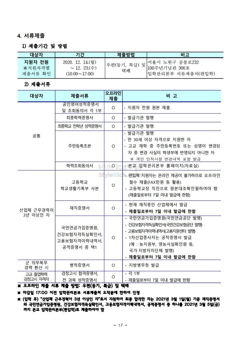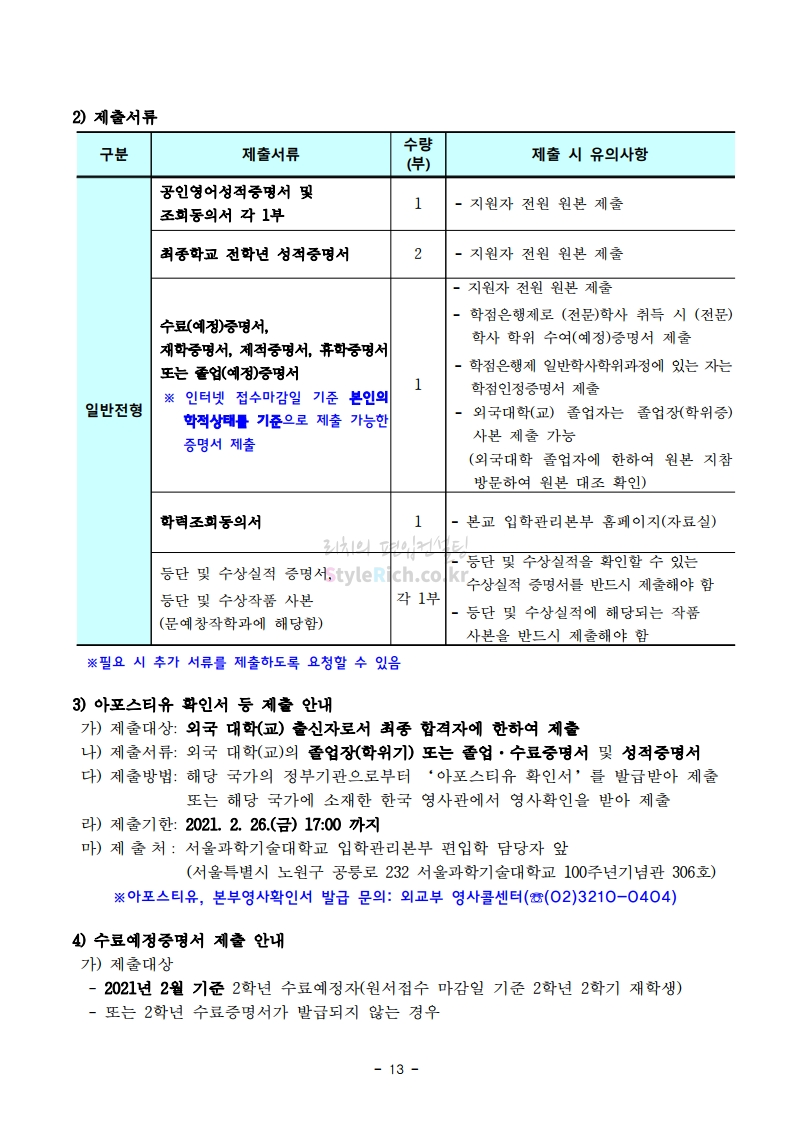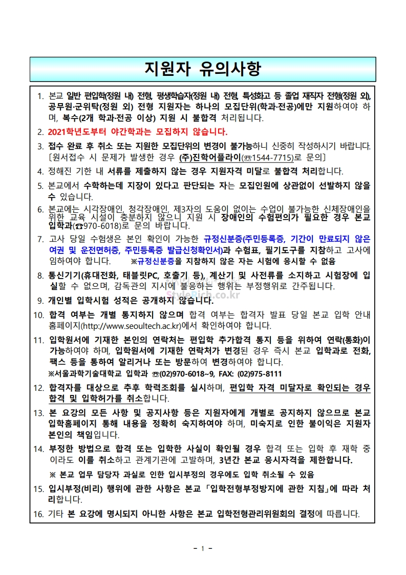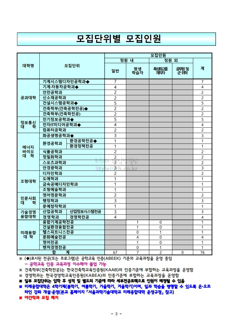 * 최종 모집요강 발표 이후에도 내용의 일부가 변경될 수 있으니 지원 전 반드시 서울과학기술대 입학처의 모집요강을 확인바랍니다.