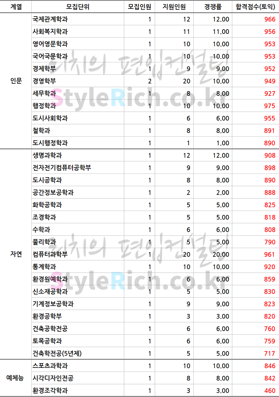 2020학년도 서울시립대 학사편입 1단계 합격점수 현황