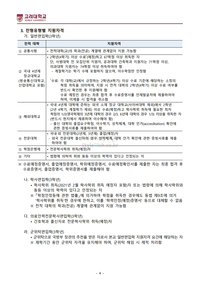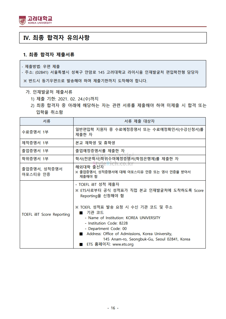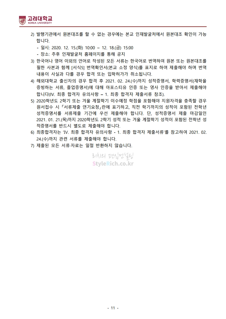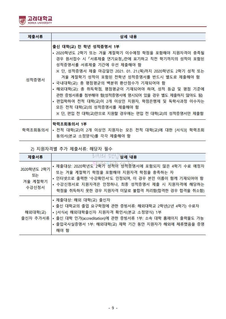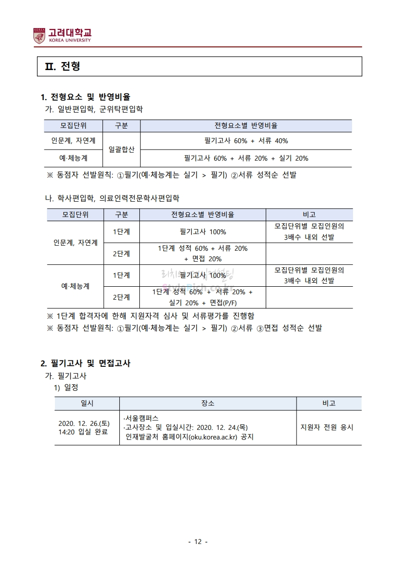 2021학년도 고려대 편입 모집요강(2020.12.16 수정기준)을 간편하게 확인하세요.