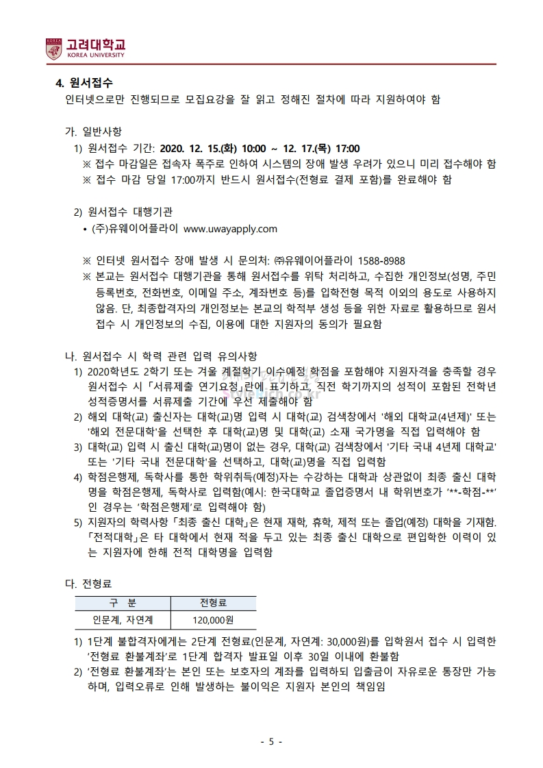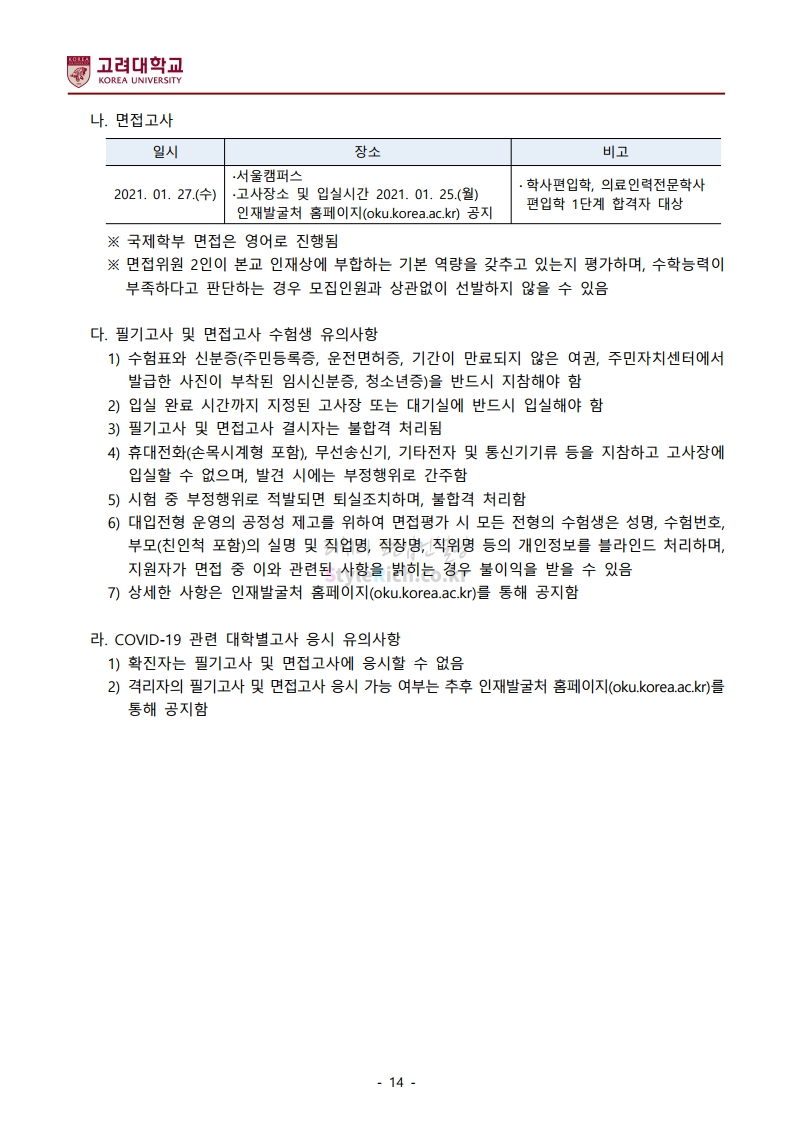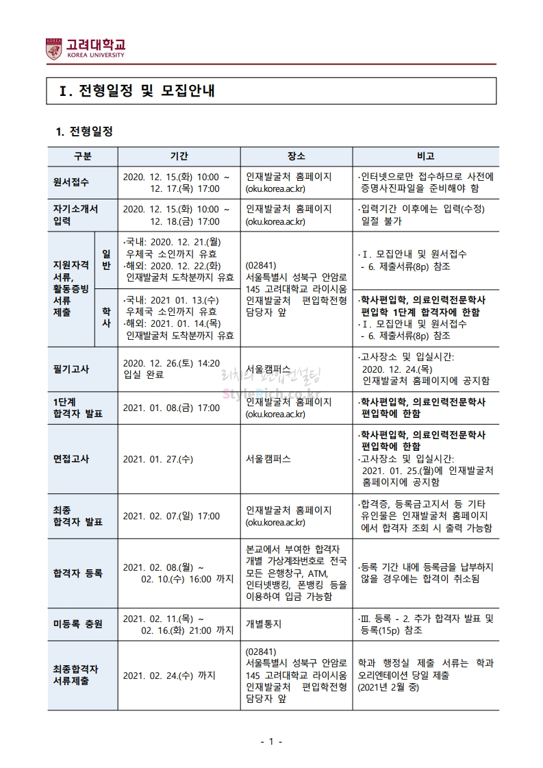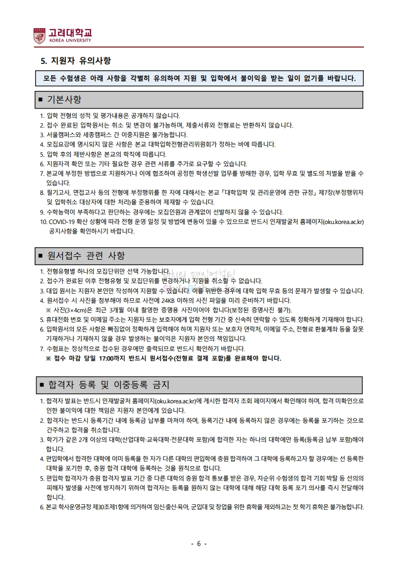 *최종 모집요강 발표 이후에도 내용의 일부가 변경될 수 있으니 지원 전 반드시 고려대 입학처의 모집요강을 확인바랍니다.