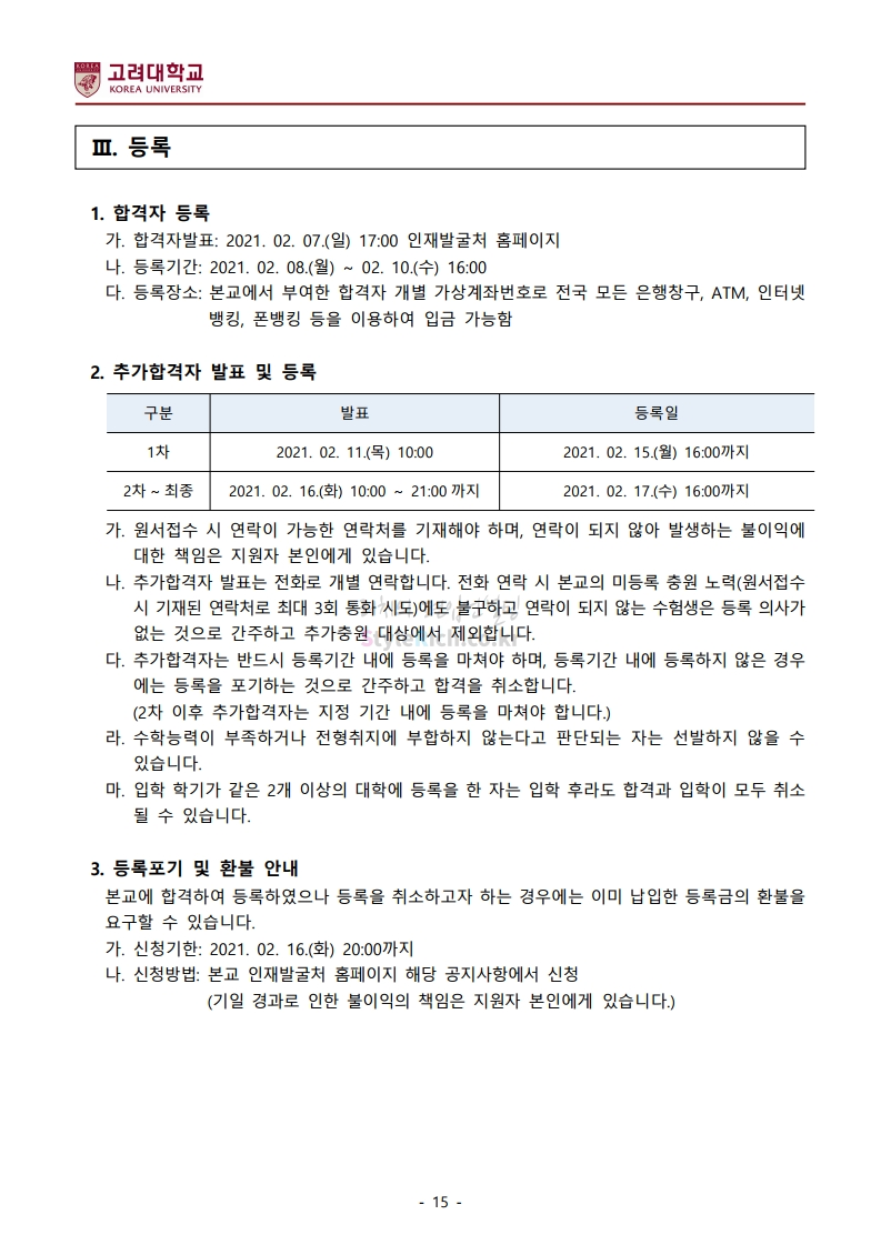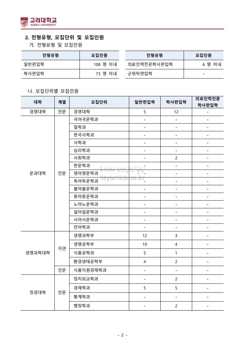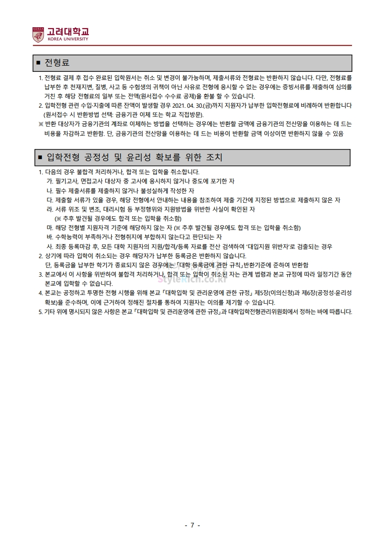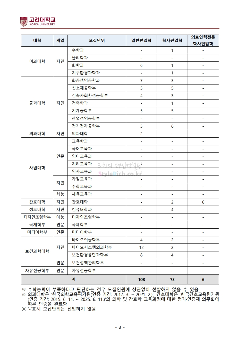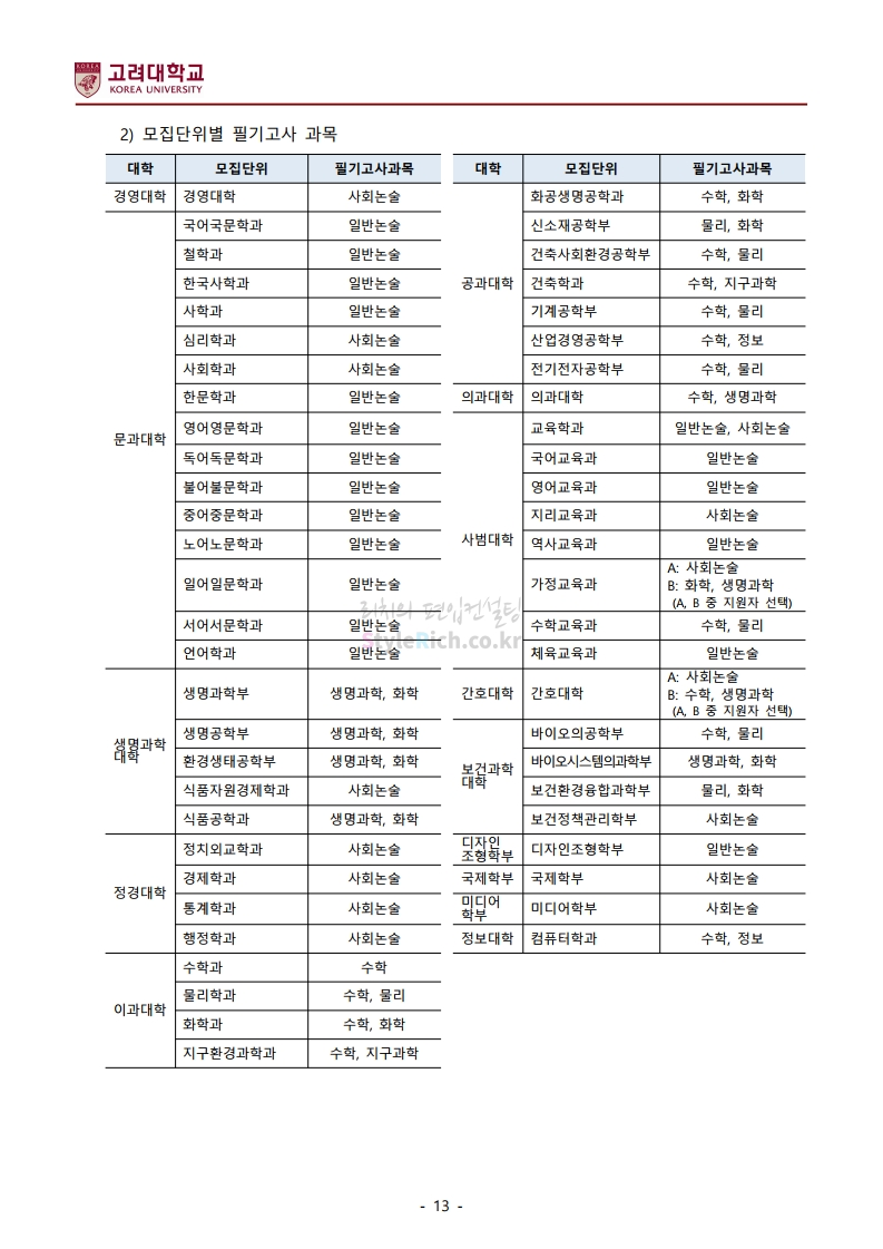 *최종 모집요강 발표 이후에도 내용의 일부가 변경될 수 있으니 지원 전 반드시 고려대 입학처의 모집요강을 확인바랍니다.