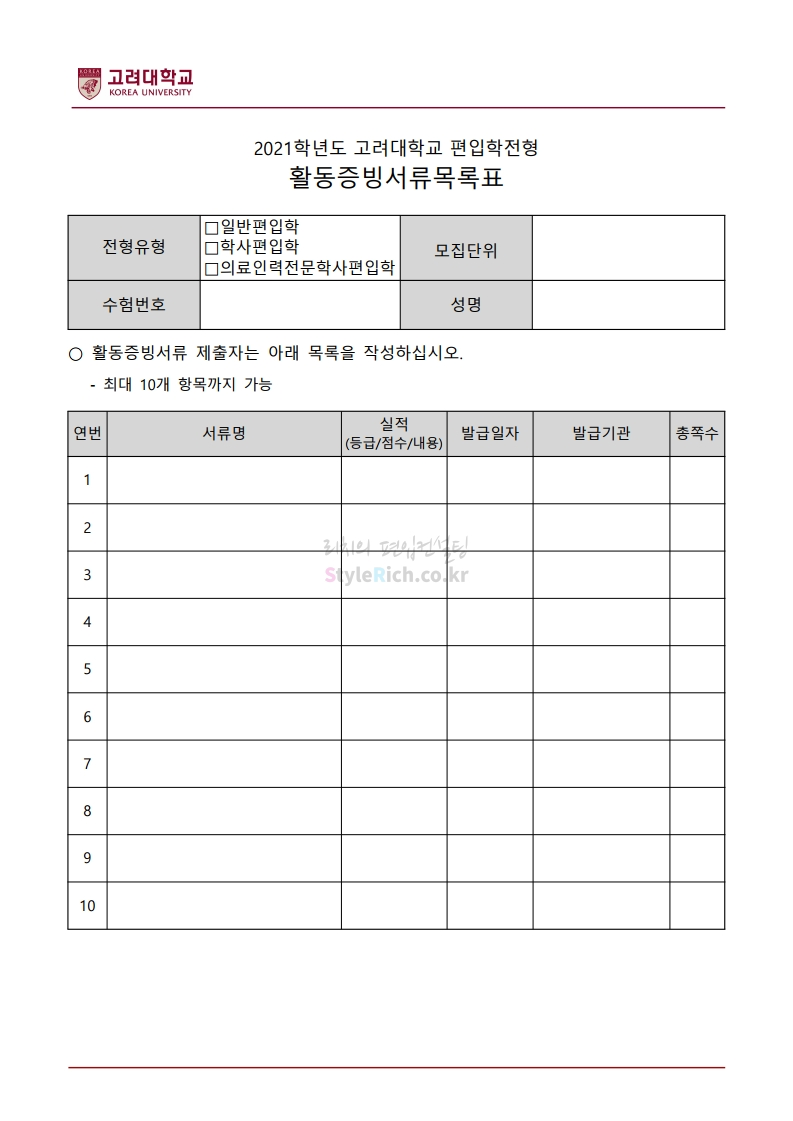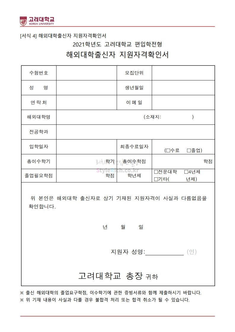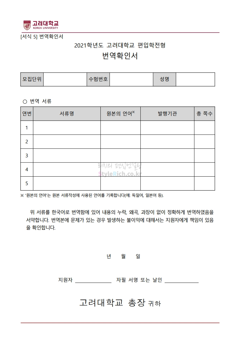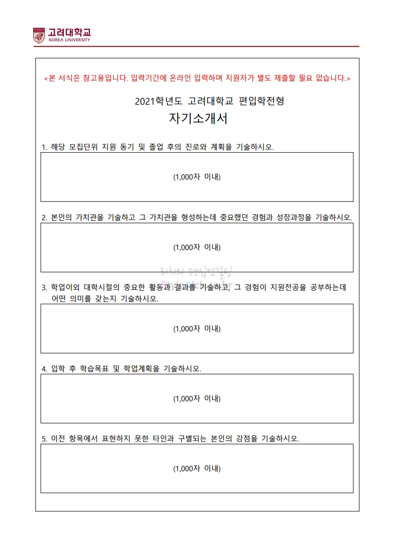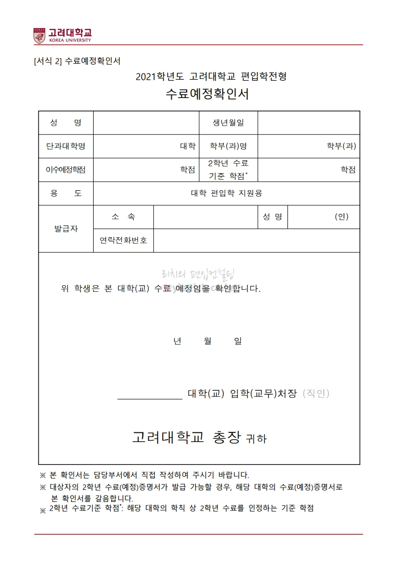 2021학년도 고려대 편입 모집요강 다운받기