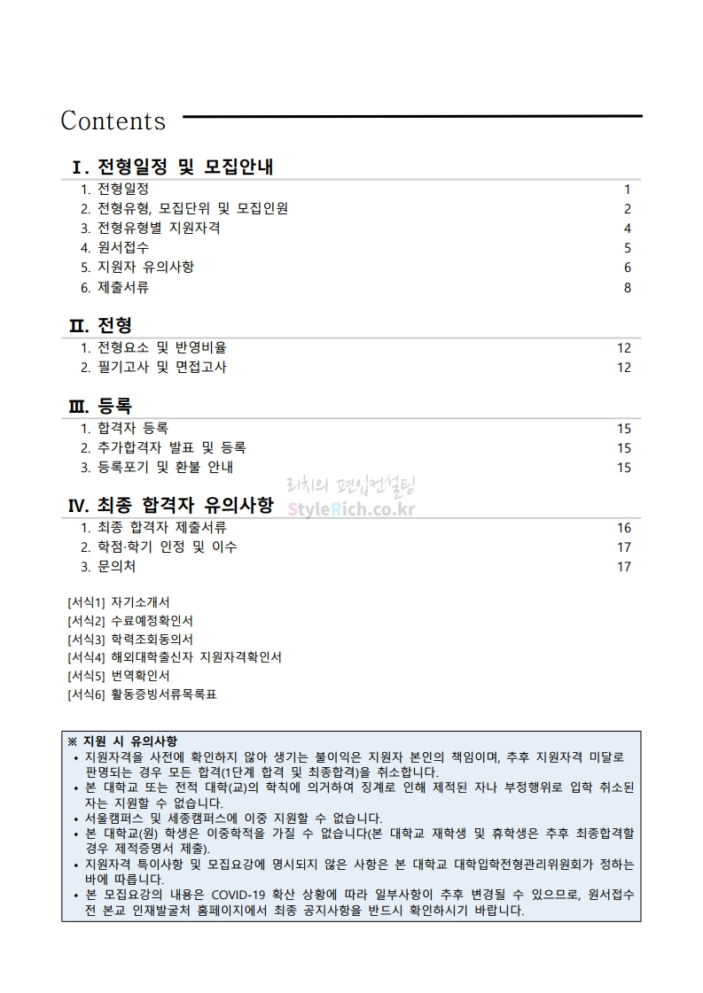 PC나 모바일에서 이미지를 클릭(터치) 후 이미지의 좌우측을 클릭(터치)하면 모집요강의 순서를 앞뒤로 넘길 수 있습니다. 좌측 클릭(터치)는 이전 페이지, 우측 클릭(터치)는 다음 페이지입니다.