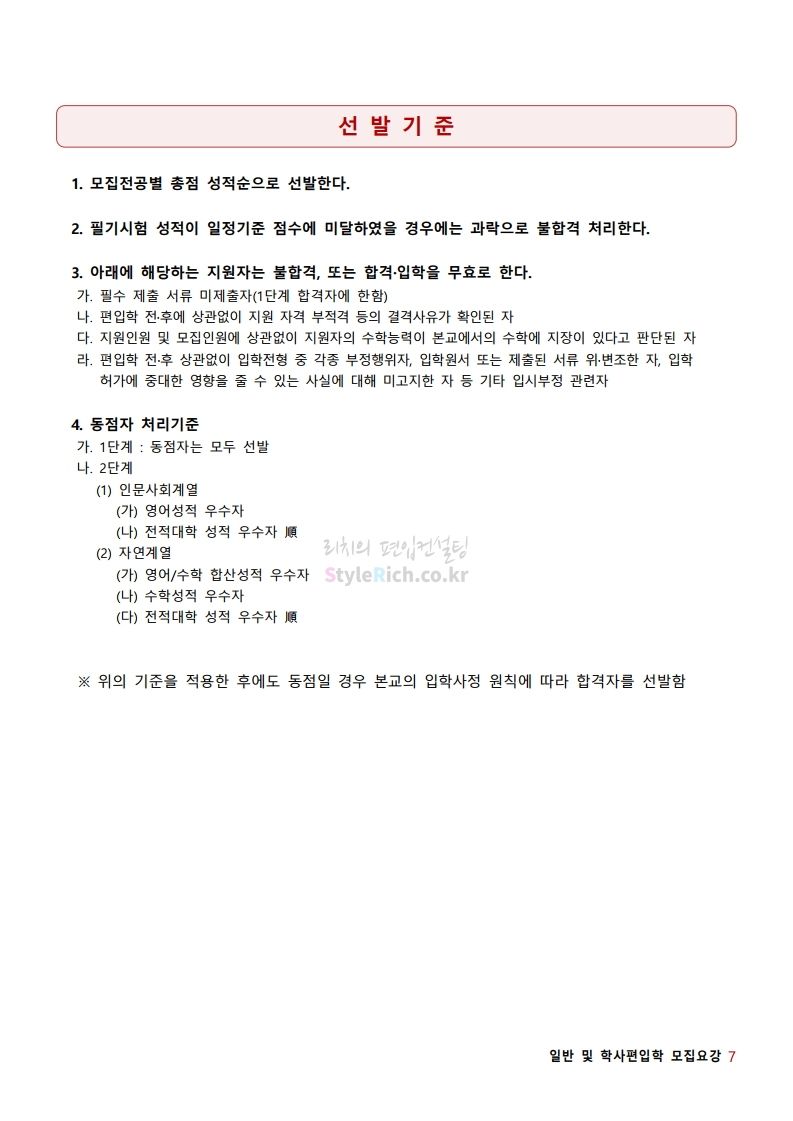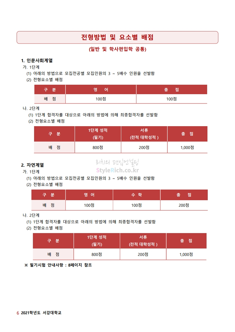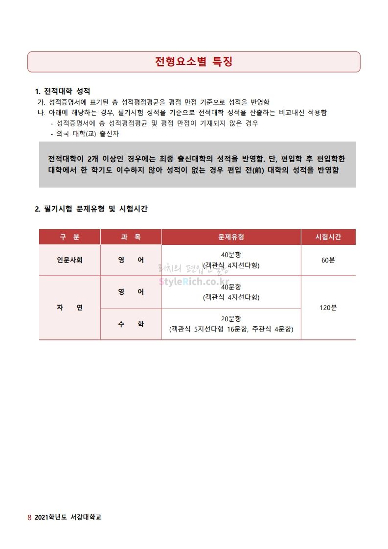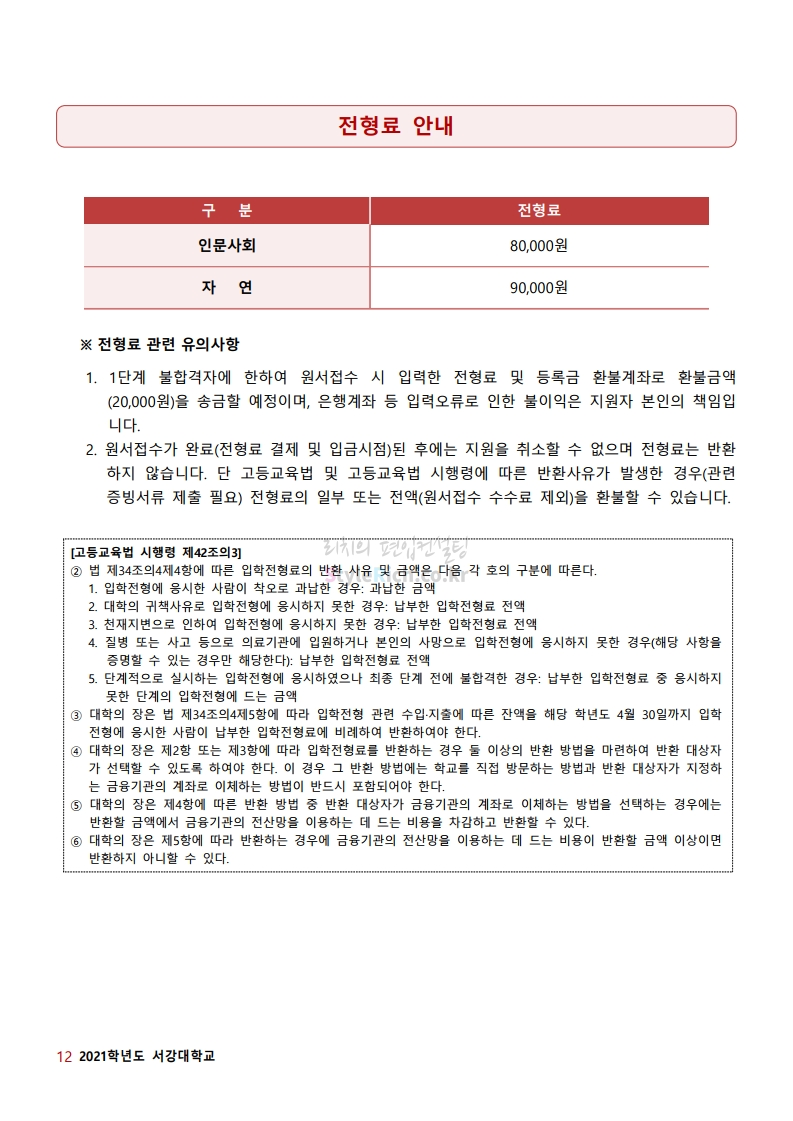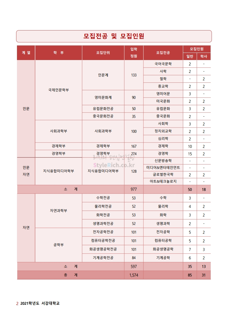 * 최종 모집요강 발표 이후에도 내용의 일부가 변경될 수 있으니 지원 전 반드시 서강대 입학처의 모집요강을 확인바랍니다.