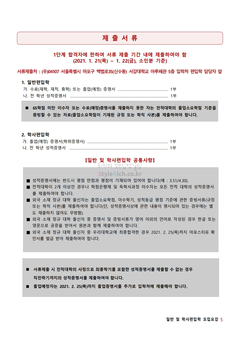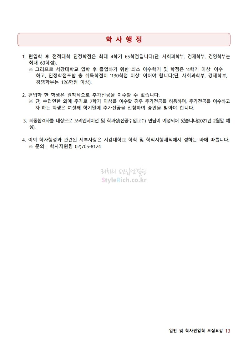 2021학년도 서강대 편입 모집요강 다운받기