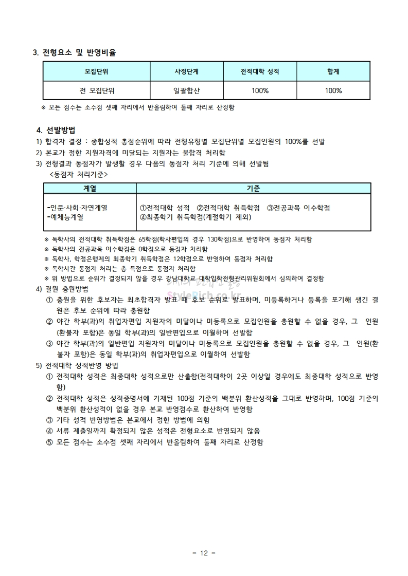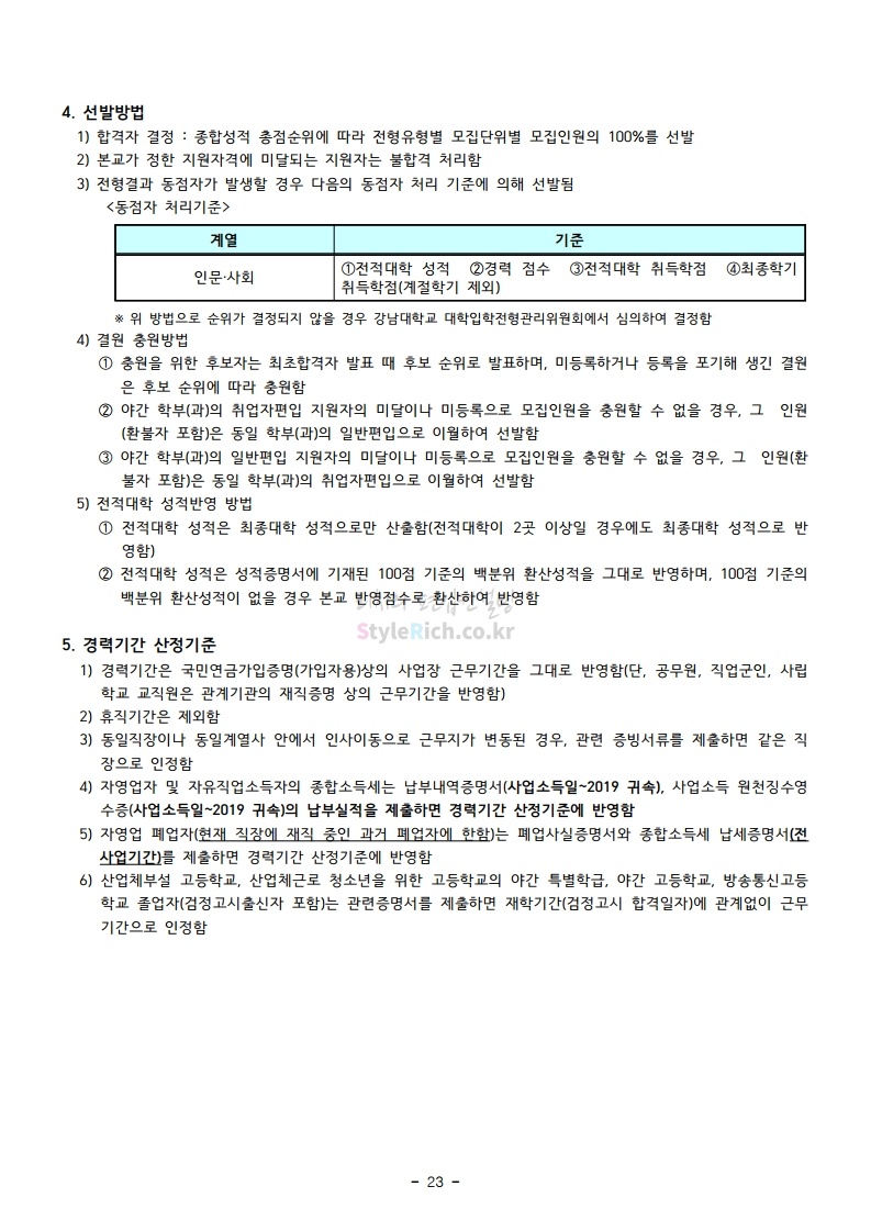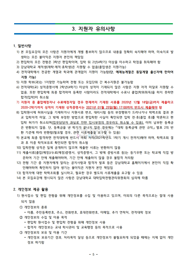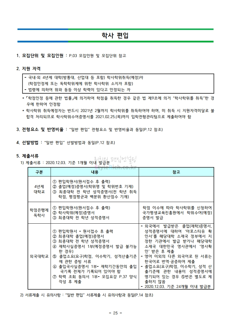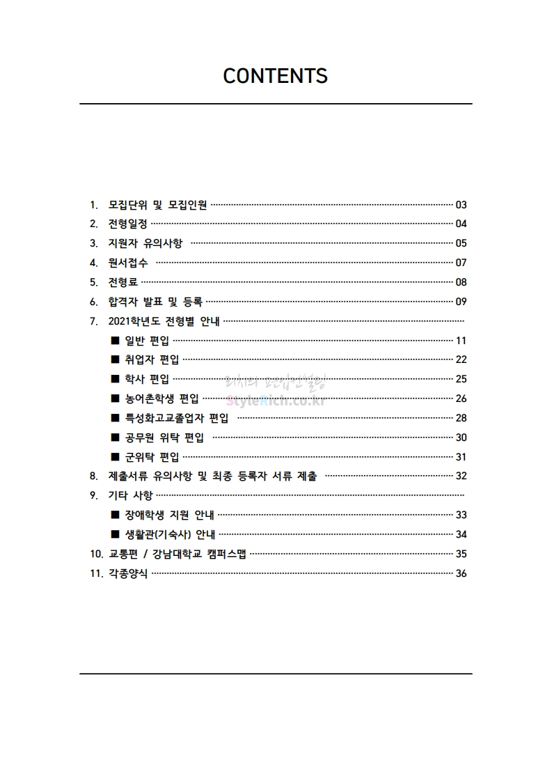 강남대 편입 2021학년도 모집요강 간편하게 보자! 2020.12.11 01:18 편입 모집요강/2021학년도 모집요강 2021학년도 강남대 편입 모집요강(2020.11.27 기준)을 간편하게 확인하세요. PC나 모바일에서 이미지를 클릭(터치) 후 이미지의 좌우측을 클릭(터치)하면 모집요강의 순서를 앞뒤로 넘길 수 있습니다. 좌측 클릭(터치)는 이전 페이지, 우측 클릭(터치)는 다음 페이지입니다. * 최종 모집요강 발표 이후에도 내용의 일부가 변경될 수 있으니 지원 전 반드시 강남대 입학처의 모집요강을 확인바랍니다. 2021학년도 강남대 편입 모집요강 다운받기 2021학년도 편입학 모집요강_[게시용].pdf 0.87MB <출처: 강남대> 2020년 국제청소년리더 교류지원사업 결과 영상 공유하기 게시글 관리 리치의 편입컨설팅 저작자표시 비영리 변경금지 (새창열림) '편입 모집요강 > 2021학년도 모집요강' 카테고리의 다른 글 상명대 편입 2021학년도 모집요강 간편하게 보자! (0) 2020.12.16 상명대(천안) 편입 2021학년도 모집요강 간편하게 보자! (0) 2020.12.16 세종대 편입 2021학년도 모집요강 간편하게 보자! (0) 2020.12.11 서강대 편입 2021학년도 모집요강 간편하게 보자! (0) 2020.12.10 명지대 편입 2021학년도 모집요강 간편하게 보자! (0) 2020.12.09 댓글 공유하기 다른 글 댓글 이 글 공유하기 구독하기 구독하기 카카오톡 카카오톡 라인 라인 트위터 트위터 Facebook Facebook 카카오스토리 카카오스토리 밴드 밴드 네이버 블로그 네이버 블로그 Pocket Pocket Evernote Evernote 다른 글 상명대 편입 2021학년도 모집요강 간편하게 보자! 상명대 편입 2021학년도 모집요강 간편하게 보자! 2020.12.16 상명대(천안) 편입 2021학년도 모집요강 간편하게 보자! 상명대(천안) 편입 2021학년도 모집요강 간편하게 보자! 2020.12.16 세종대 편입 2021학년도 모집요강 간편하게 보자! 세종대 편입 2021학년도 모집요강 간편하게 보자! 2020.12.11 서강대 편입 2021학년도 모집요강 간편하게 보자! 서강대 편입 2021학년도 모집요강 간편하게 보자! 2020.12.10 다른 글 더 둘러보기