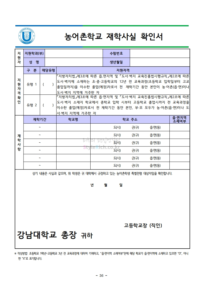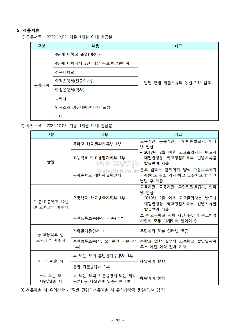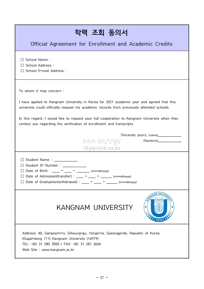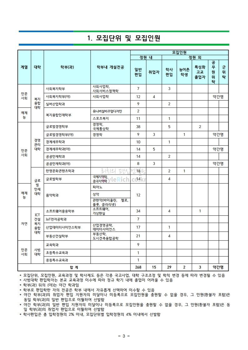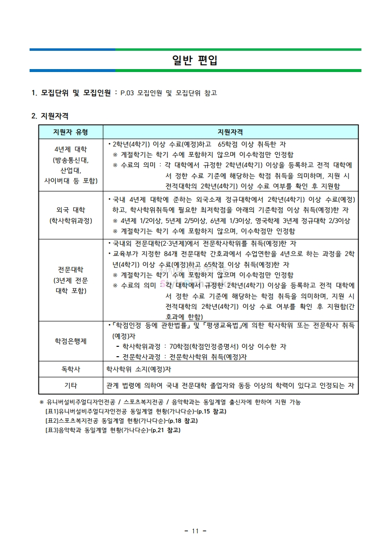 강남대 편입 2021학년도 모집요강 간편하게 보자! 2020.12.11 01:18 편입 모집요강/2021학년도 모집요강 2021학년도 강남대 편입 모집요강(2020.11.27 기준)을 간편하게 확인하세요. PC나 모바일에서 이미지를 클릭(터치) 후 이미지의 좌우측을 클릭(터치)하면 모집요강의 순서를 앞뒤로 넘길 수 있습니다. 좌측 클릭(터치)는 이전 페이지, 우측 클릭(터치)는 다음 페이지입니다. * 최종 모집요강 발표 이후에도 내용의 일부가 변경될 수 있으니 지원 전 반드시 강남대 입학처의 모집요강을 확인바랍니다. 2021학년도 강남대 편입 모집요강 다운받기 2021학년도 편입학 모집요강_[게시용].pdf 0.87MB <출처: 강남대> 2020년 국제청소년리더 교류지원사업 결과 영상 공유하기 게시글 관리 리치의 편입컨설팅 저작자표시 비영리 변경금지 (새창열림) '편입 모집요강 > 2021학년도 모집요강' 카테고리의 다른 글 상명대 편입 2021학년도 모집요강 간편하게 보자! (0) 2020.12.16 상명대(천안) 편입 2021학년도 모집요강 간편하게 보자! (0) 2020.12.16 세종대 편입 2021학년도 모집요강 간편하게 보자! (0) 2020.12.11 서강대 편입 2021학년도 모집요강 간편하게 보자! (0) 2020.12.10 명지대 편입 2021학년도 모집요강 간편하게 보자! (0) 2020.12.09 댓글 공유하기 다른 글 댓글 이 글 공유하기 구독하기 구독하기 카카오톡 카카오톡 라인 라인 트위터 트위터 Facebook Facebook 카카오스토리 카카오스토리 밴드 밴드 네이버 블로그 네이버 블로그 Pocket Pocket Evernote Evernote 다른 글 상명대 편입 2021학년도 모집요강 간편하게 보자! 상명대 편입 2021학년도 모집요강 간편하게 보자! 2020.12.16 상명대(천안) 편입 2021학년도 모집요강 간편하게 보자! 상명대(천안) 편입 2021학년도 모집요강 간편하게 보자! 2020.12.16 세종대 편입 2021학년도 모집요강 간편하게 보자! 세종대 편입 2021학년도 모집요강 간편하게 보자! 2020.12.11 서강대 편입 2021학년도 모집요강 간편하게 보자! 서강대 편입 2021학년도 모집요강 간편하게 보자! 2020.12.10 다른 글 더 둘러보기