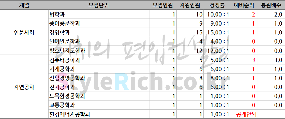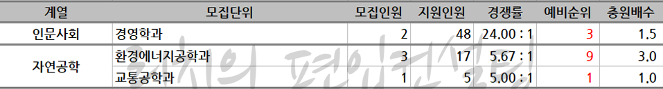 * 모집단위는 인문사회, 자연공학, 예술체육으로 분류 후 추가합격이 많은 순으로 정렬