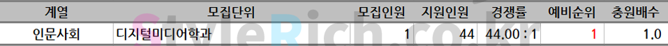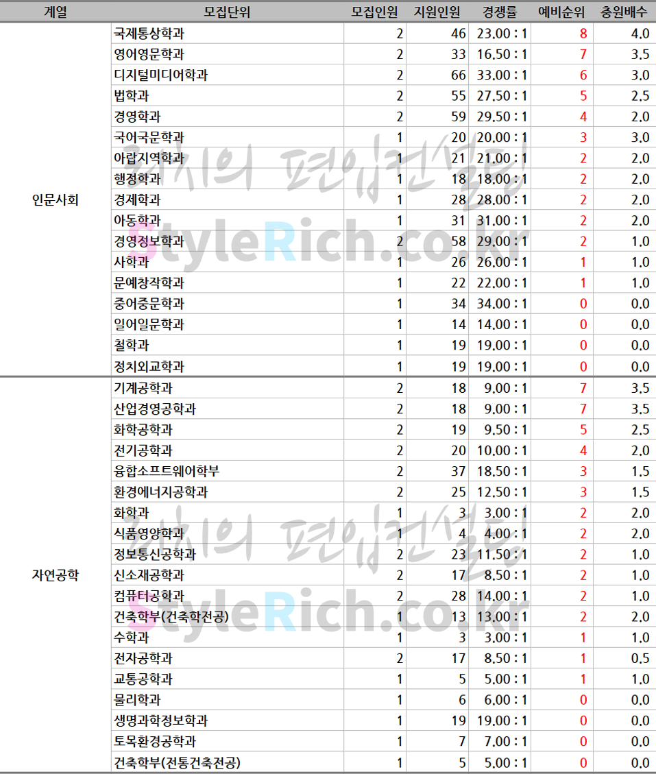 인문사회 추가합격 TOP3 학과: 국제통상확과, 영어영문학과, 디지털미디어학과
