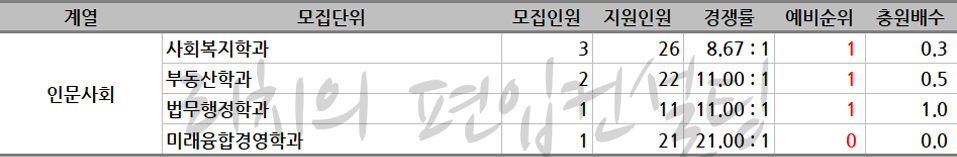 인문사회 추가합격 TOP3 학과: 법학과, 영어영문학과, 국제통상학과