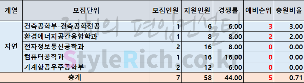 자연 추가합격 TOP3 학과: 전자정보통신공학과, 기계항공우주공학부, 생명시스템학부