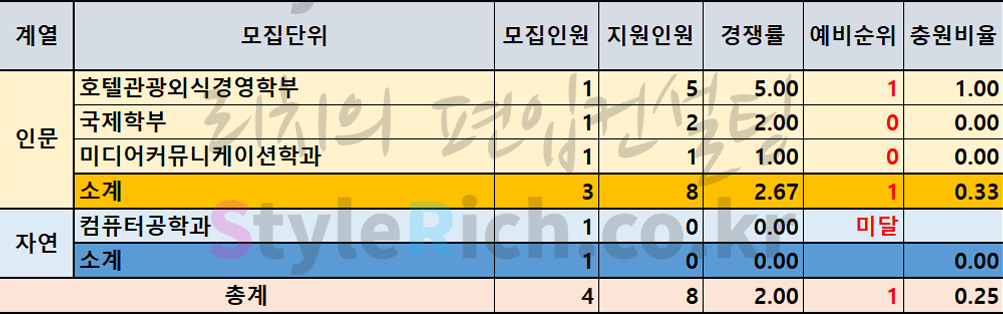 인문 추가합격 TOP3 학과: 호텔관광외식경영학부, 경영학부, 국제학부