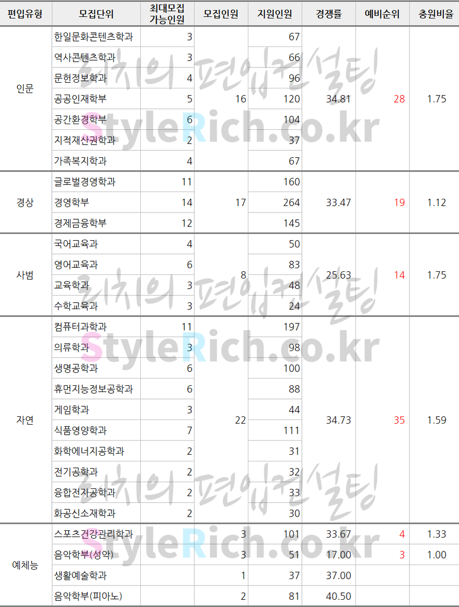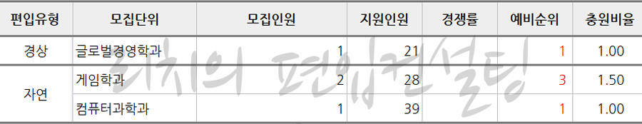 * 재외국민편입 및 특성화고졸재직자편입 전형은 미달이거나 모집인원만큼 지원하여 추가합격 발생되지 않음