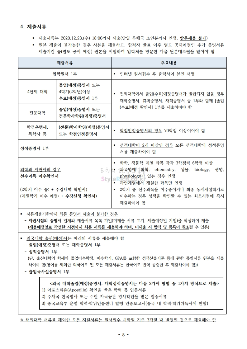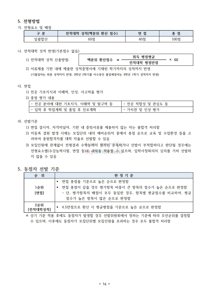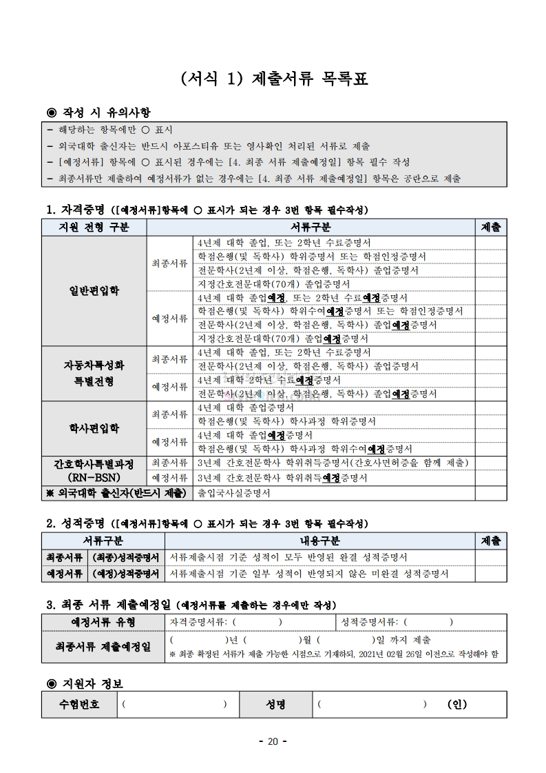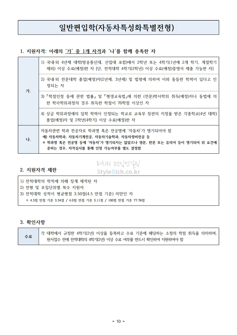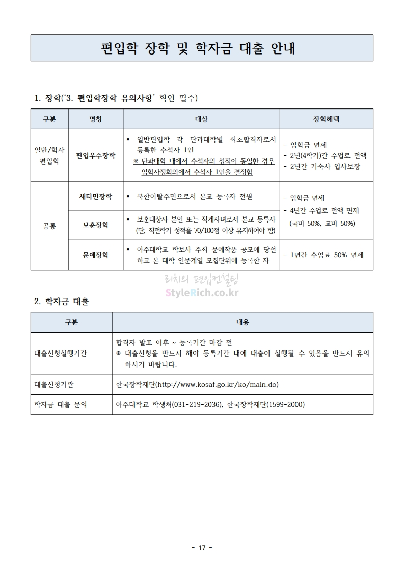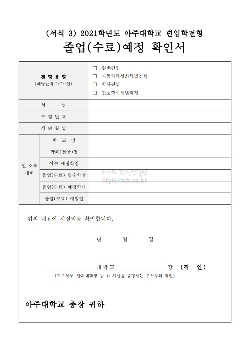아주대 편입 2021학년도 모집요강 간편하게 보자! 2020.12.16 02:31 편입 모집요강/2021학년도 모집요강 2021학년도 아주대 편입 모집요강(2020.12.10 기준)을 간편하게 확인하세요. PC나 모바일에서 이미지를 클릭(터치) 후 이미지의 좌우측을 클릭(터치)하면 모집요강의 순서를 앞뒤로 넘길 수 있습니다. 좌측 클릭(터치)는 이전 페이지, 우측 클릭(터치)는 다음 페이지입니다. * 최종 모집요강 발표 이후에도 내용의 일부가 변경될 수 있으니 지원 전 반드시 아주대 입학처의 모집요강을 확인바랍니다. 2021학년도 아주대 편입 모집요강 다운받기 2021학년도_편입학_모집요강.pdf 0.66MB <출처: 아주대> 2020 아주대 캠퍼스가 '스마트'해집니다-! 공유하기 게시글 관리 리치의 편입컨설팅 저작자표시 비영리 변경금지 (새창열림) '편입 모집요강 > 2021학년도 모집요강' 카테고리의 다른 글 한양대 편입 2021학년도 모집요강 간편하게 보자! (0) 2020.12.16 홍익대 편입 2021학년도 모집요강 간편하게 보자! (0) 2020.12.16 상명대 편입 2021학년도 모집요강 간편하게 보자! (0) 2020.12.16 상명대(천안) 편입 2021학년도 모집요강 간편하게 보자! (0) 2020.12.16 강남대 편입 2021학년도 모집요강 간편하게 보자! (0) 2020.12.11 댓글 공유하기 다른 글 댓글 이 글 공유하기 구독하기 구독하기 카카오톡 카카오톡 라인 라인 트위터 트위터 Facebook Facebook 카카오스토리 카카오스토리 밴드 밴드 네이버 블로그 네이버 블로그 Pocket Pocket Evernote Evernote 다른 글 한양대 편입 2021학년도 모집요강 간편하게 보자! 한양대 편입 2021학년도 모집요강 간편하게 보자! 2020.12.16 홍익대 편입 2021학년도 모집요강 간편하게 보자! 홍익대 편입 2021학년도 모집요강 간편하게 보자! 2020.12.16 상명대 편입 2021학년도 모집요강 간편하게 보자! 상명대 편입 2021학년도 모집요강 간편하게 보자! 2020.12.16 상명대(천안) 편입 2021학년도 모집요강 간편하게 보자! 상명대(천안) 편입 2021학년도 모집요강 간편하게 보자! 2020.12.16 다른 글 더 둘러보기