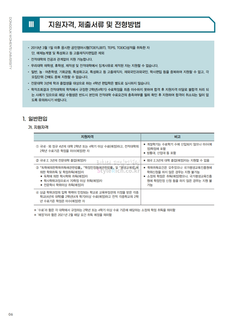 동덕여대 편입 2021학년도 모집요강 간편하게 보자!