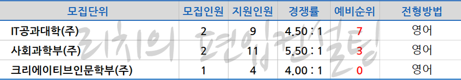 2020학년도 한성대 농어촌학생편입 추가합격 현황