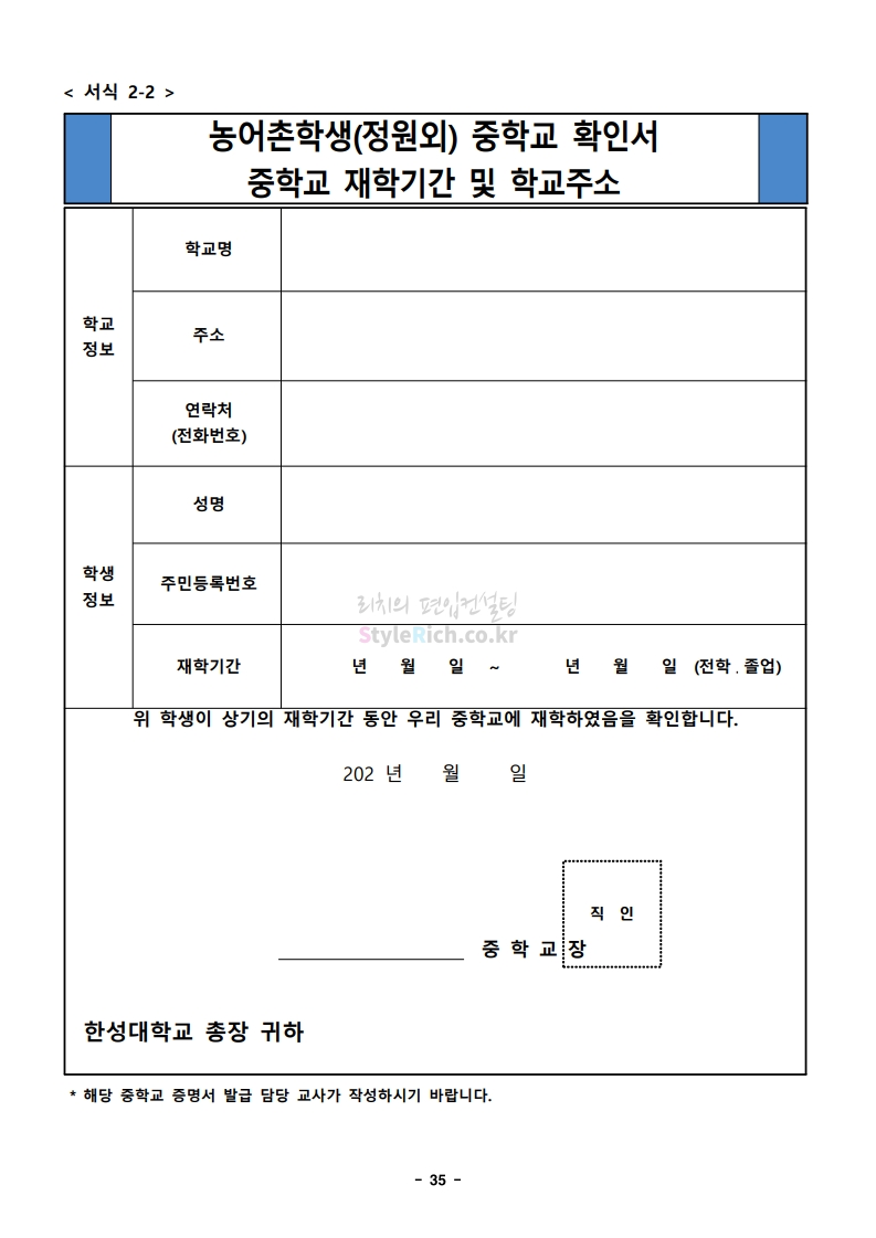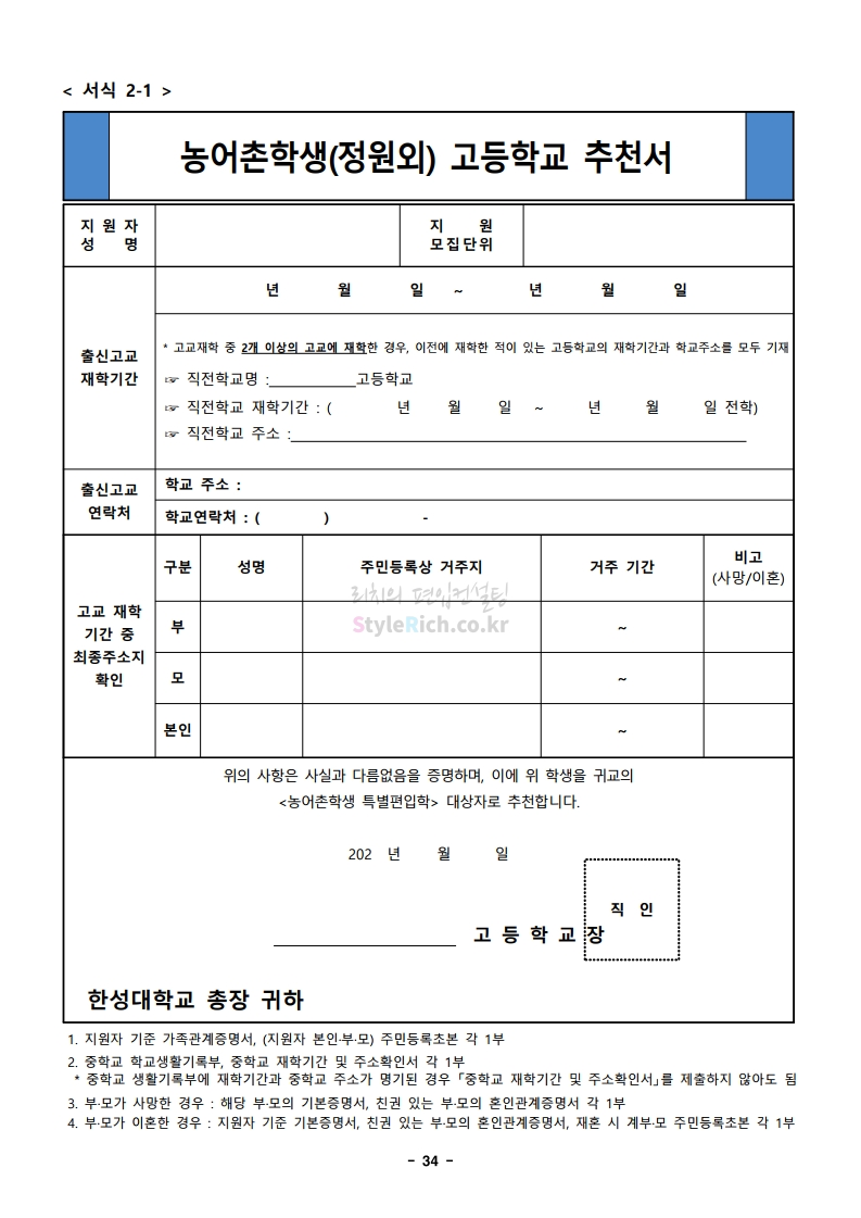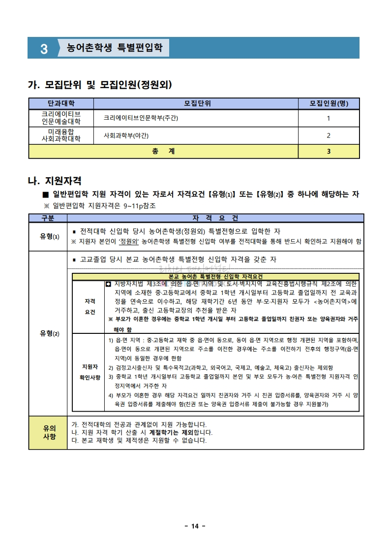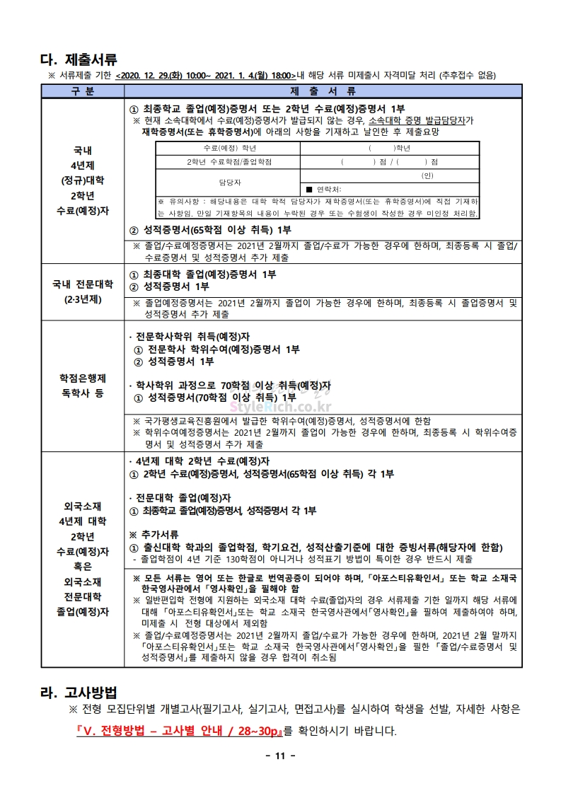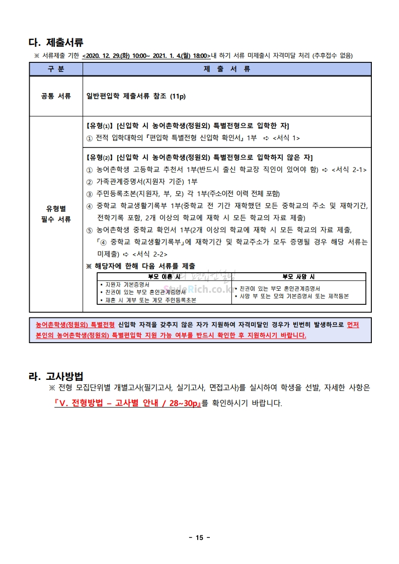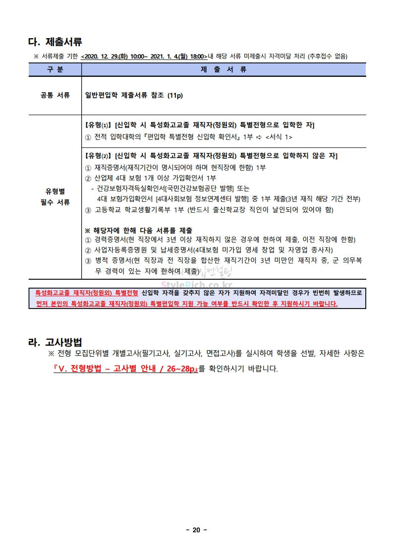 한성대 편입 2021학년도 모집요강 간편하게 보자! 2020.12.23 01:27 편입 모집요강/2021학년도 모집요강 2021학년도 한성대 편입 모집요강(2020.12.17 기준)을 간편하게 확인하세요. PC나 모바일에서 이미지를 클릭(터치) 후 이미지의 좌우측을 클릭(터치)하면 모집요강의 순서를 앞뒤로 넘길 수 있습니다. 좌측 클릭(터치)는 이전 페이지, 우측클릭(터치)는 다음 페이지입니다. * 최종 모집요강 발표 이후에도 내용의 일부가 변경될 수 있으니 지원 전 반드시 한성대 입학처 모집요강을 확인 바립니다. 2021학년도 한성대 편입 모집요강 다운받기 21 전기편입요강v5.pdf 0.96MB <출처: 한성대> 집에서🏠 스펙과 힐링을 동시에 일석이조 비대면 대학생활하기! 📚🌳 공유하기 게시글 관리 리치의 편입컨설팅 저작자표시 비영리 변경금지 (새창열림) '편입 모집요강 > 2021학년도 모집요강' 카테고리의 다른 글 덕성여대 편입 2021학년도 모집요강 간편하게 보자! (0) 2020.12.24 한양대(에리카) 편입 2021학년도 모집요강 간편하게 보자! (0) 2020.12.23 인천대 편입 2021학년도 모집요강 간편하게 보자! (0) 2020.12.20 성신여대 편입 2021학년도 모집요강 간편하게 보자! (0) 2020.12.20 성균관대 편입 2021학년도 모집요강 간편하게 보자! (0) 2020.12.18 댓글 공유하기 다른 글 댓글 이 글 공유하기 구독하기 구독하기 카카오톡 카카오톡 라인 라인 트위터 트위터 Facebook Facebook 카카오스토리 카카오스토리 밴드 밴드 네이버 블로그 네이버 블로그 Pocket Pocket Evernote Evernote 다른 글 덕성여대 편입 2021학년도 모집요강 간편하게 보자! 덕성여대 편입 2021학년도 모집요강 간편하게 보자! 2020.12.24 한양대(에리카) 편입 2021학년도 모집요강 간편하게 보자! 한양대(에리카) 편입 2021학년도 모집요강 간편하게 보자! 2020.12.23 인천대 편입 2021학년도 모집요강 간편하게 보자! 인천대 편입 2021학년도 모집요강 간편하게 보자! 2020.12.20 성신여대 편입 2021학년도 모집요강 간편하게 보자! 성신여대 편입 2021학년도 모집요강 간편하게 보자! 2020.12.20 다른 글 더 둘러보기